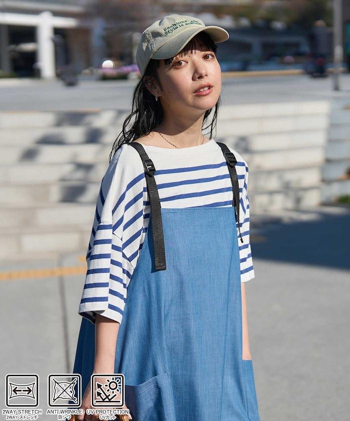 這款連衣裙一年四季都可穿著,根據內搭的不同,從長 T 到背心都可穿著,非常適合休閒和戶外場景。