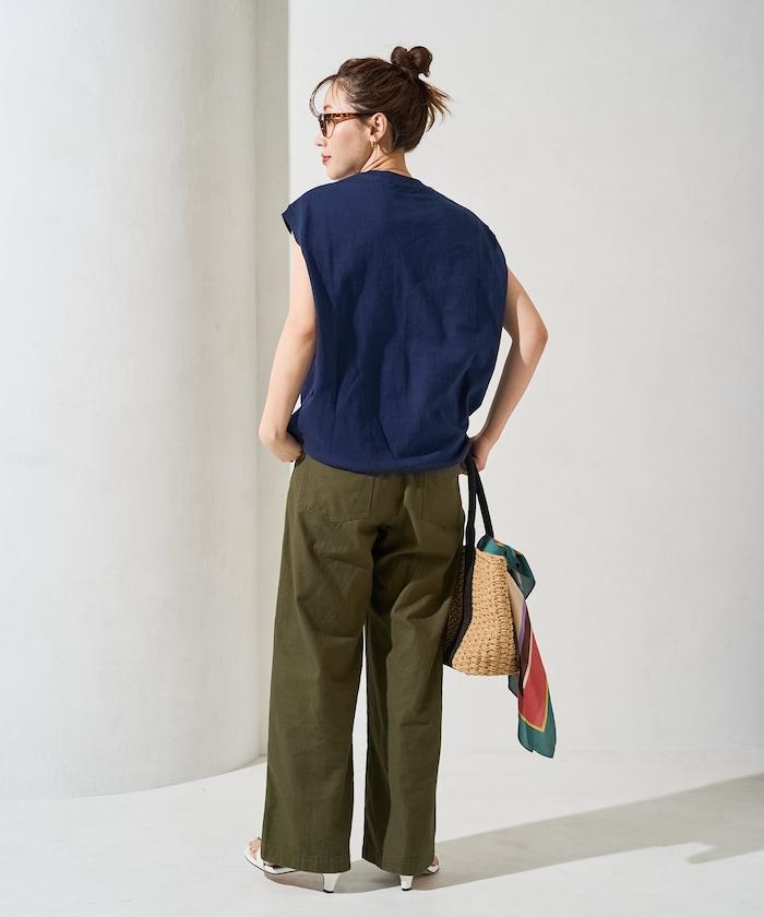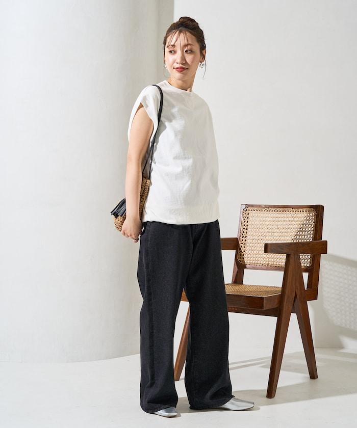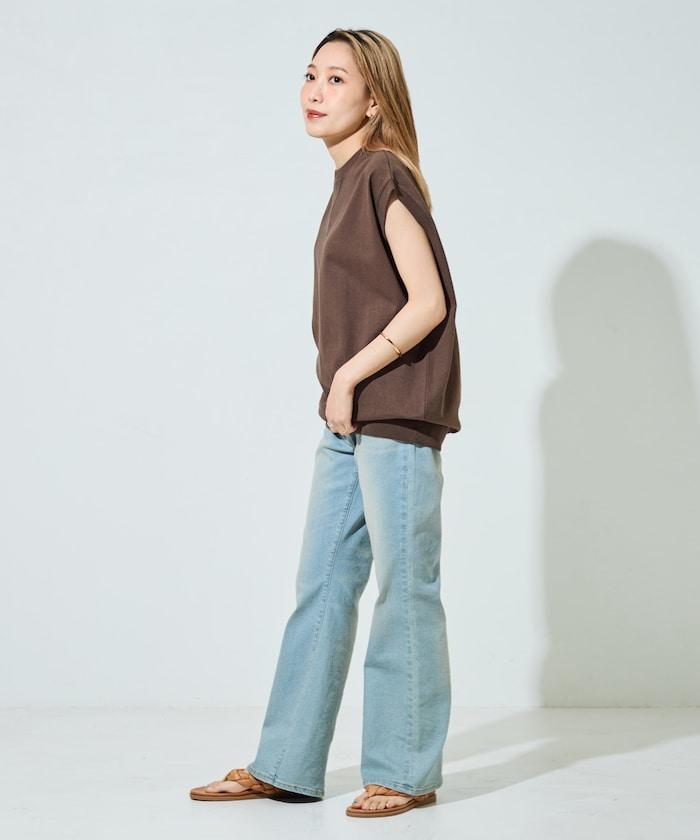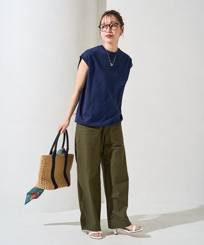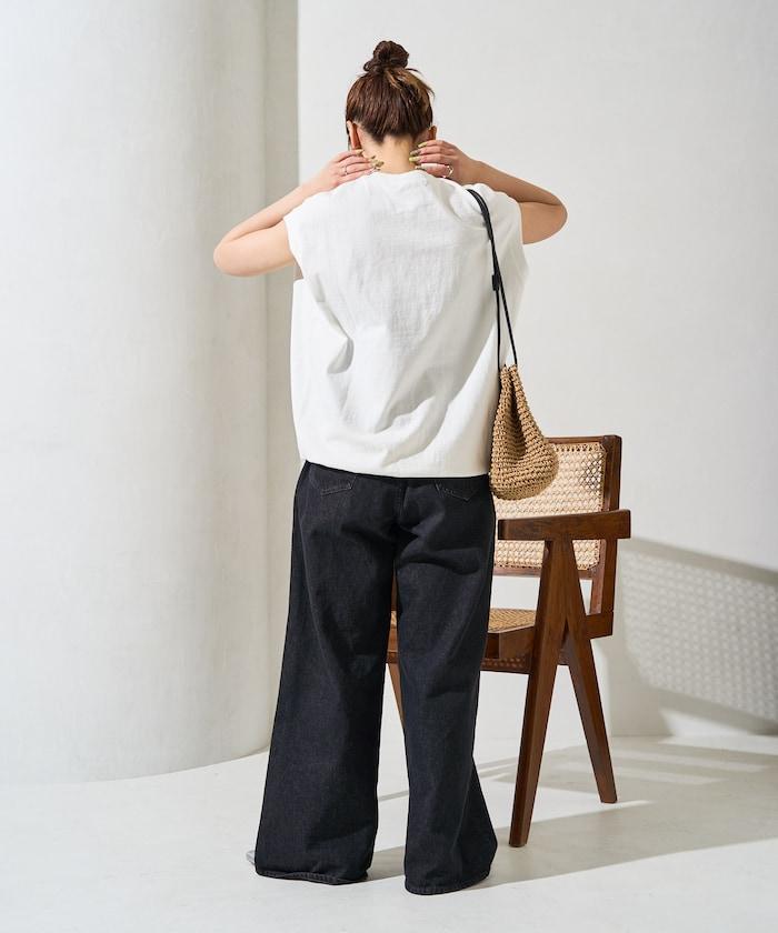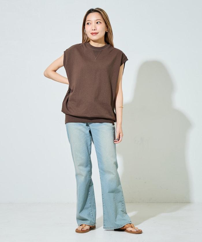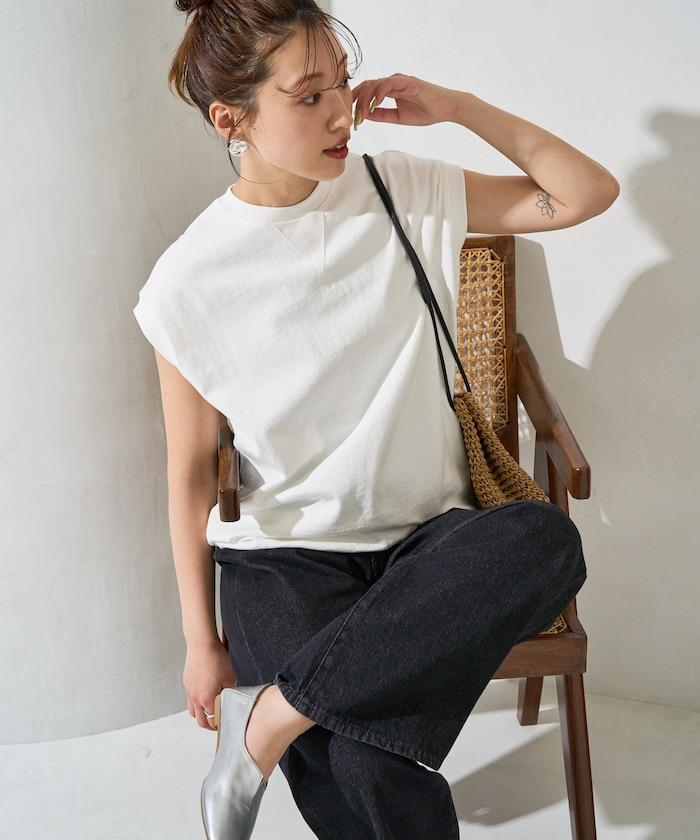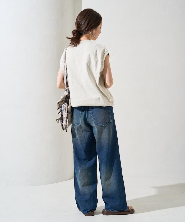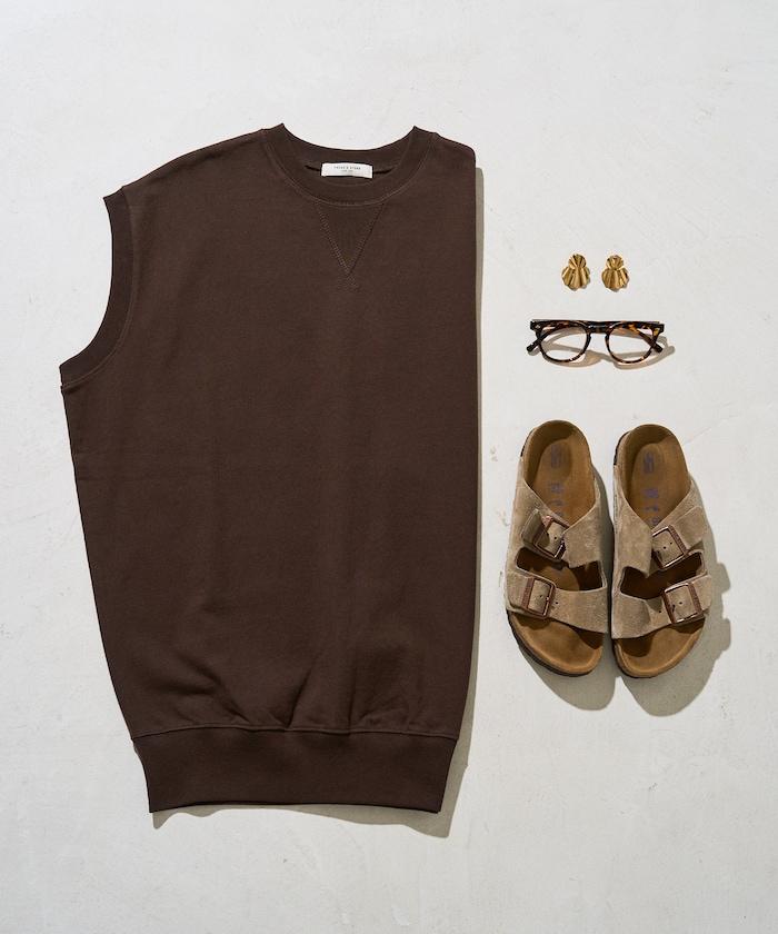 無袖的剪裁,即使搭配寬大的牛仔褲和運動鞋,也能給人一種女性化的休閒印象,彰顯男裝風格。