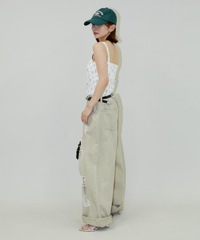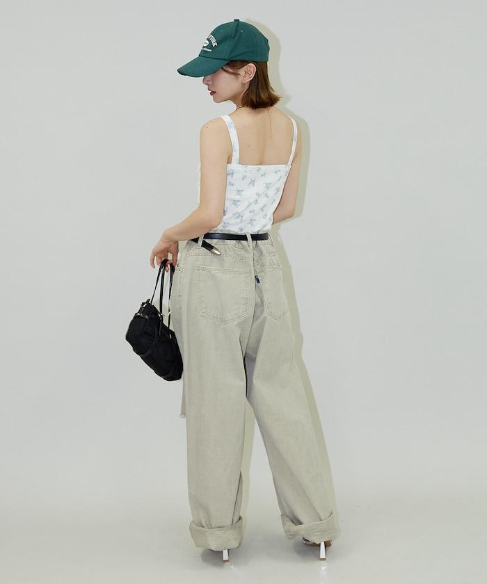 搭配男裝風格的寬牛仔褲或工裝褲,打造利落甜美的造型。