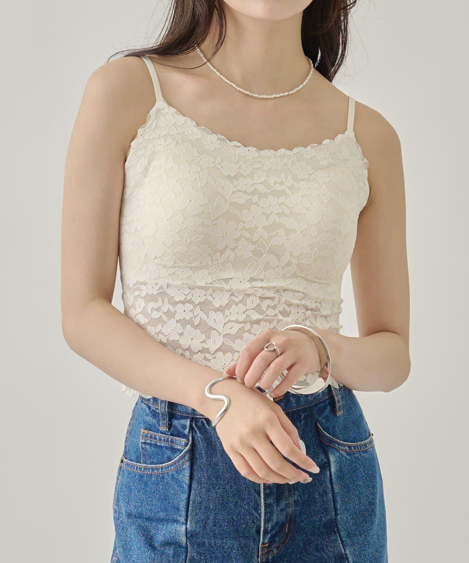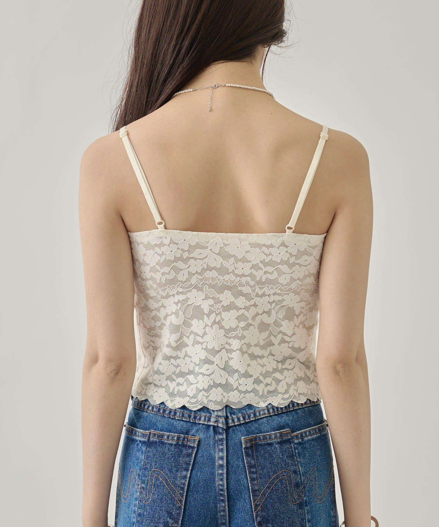 這款吊帶背心採用精緻的蕾絲設計,給人以優雅、柔美的印象。