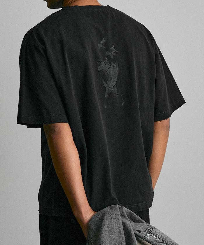復古後背印花 T 恤。