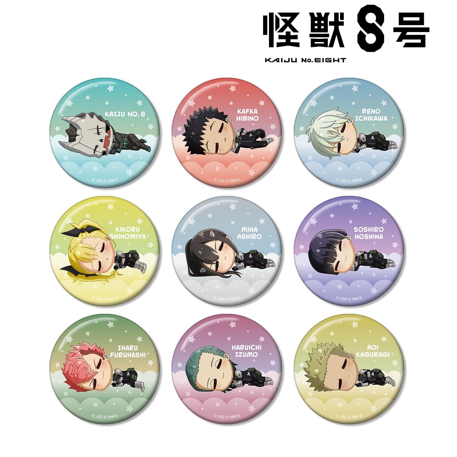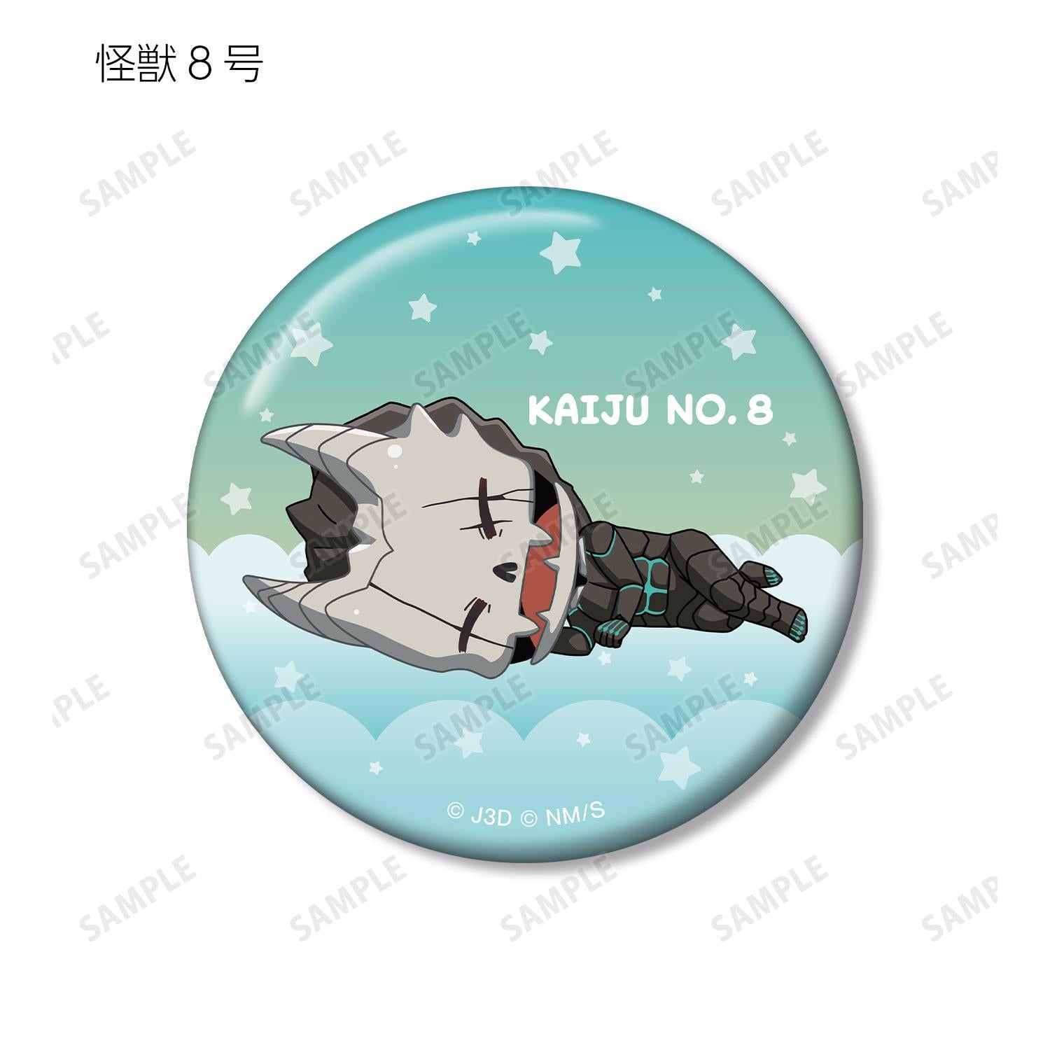 8 號怪獸》中的小主人公日比野卡夫卡、市川雷諾、筱宮菊菜、白白美奈、星奈宗次郎、古橋石春、出雲春一和神木葵在床上熟睡,新繪製的小主人公被製作成徽章。