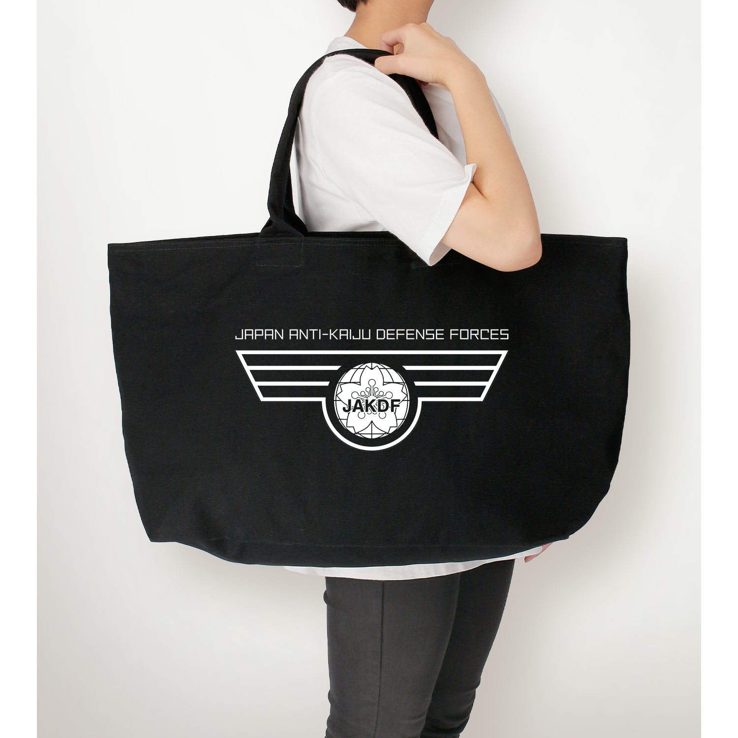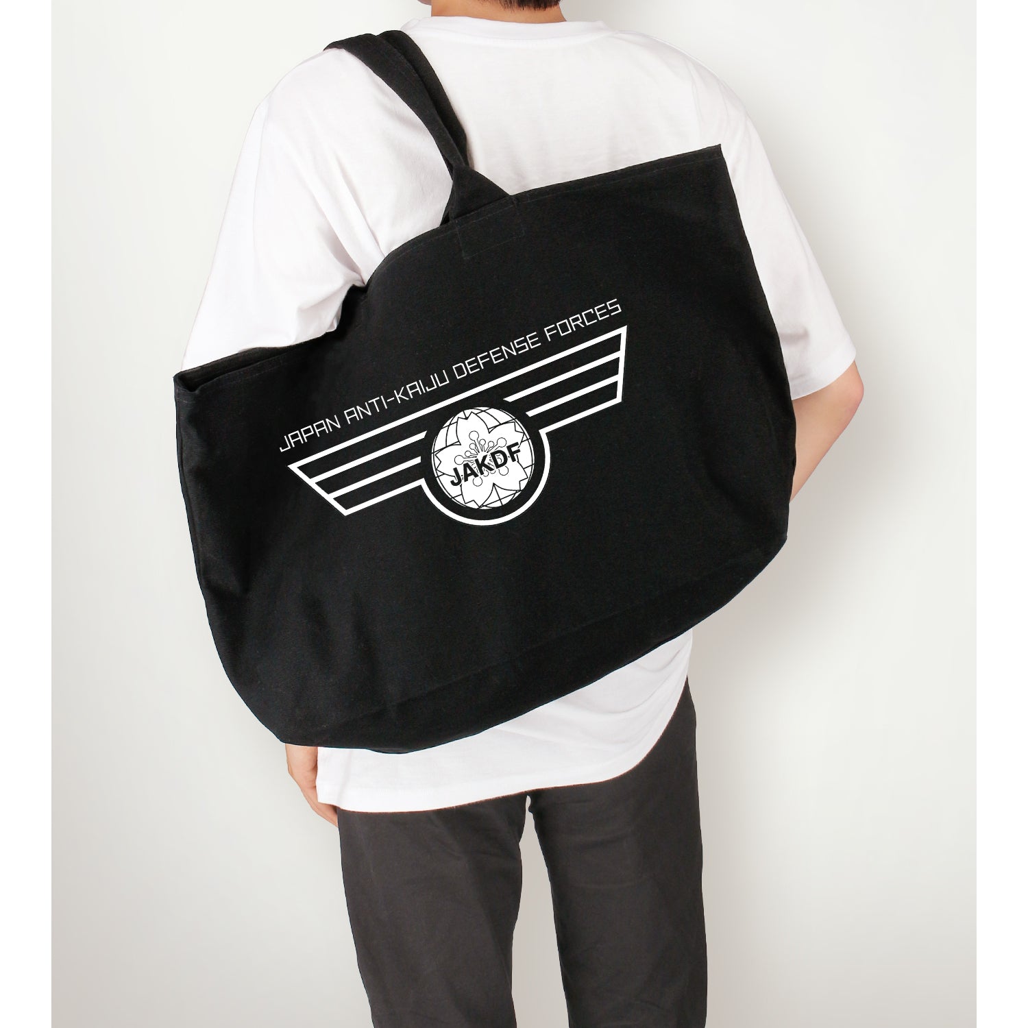 日本防衛軍的徽章被製作成一個大拉鍊手提袋。