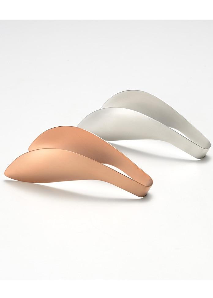 有鍍銀和玫瑰金兩種顏色可供選擇。方形禮盒將夾鉗相對而放,代表著相互認可和支持,祝賀這對新人的開始。