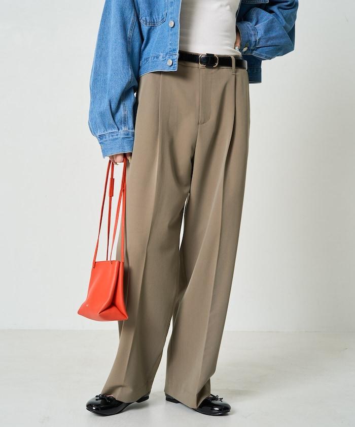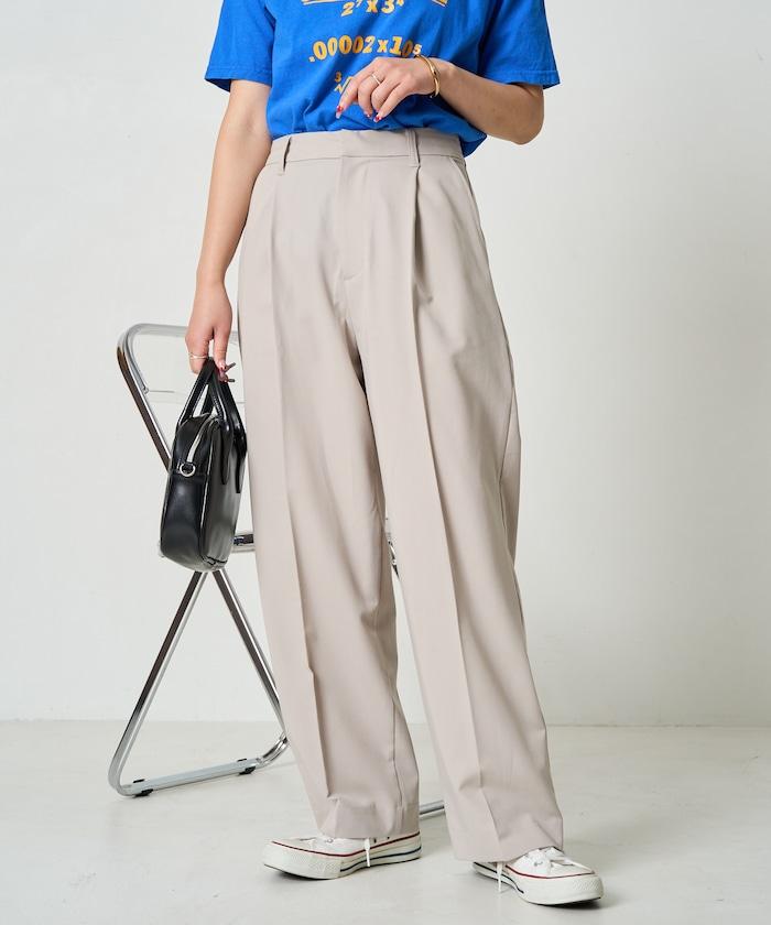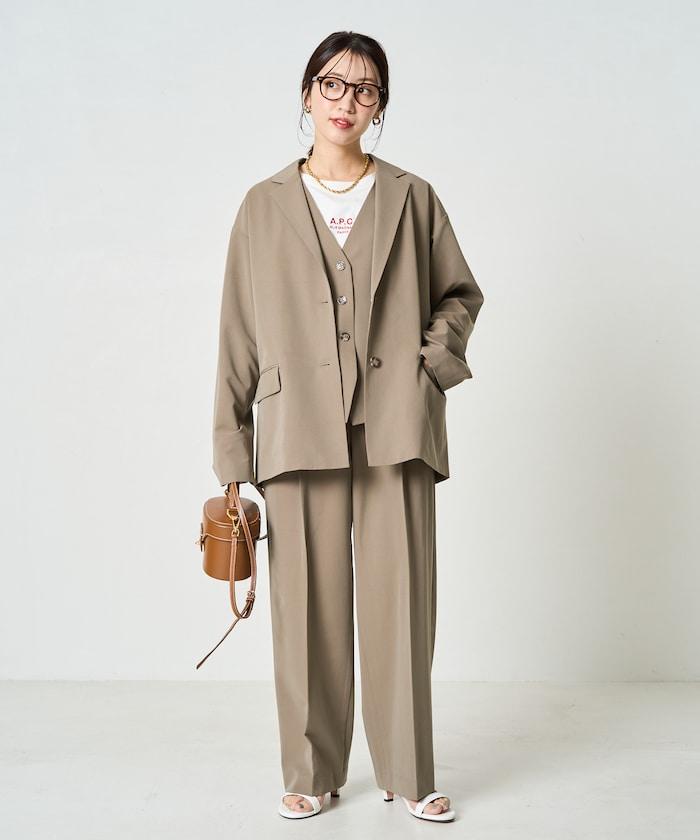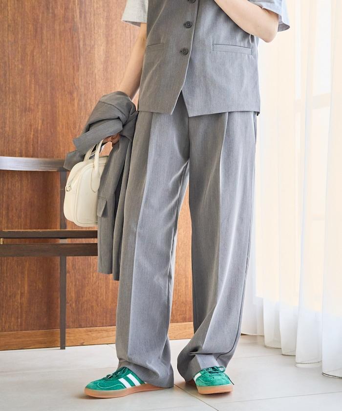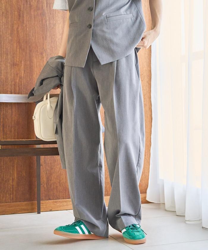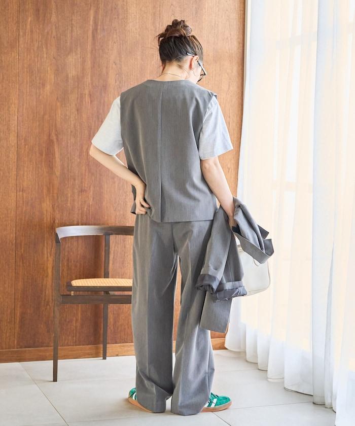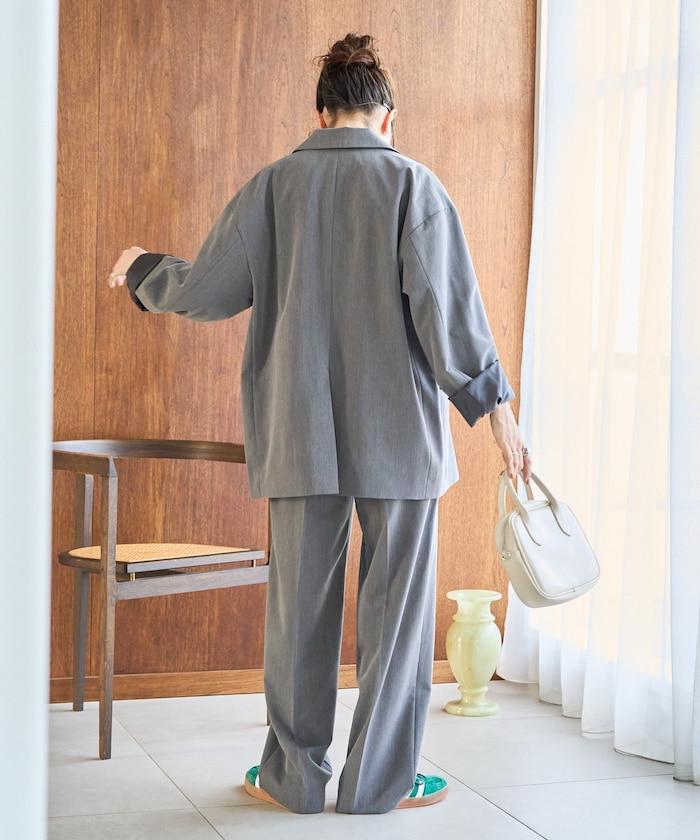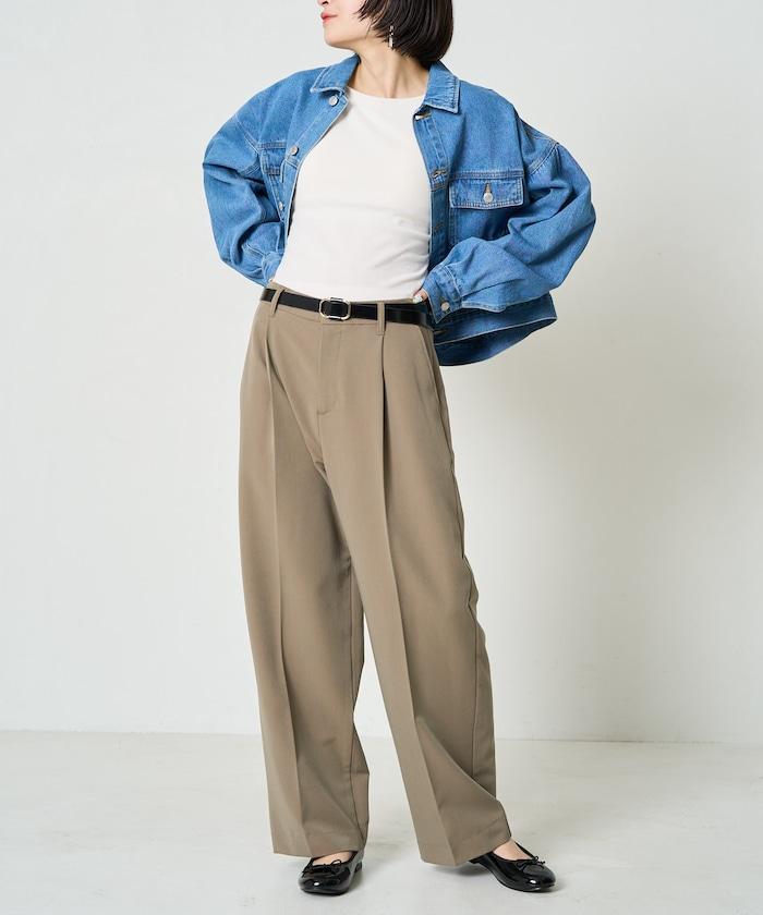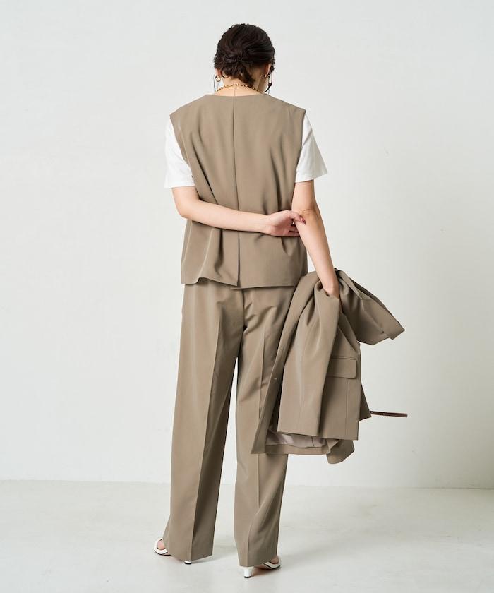 褶襉直筒褲(可作為套裝使用)