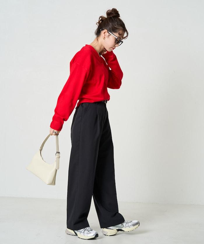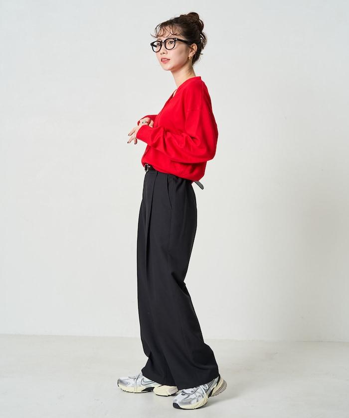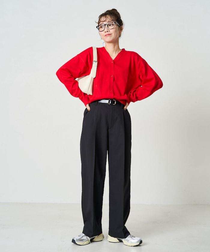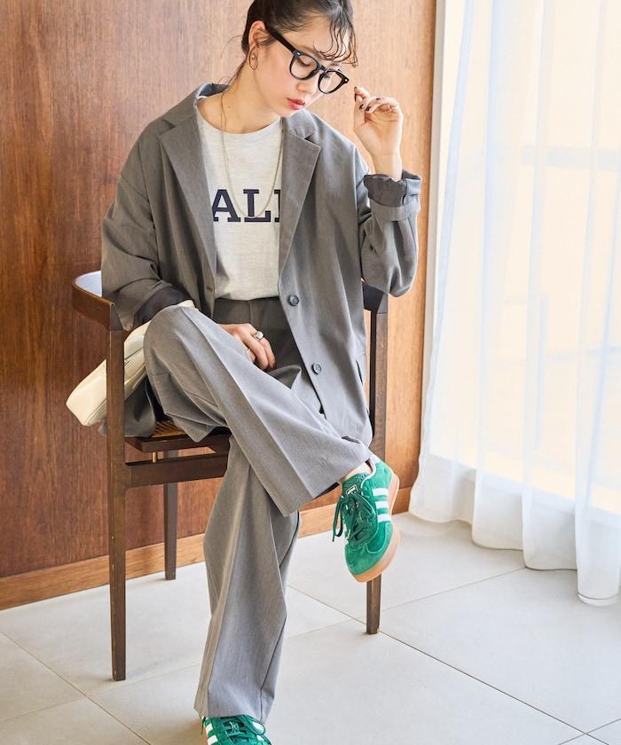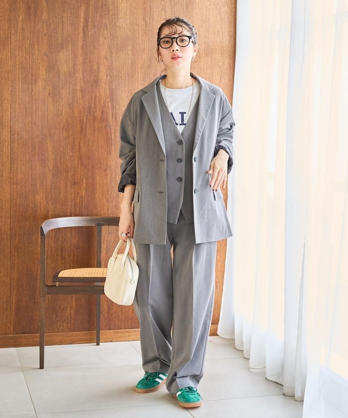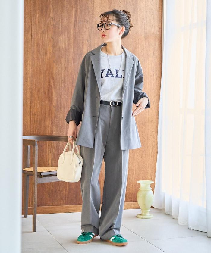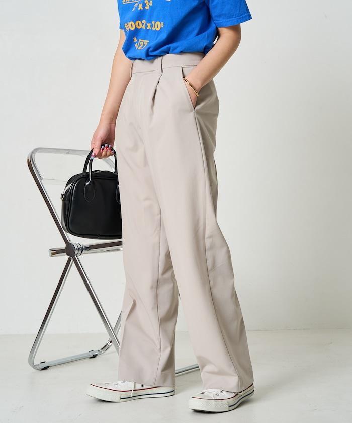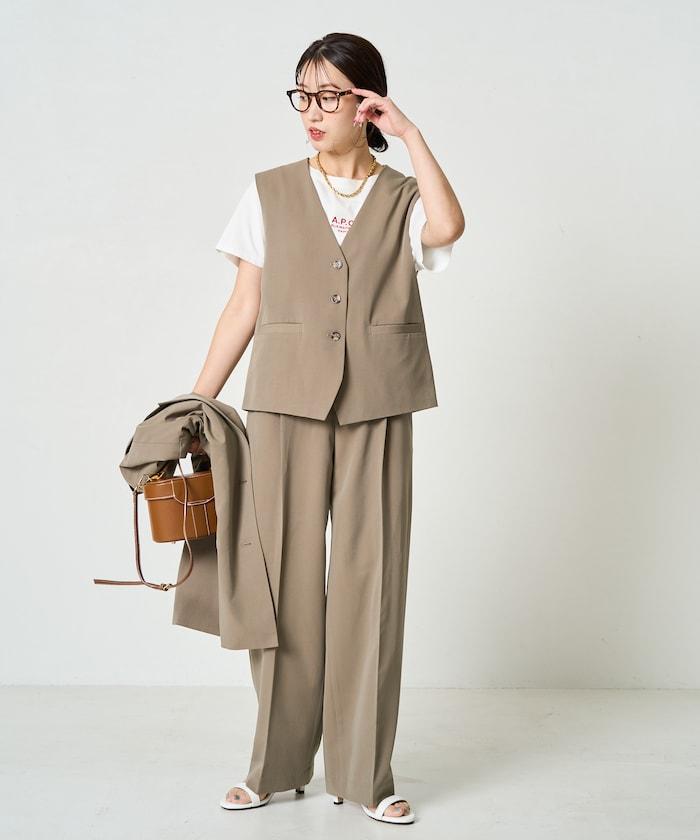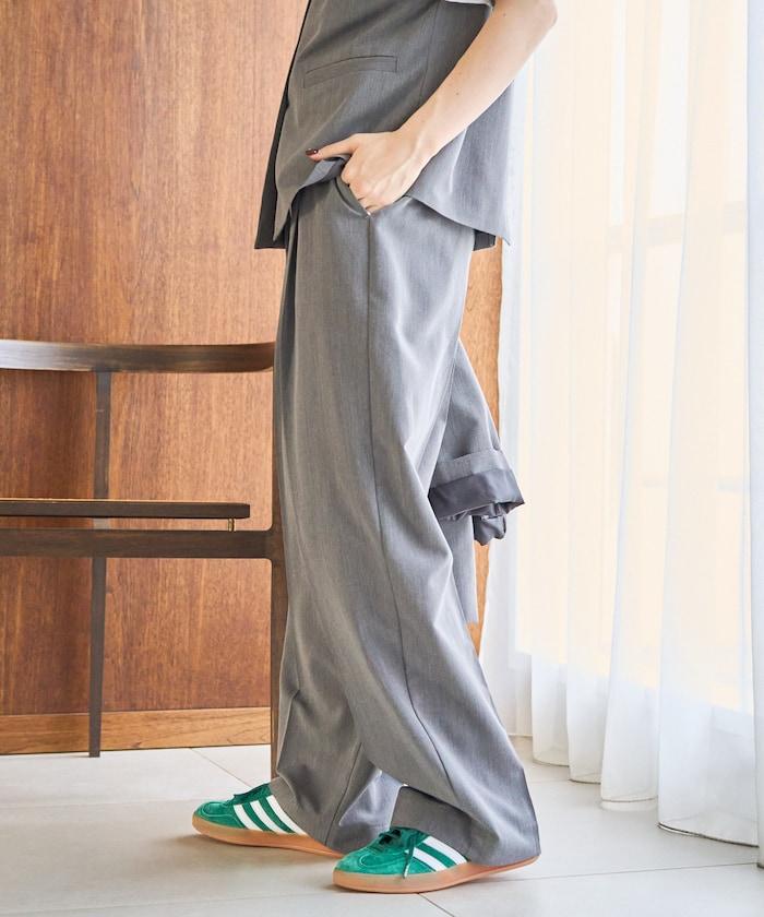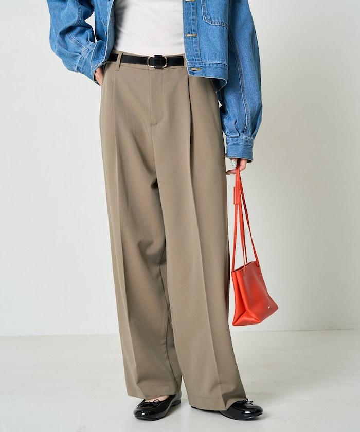 褶襉直筒褲(可作為套裝使用)