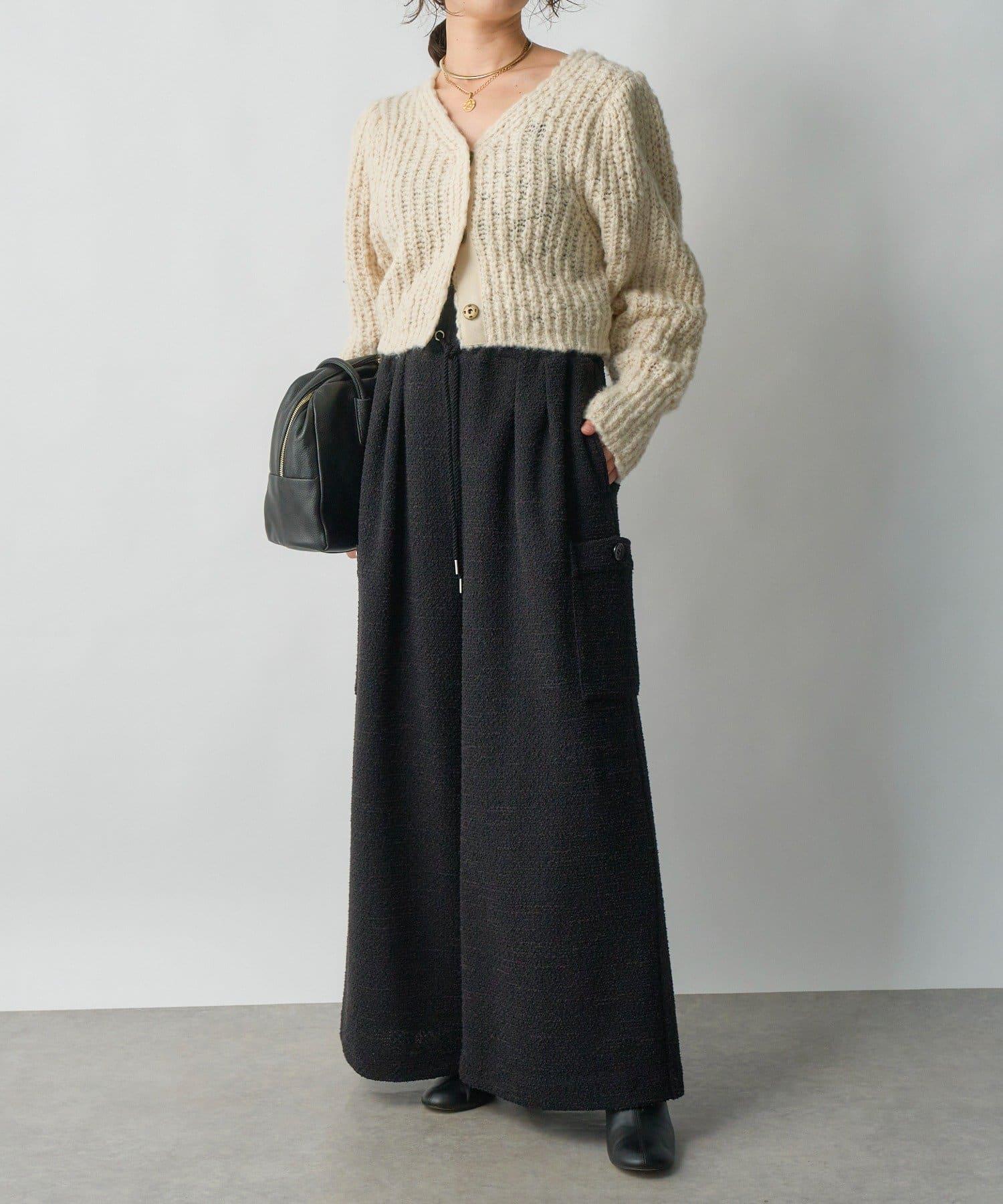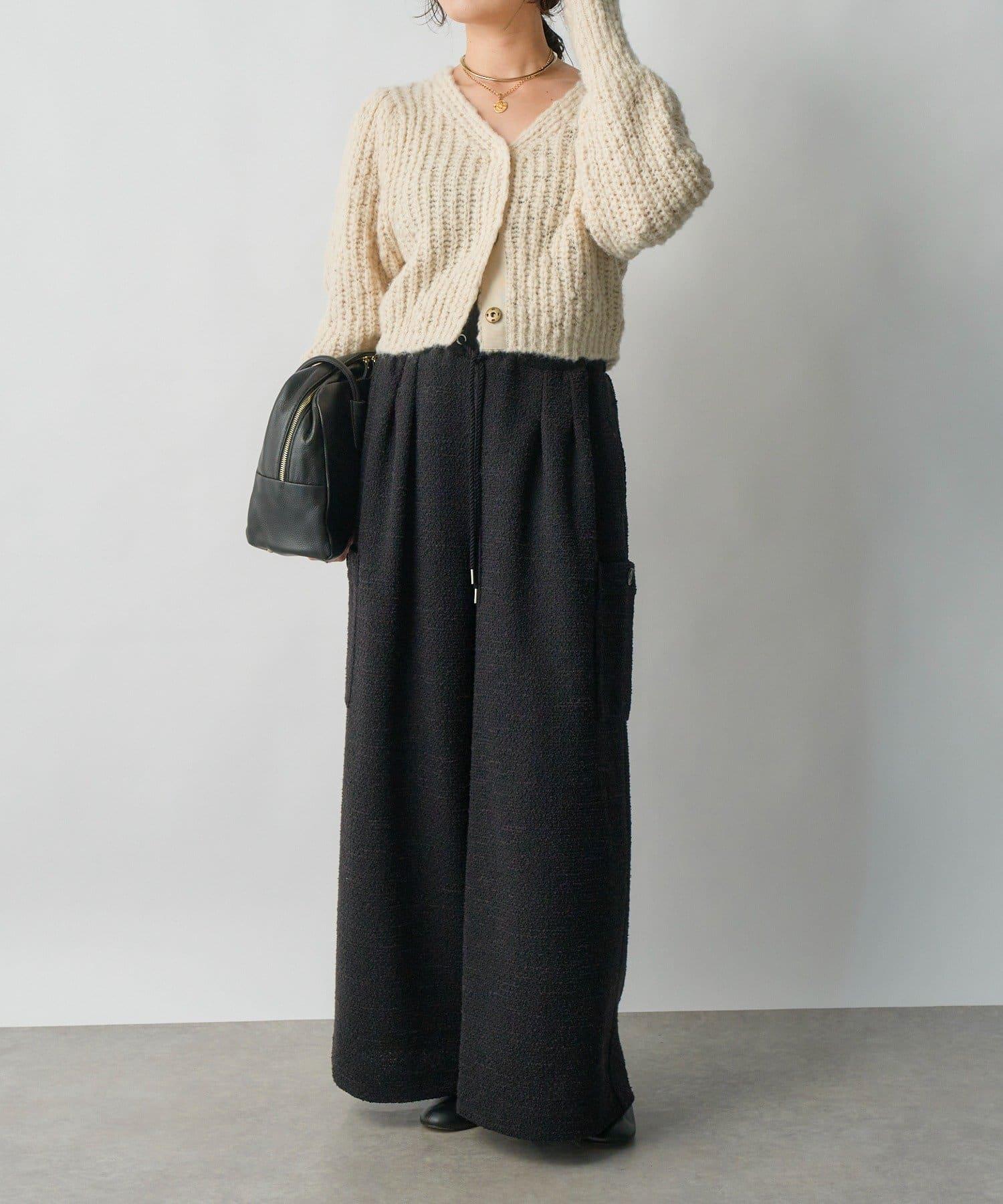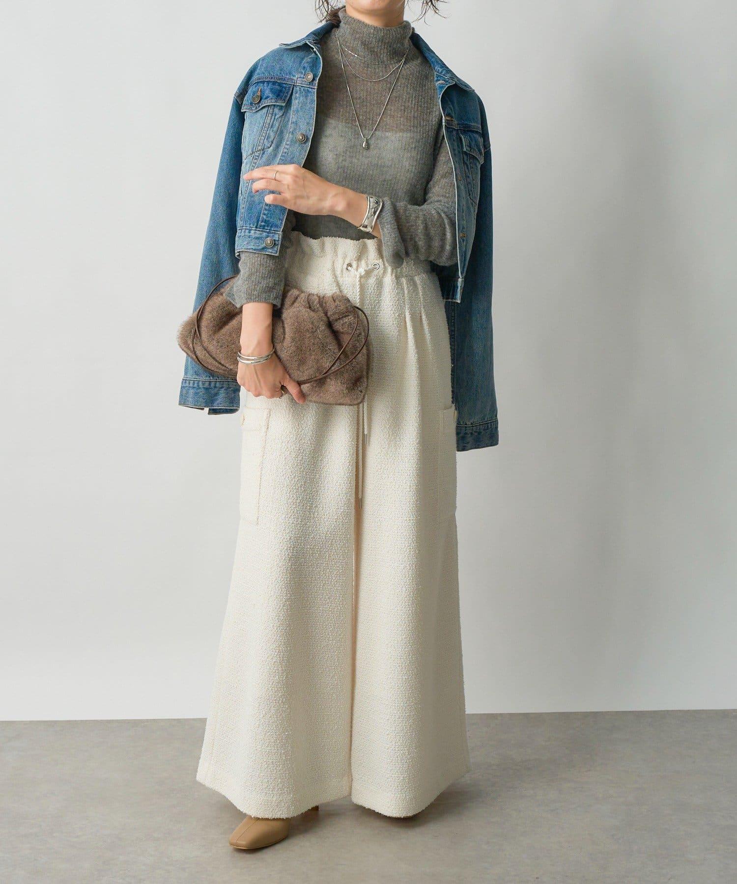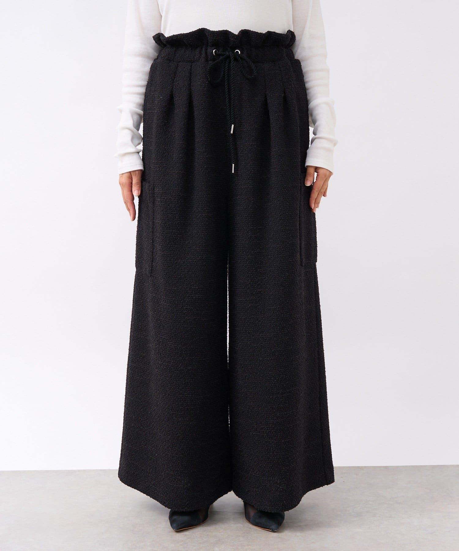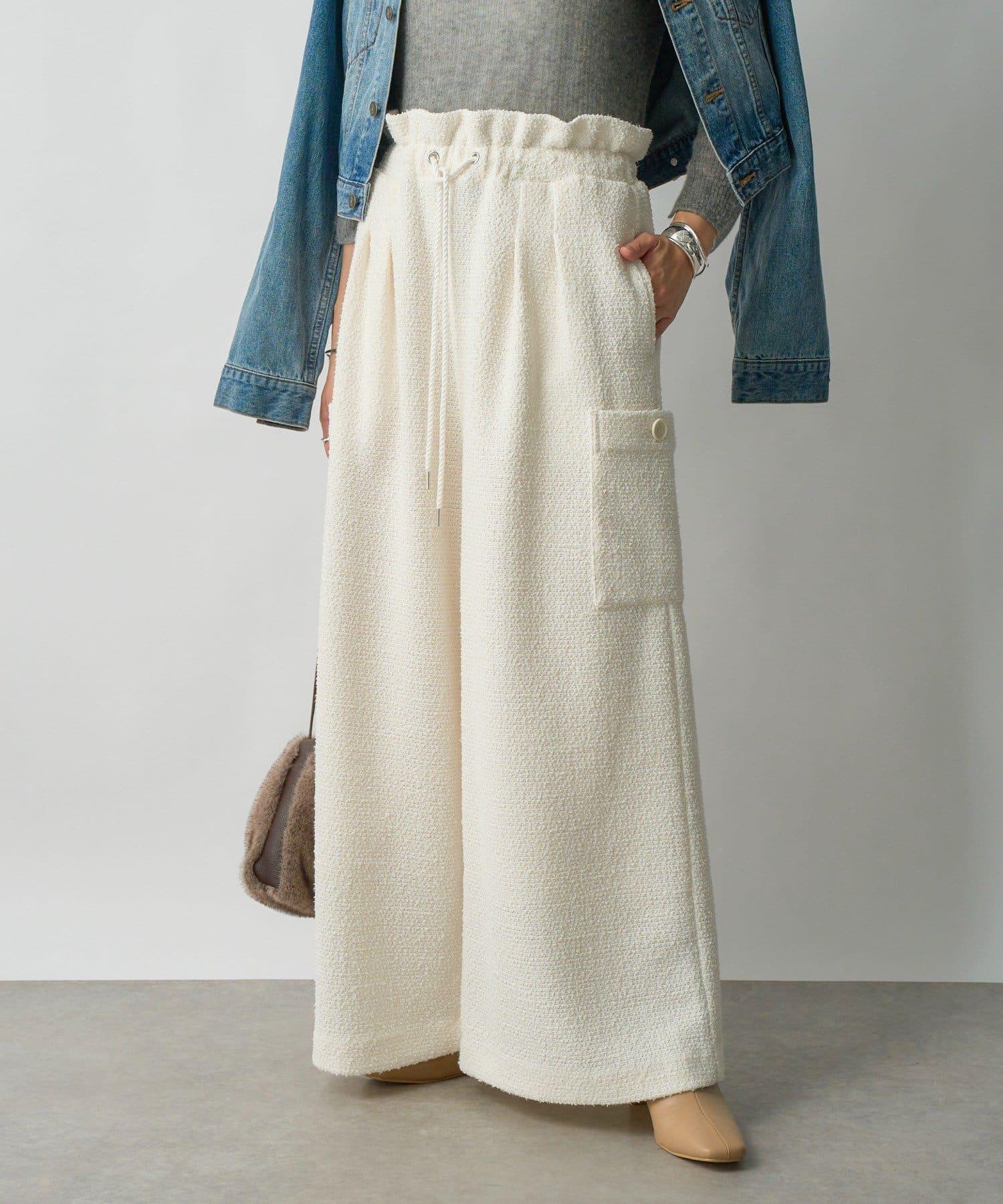 【打造時尚造型】剪裁粗花呢寬腿褲