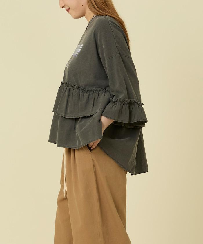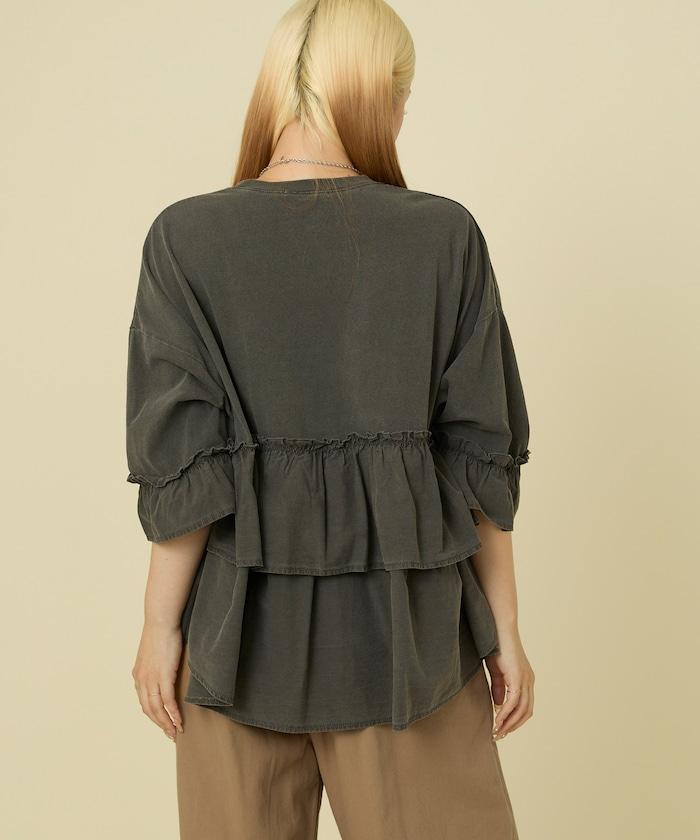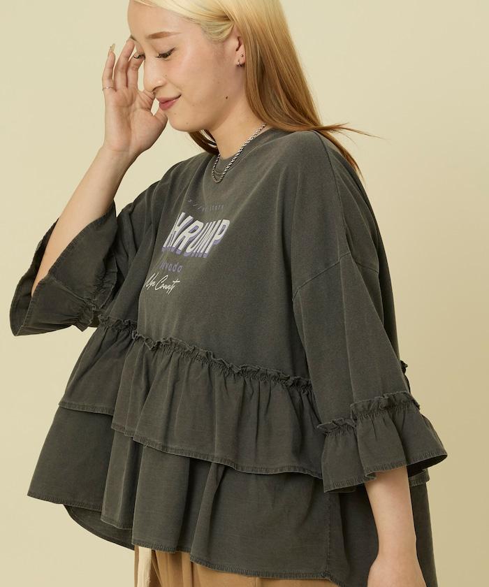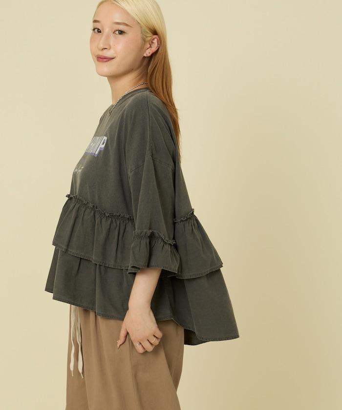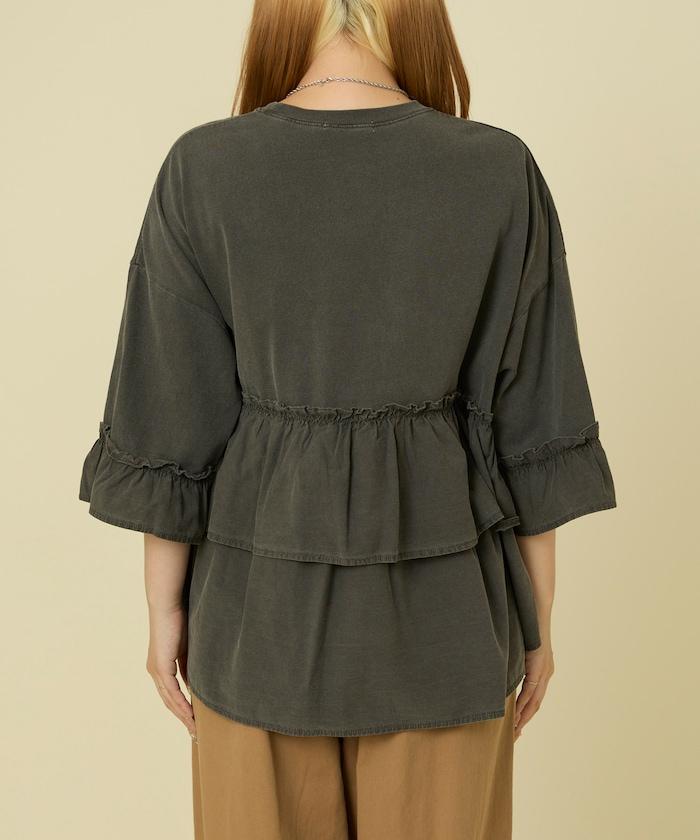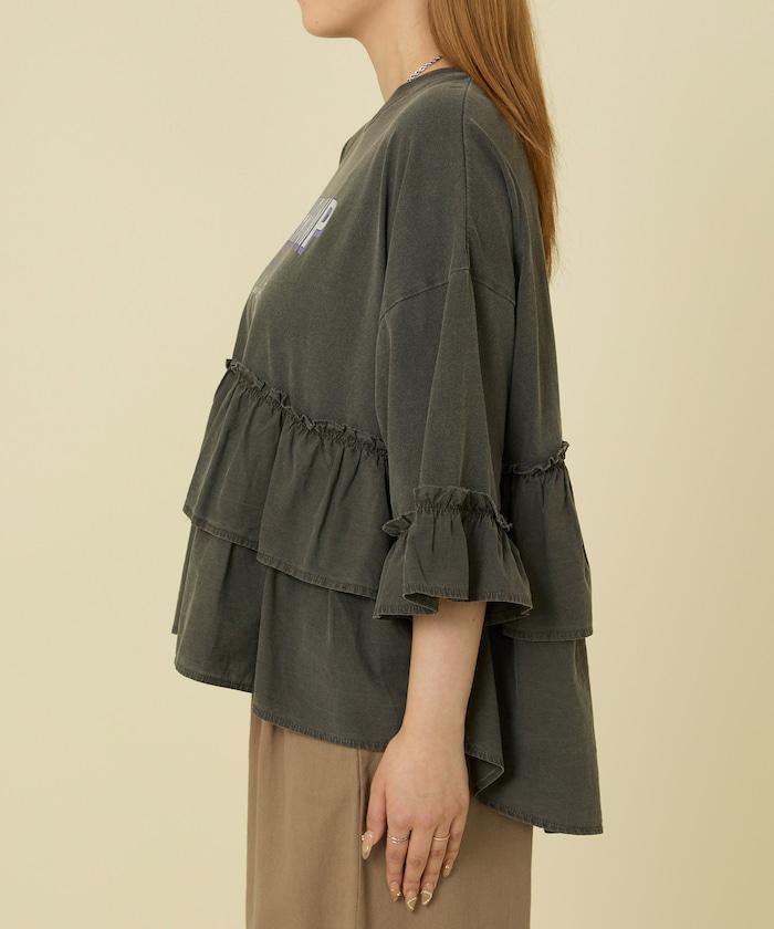 拼接荷葉邊標誌七分袖T恤