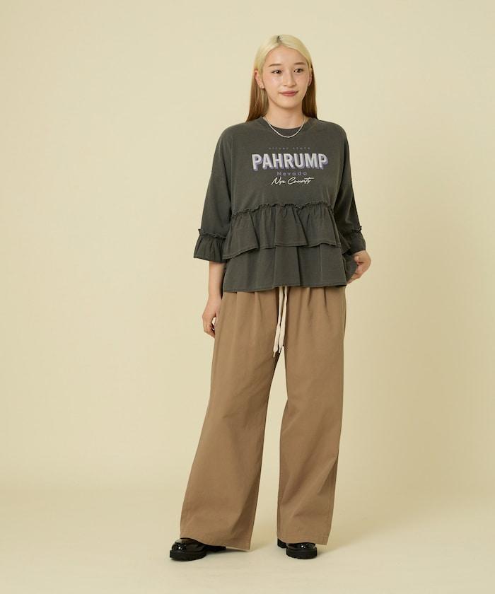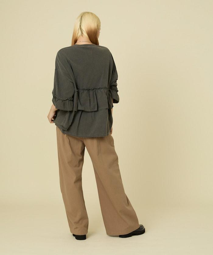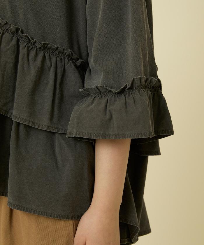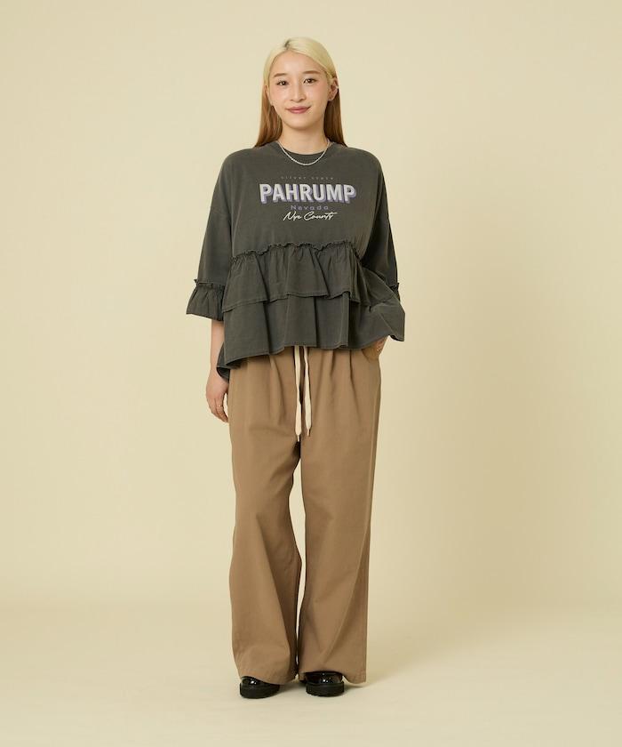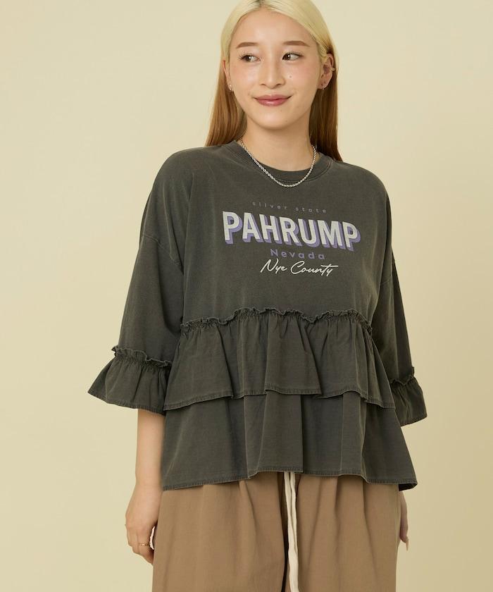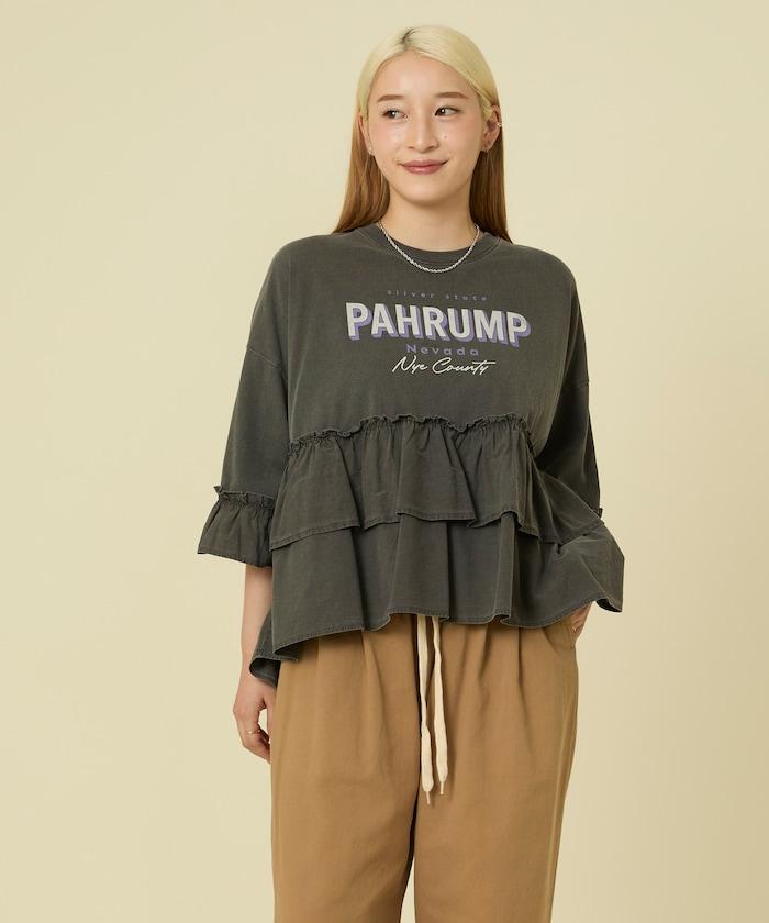 拼接荷葉邊標誌七分袖T恤