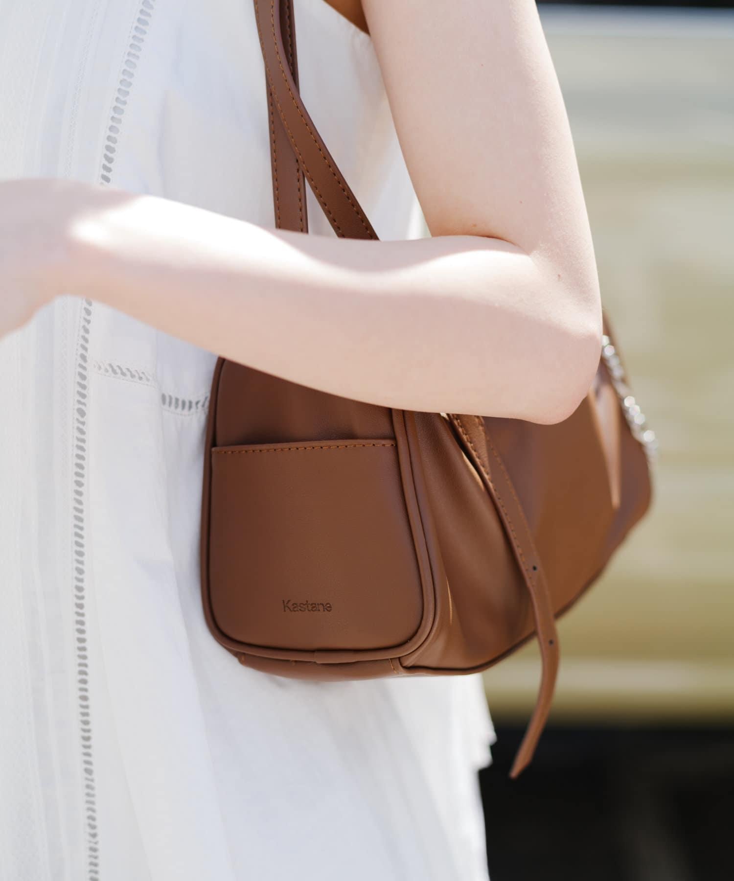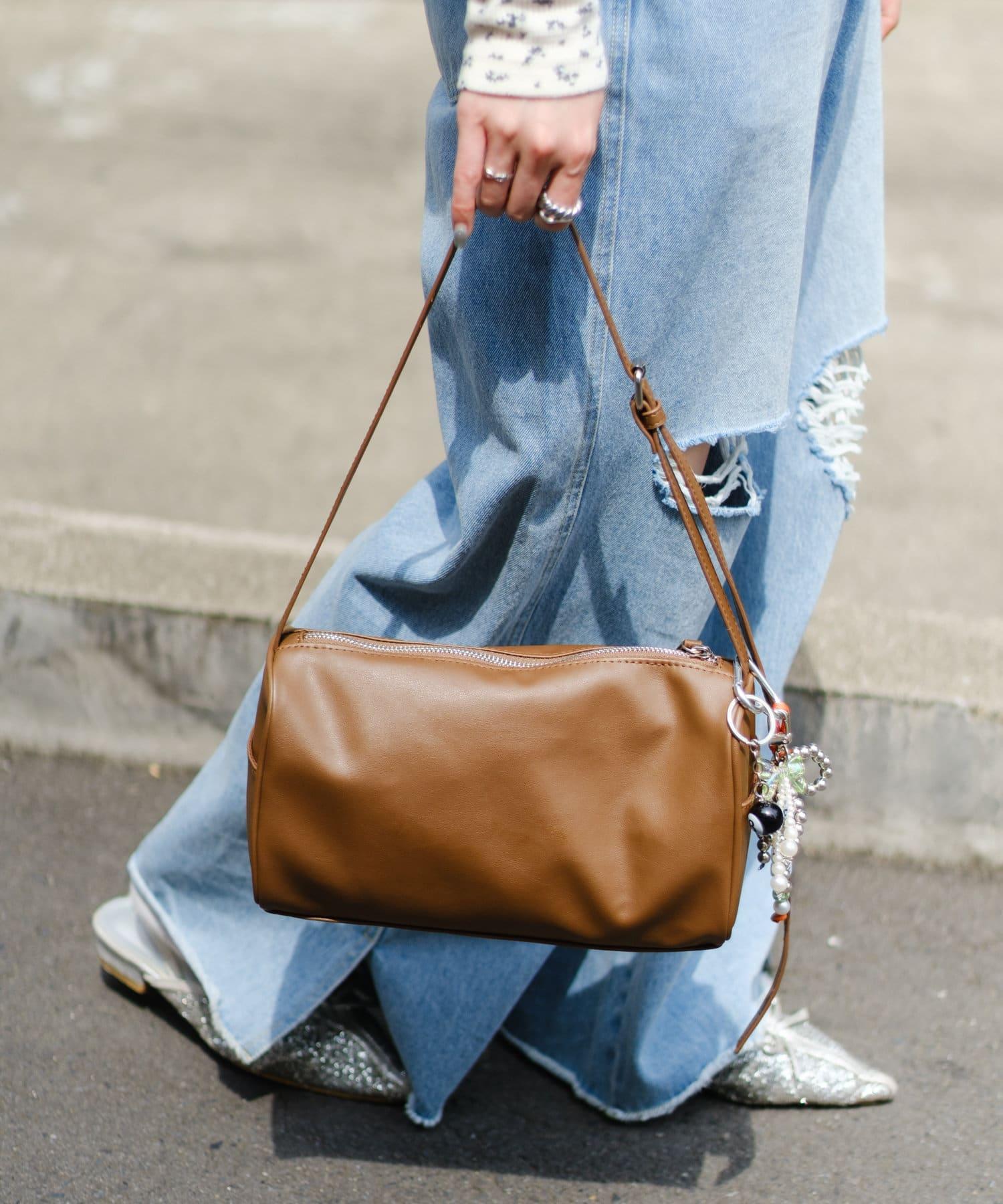 這款手袋採用雙向設計,可用作單肩包或手提包。