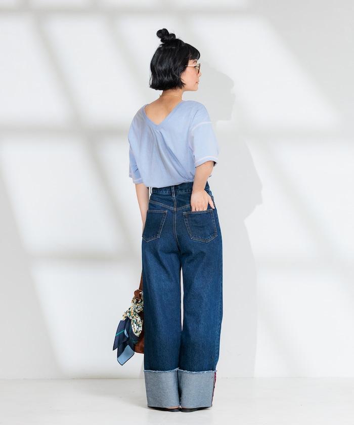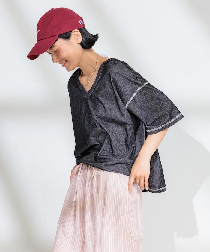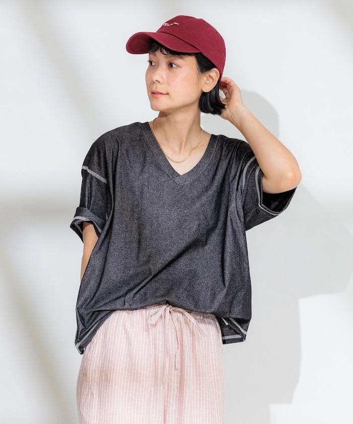 <接觸冷感>混紡 2WAY V領T恤【限定推出】