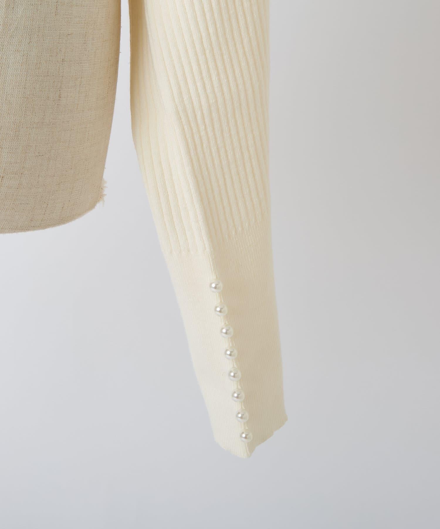 【提升時尚感效果◎】袖珍珍珠針織短外套