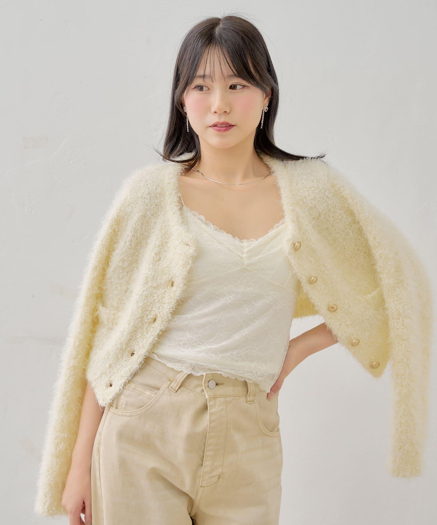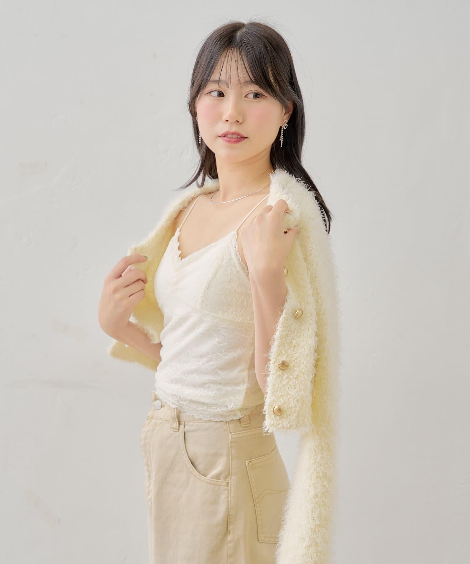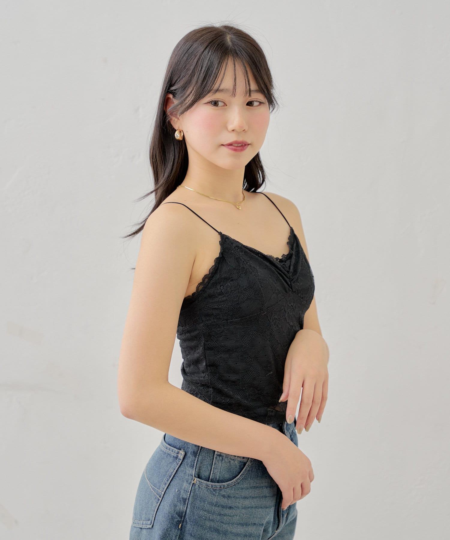 這款吊帶背心的蕾絲設計簡單而甜美,充滿女性魅力。
