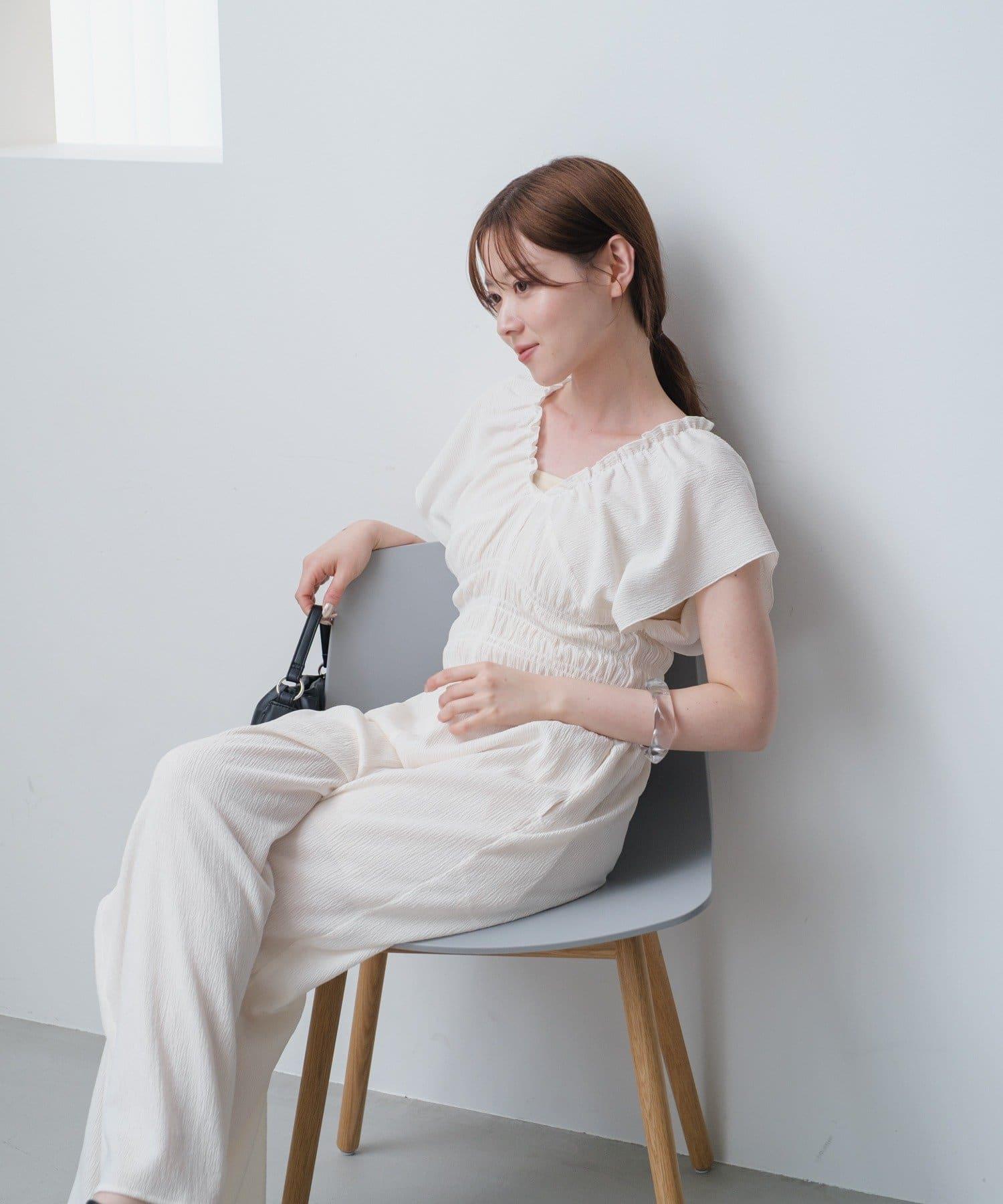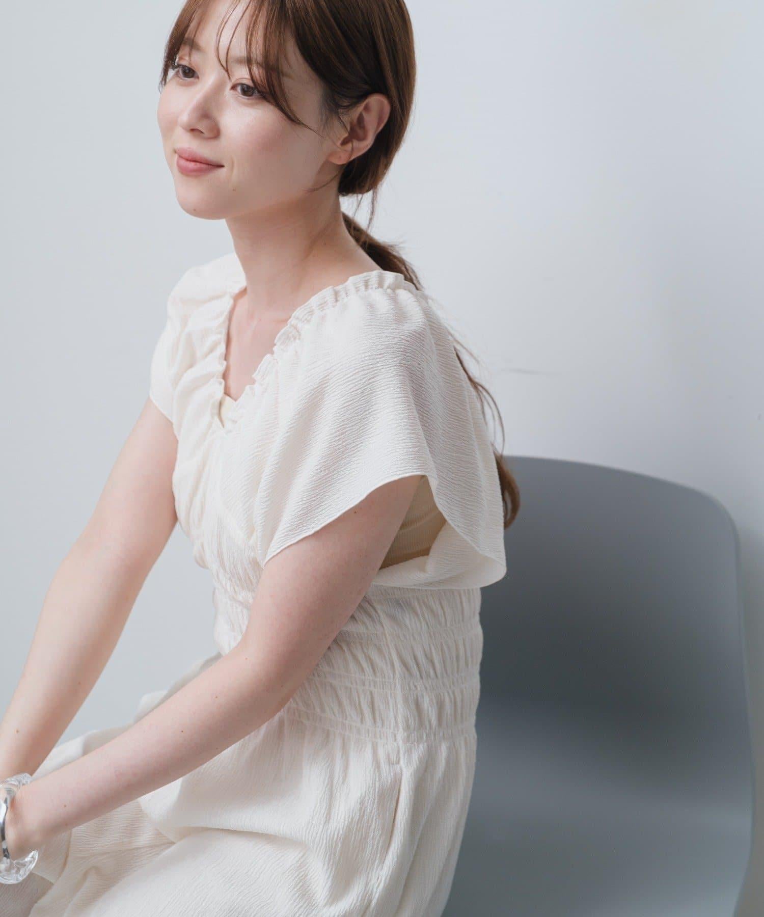 適度開闊的 V 字領口使臉部看起來乾淨利落。