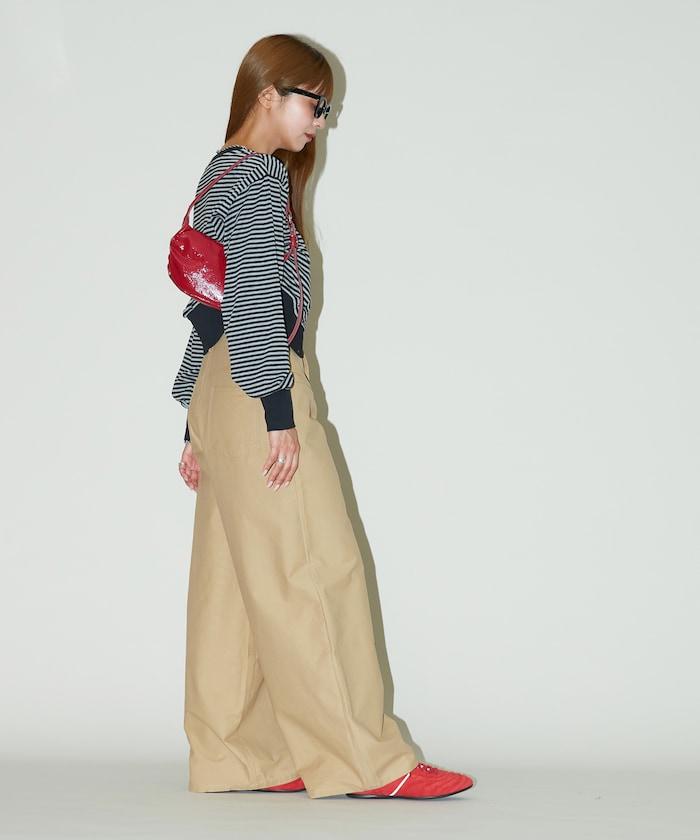 兩側的斜插口袋位置較高,具有出色的拉長腿部線條的效果。