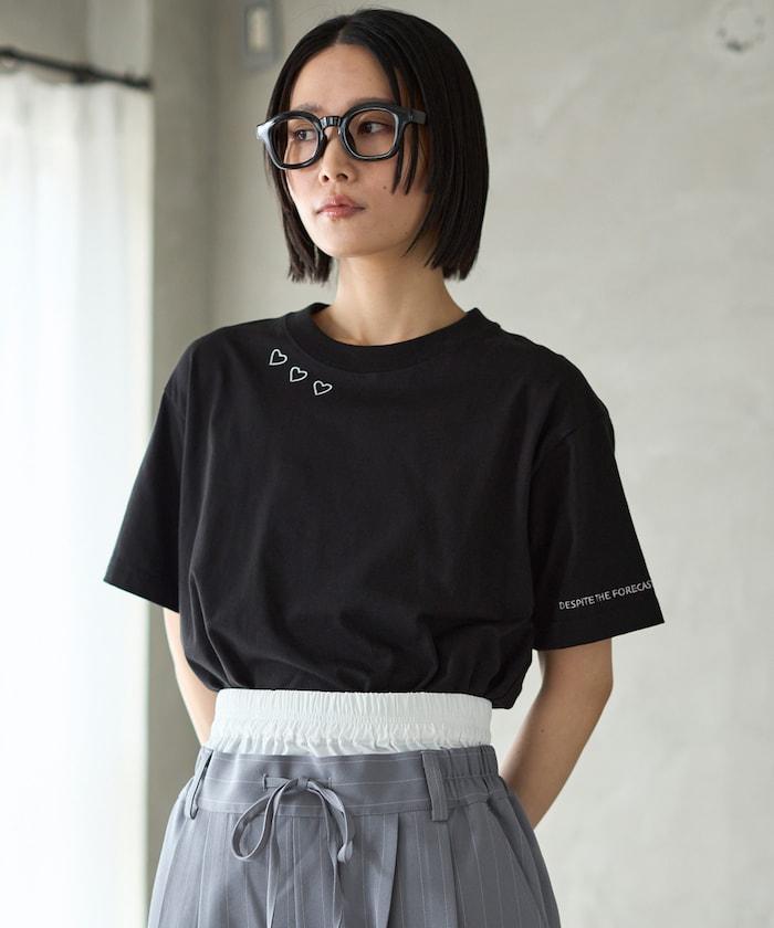有機棉 心形 標誌刺繡T恤 / 圓領 單點標誌 刺繡短袖T恤