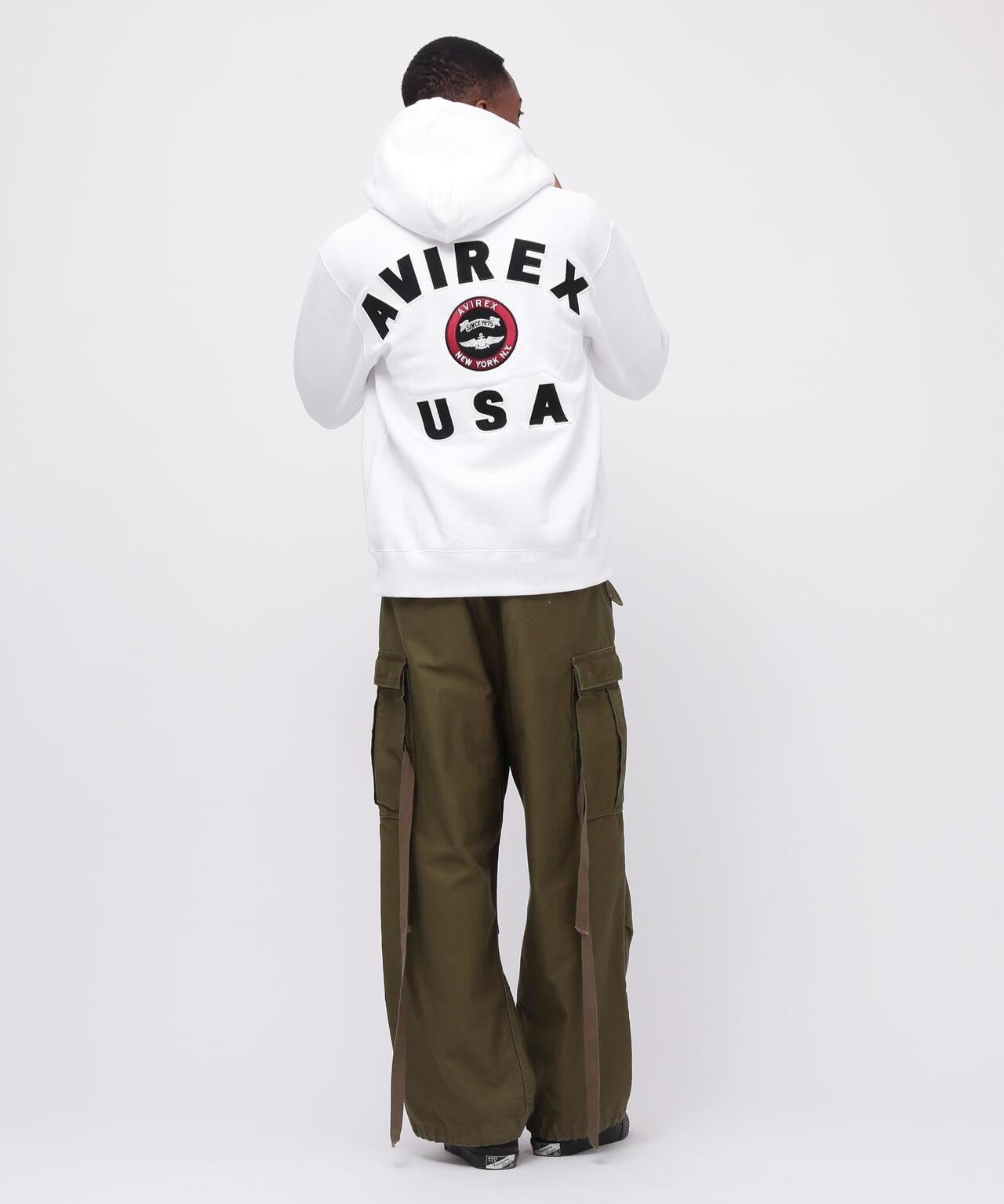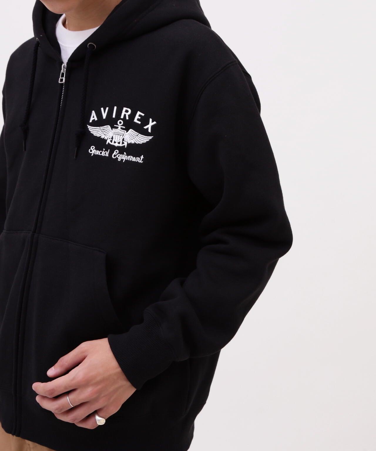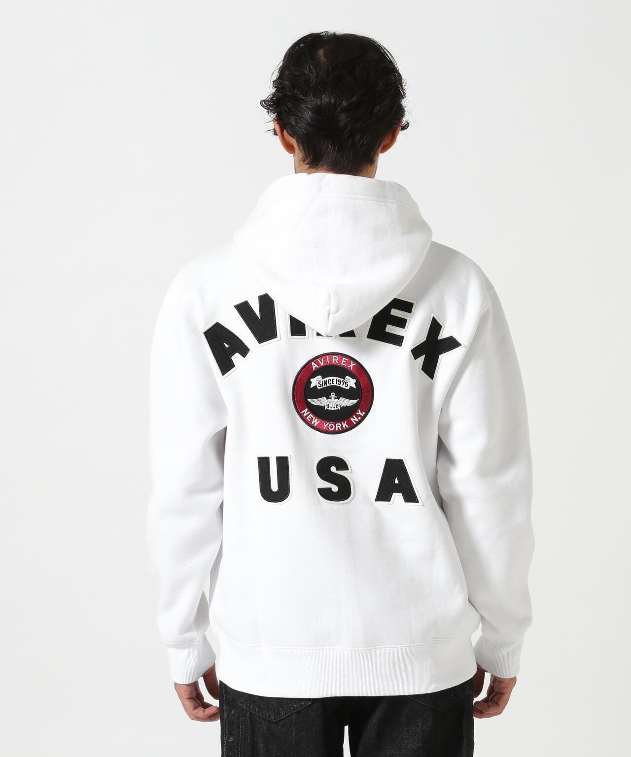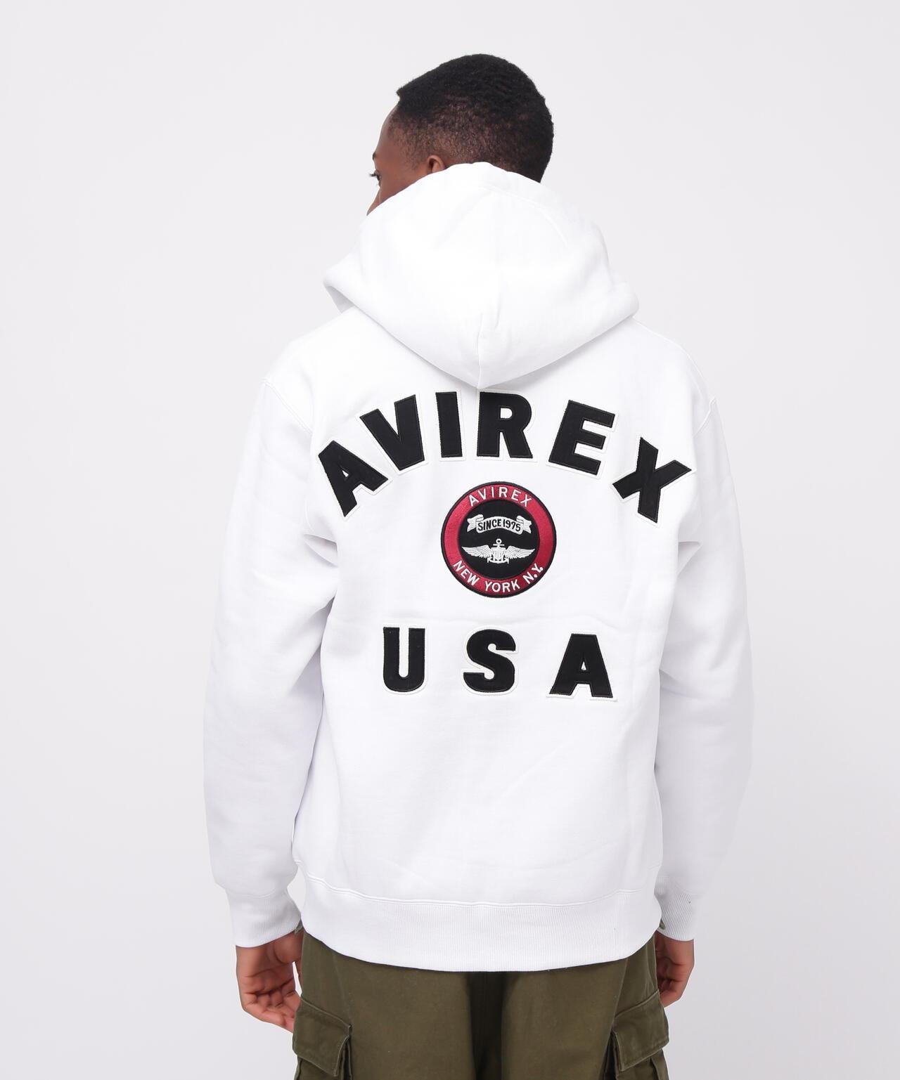 AVIREX VARSITY] 這是一個以美好的美國為主題的運動系列,Avirex 獨特的色彩和富有創意的圖案設計受到以 HIPHOP 圈為主的當紅藝術家和運動員的青睞,並已擴展成為美國年輕人的身份品牌。該品牌已發展成為美國年輕人的身份象徵品牌。經典而永恆的 AVIREX VARSITY 服裝繼續受到所有崇尚美國英雄精神的人們的支持,無論性別或國籍。<產品細節> - 65% 棉,35% 滌綸,後背拉鍊連帽衫,背後有品牌標誌圖案,3D 立體刺繡貼花。