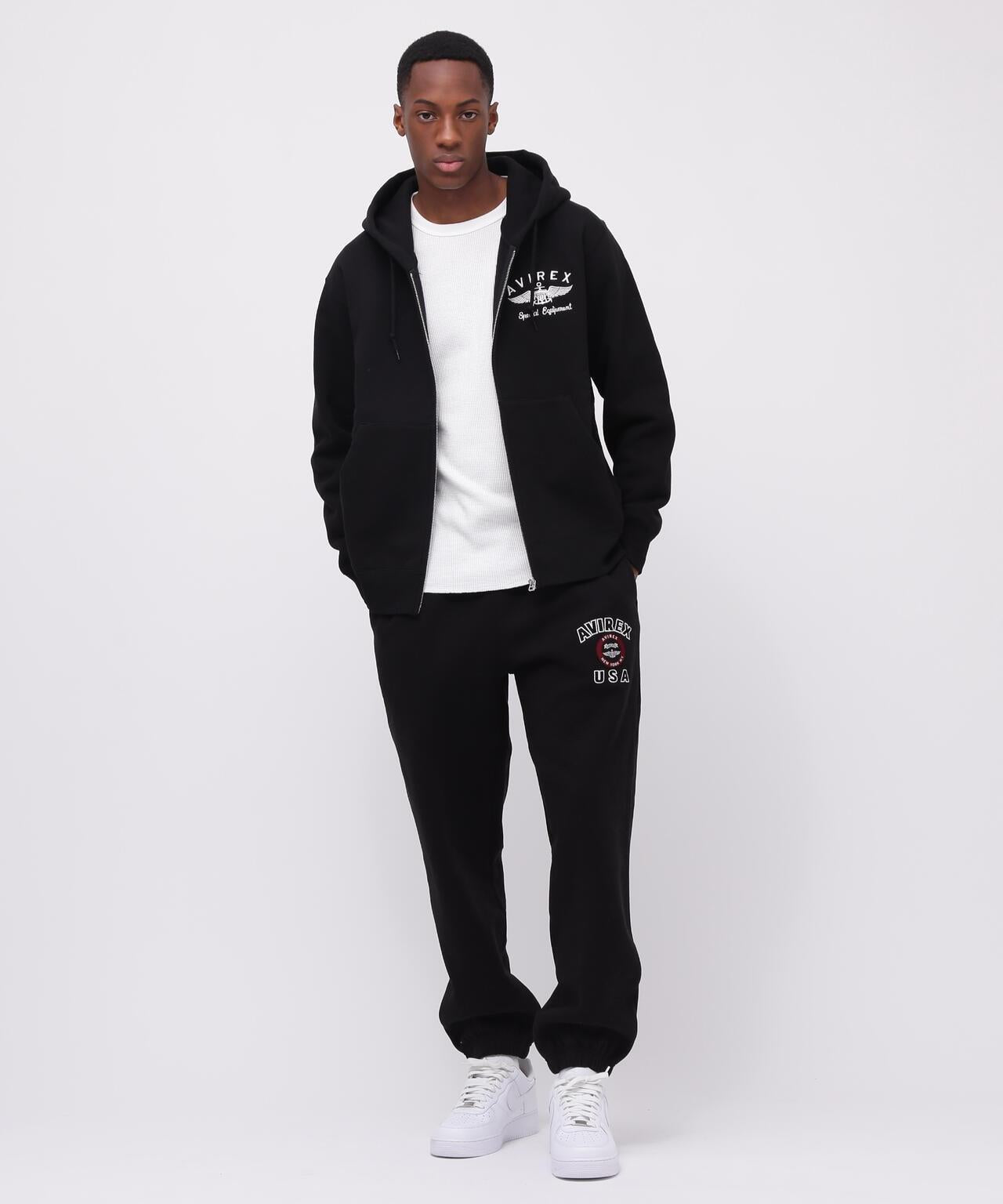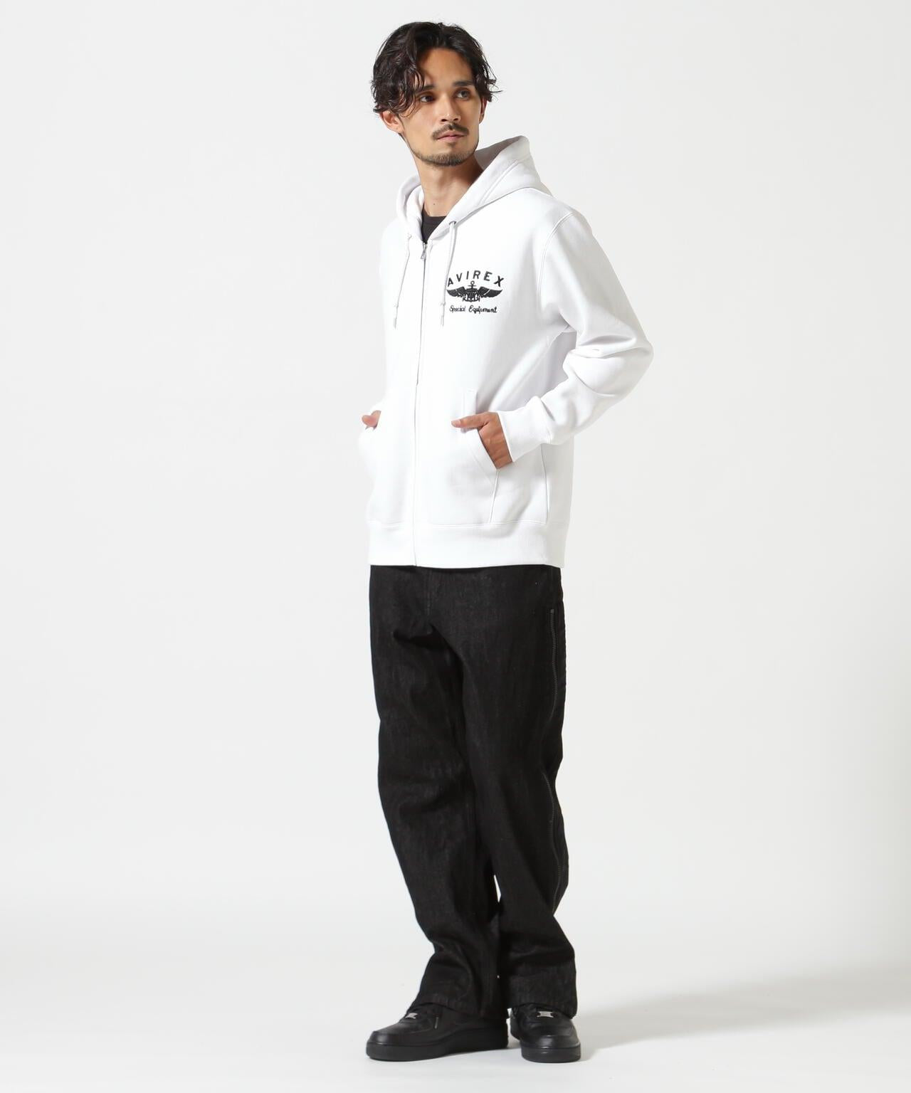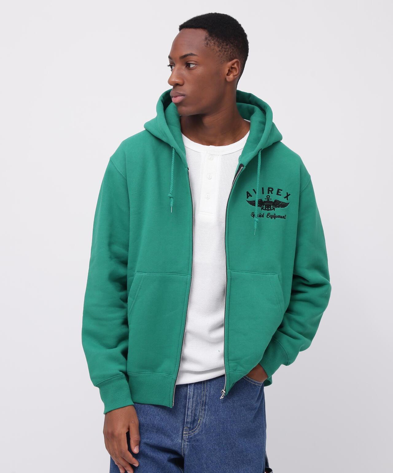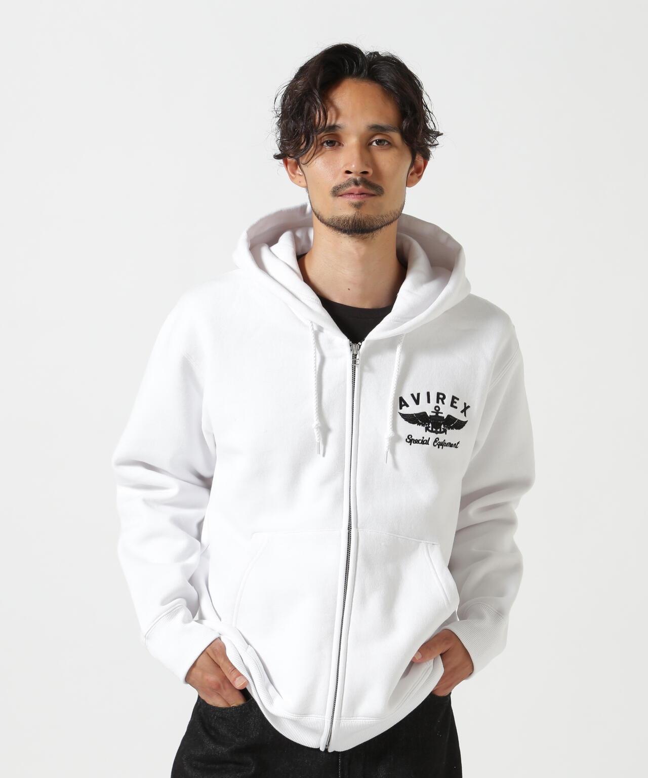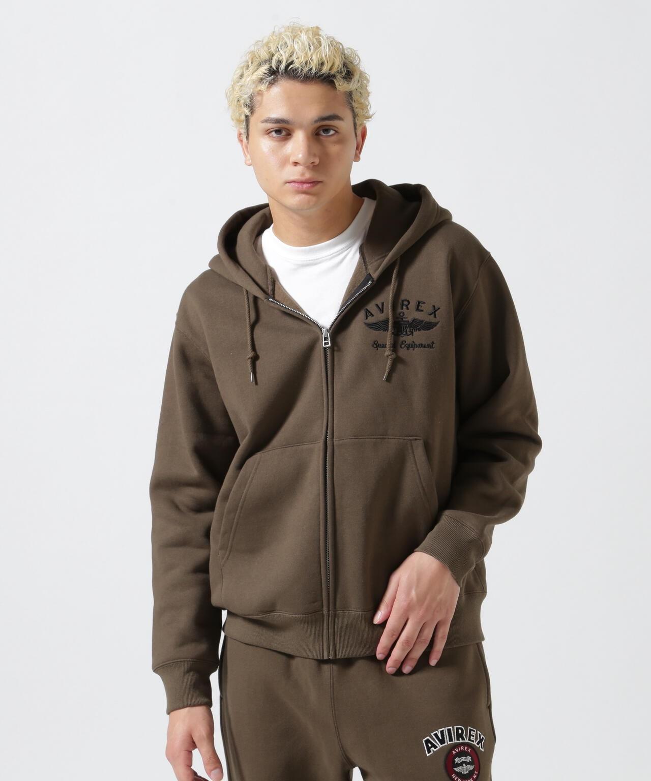 AVIREX VARSITY] 這是一個以美好的美國為主題的運動系列,Avirex 獨特的色彩和富有創意的圖案設計受到以 HIPHOP 圈為主的當紅藝術家和運動員的青睞,並已擴展成為美國年輕人的身份品牌。該品牌已發展成為美國年輕人的身份象徵品牌。經典而永恆的 AVIREX VARSITY 服裝繼續受到所有崇尚美國英雄精神的人們的支持,無論性別或國籍。<產品細節> - 65% 棉,35% 滌綸,後背拉鍊連帽衫,背後有品牌標誌圖案,3D 立體刺繡貼花。
