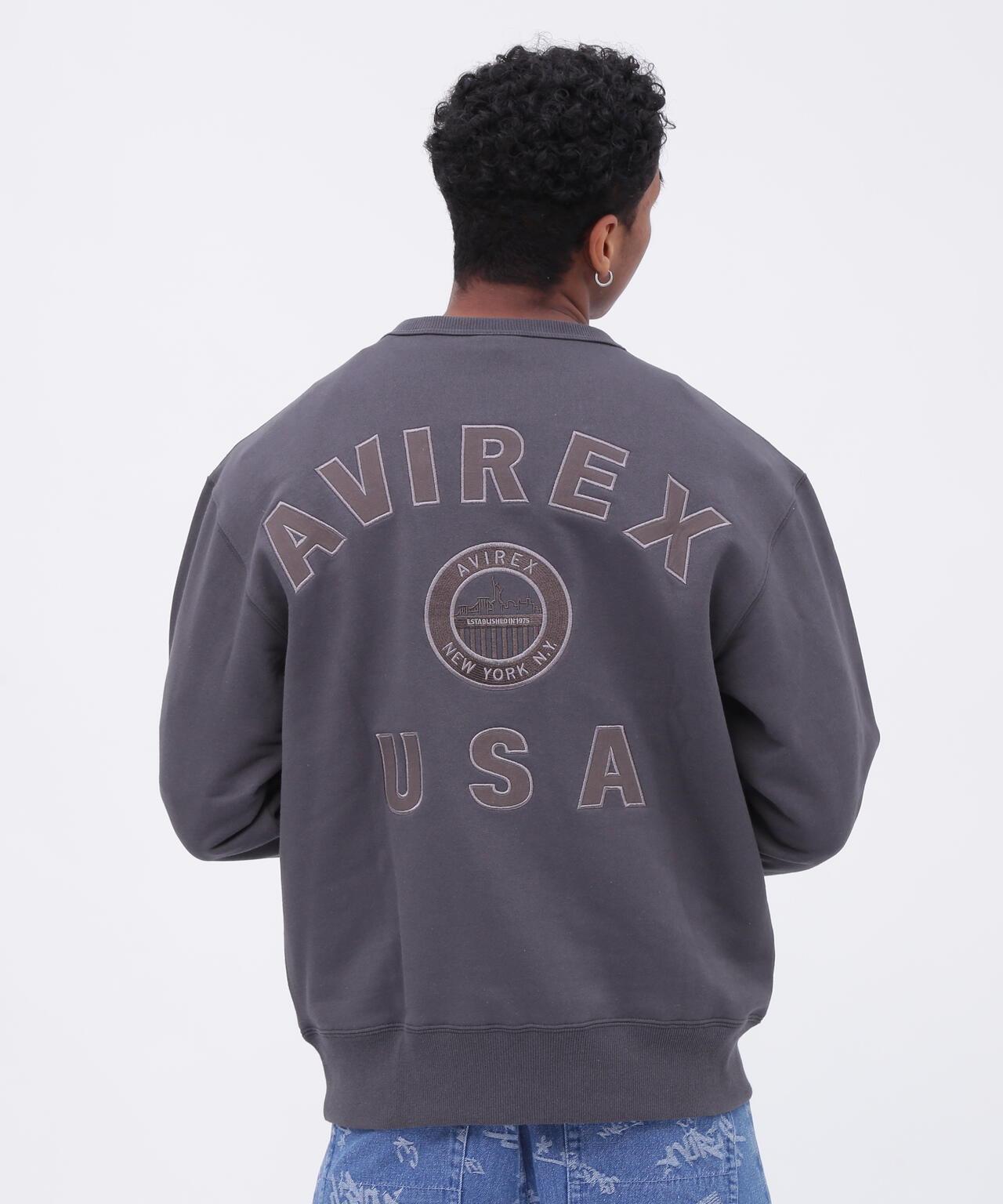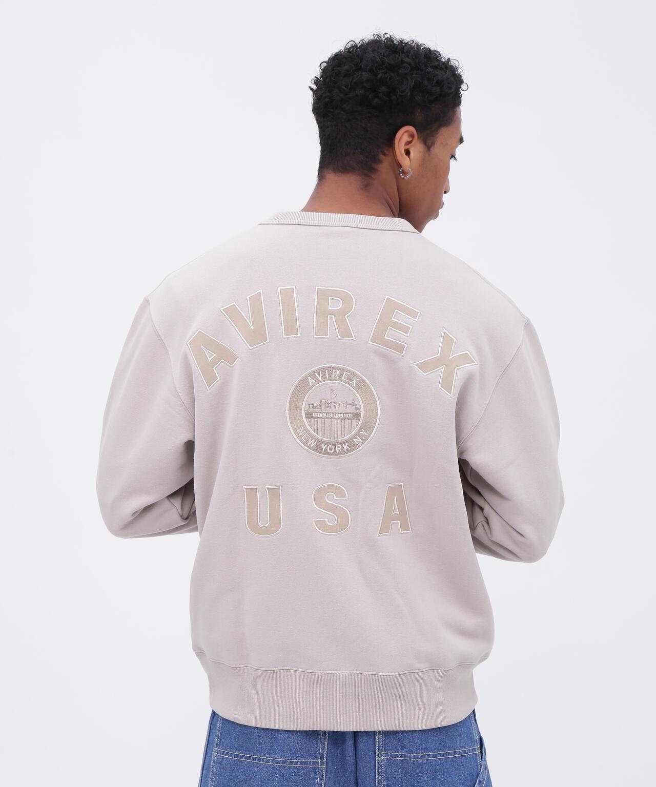 VARSITY LOGO CREWNECK SWEAT NYC<產品詳情> - 標準厚度圓領運動衫,反面採用起絨運動衫面料 - 徽標採用與衣身顏色相近的顏色排列 - 背面的標誌性品牌徽標採用毛氈貼布,營造立體效果。貼布設計靈感源自曼哈頓街頭,有米色、薩克斯風色和木炭色可供選擇,版型適中寬鬆。