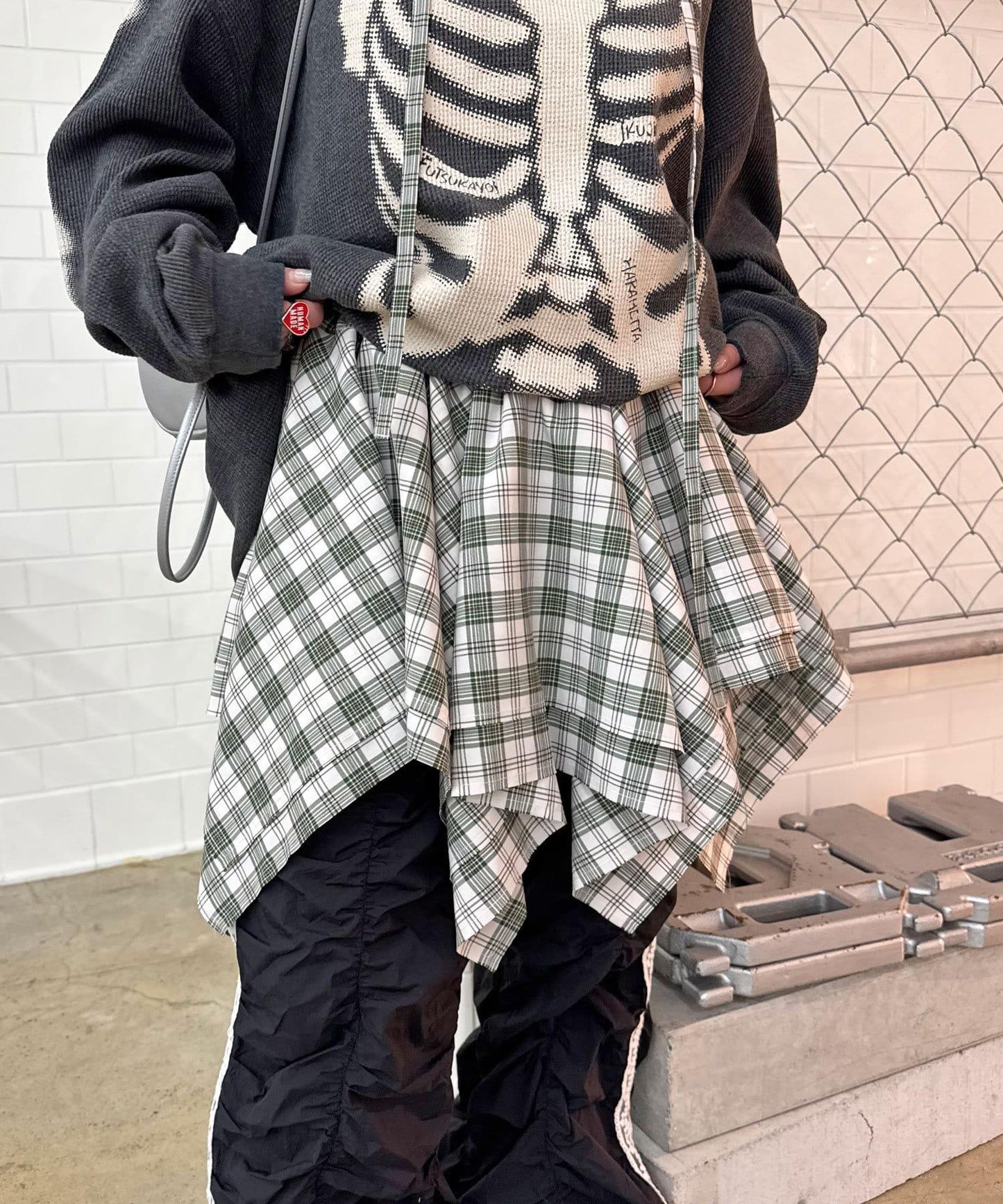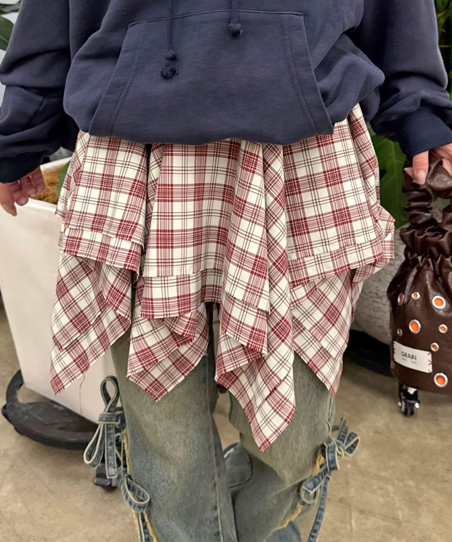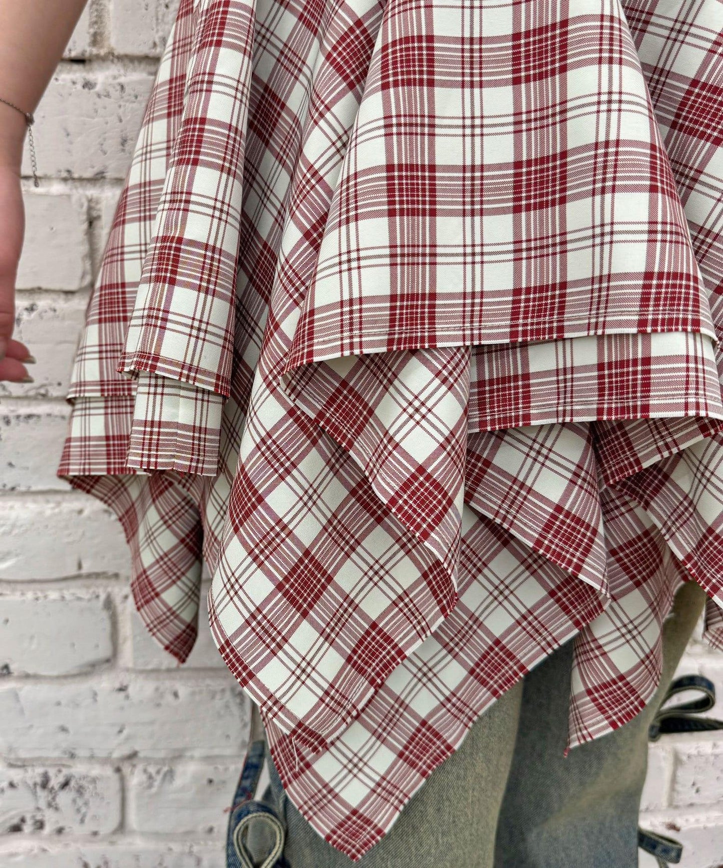 棋盤格圖案和斜裁的irregem設計使其風格休閒而略顯與眾不同。