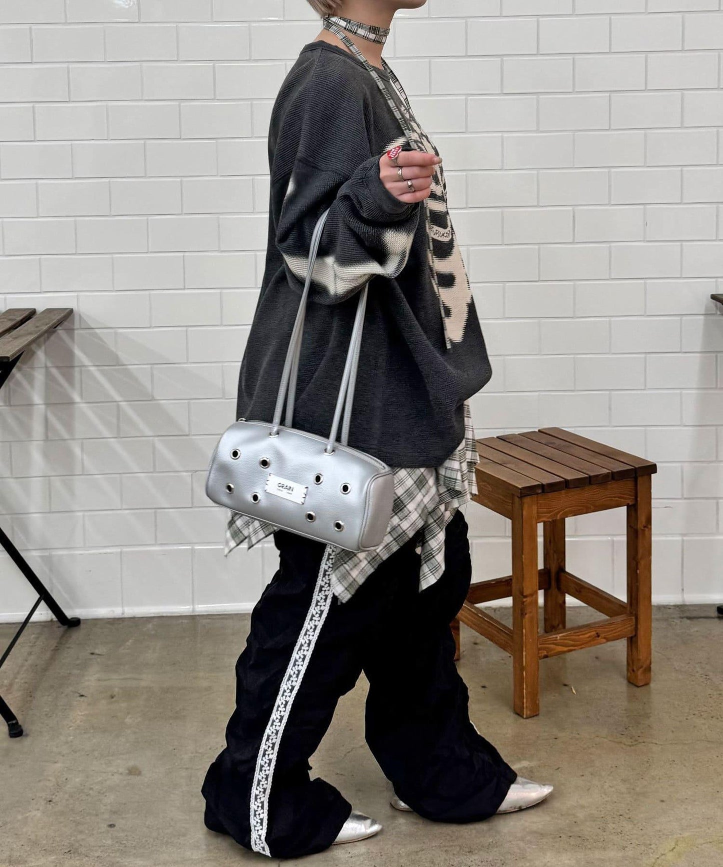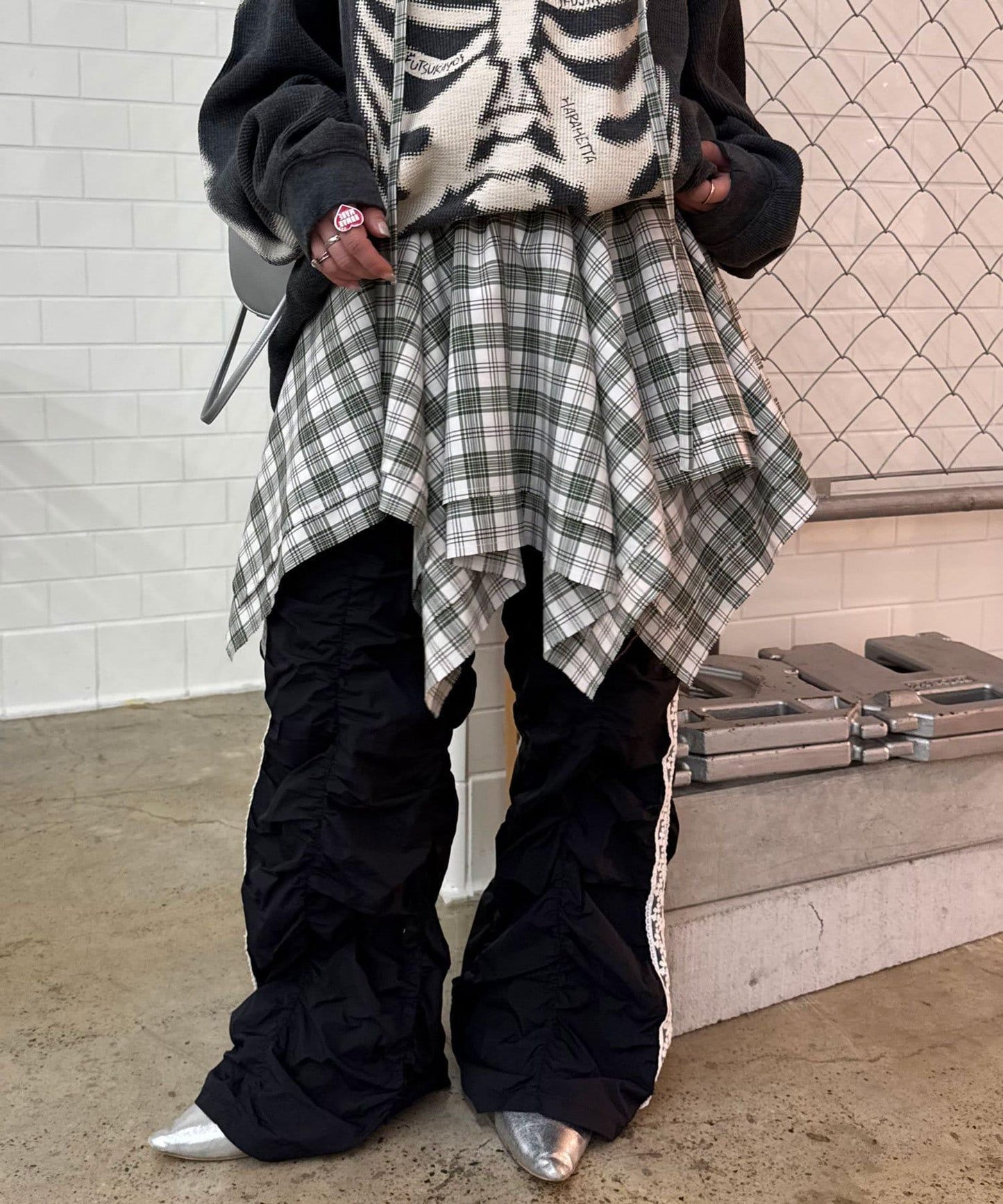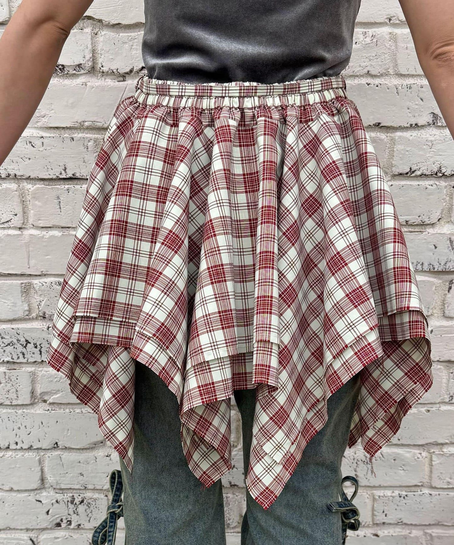 棋盤格圖案和斜裁的irregem設計使其風格休閒而略顯與眾不同。