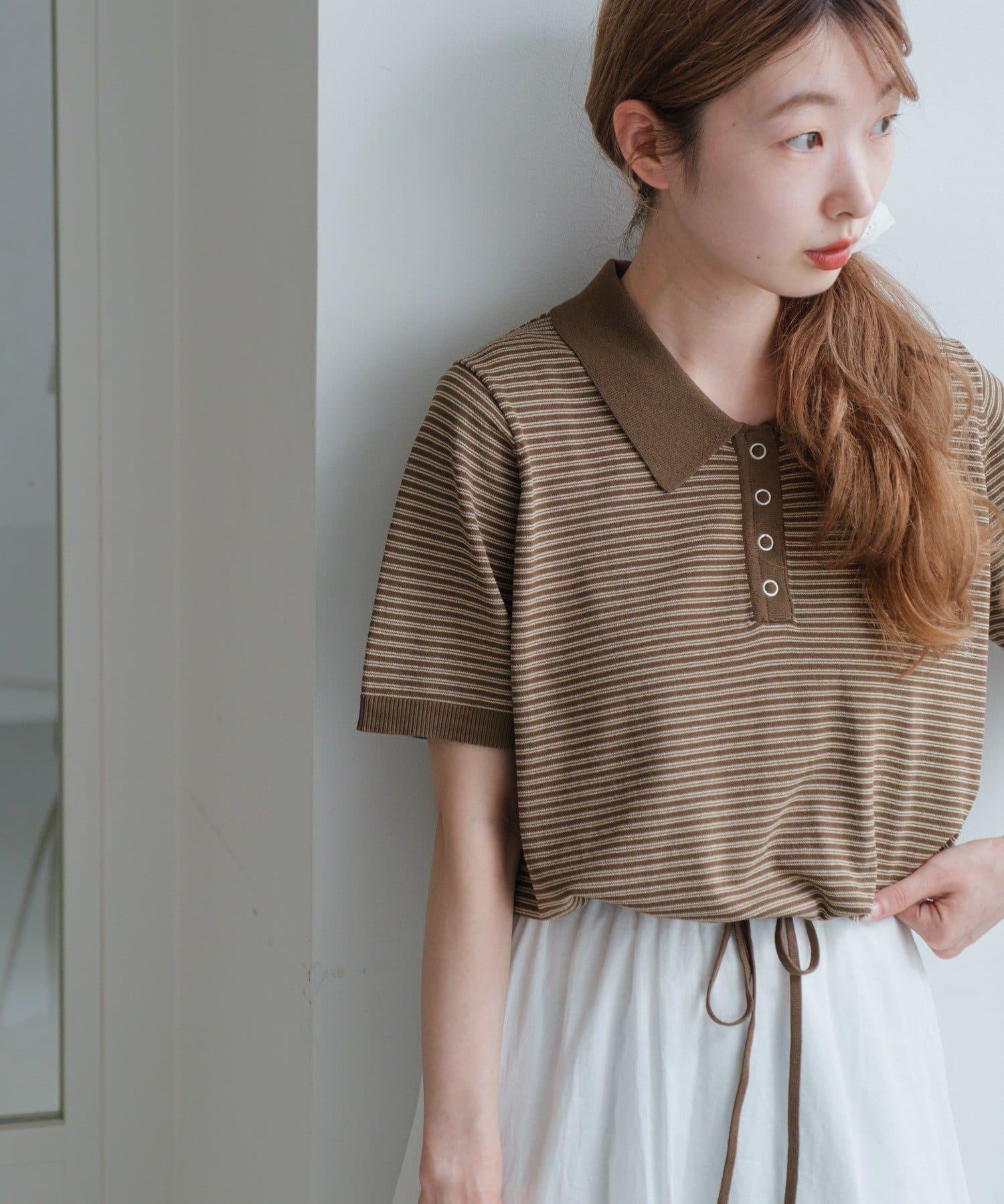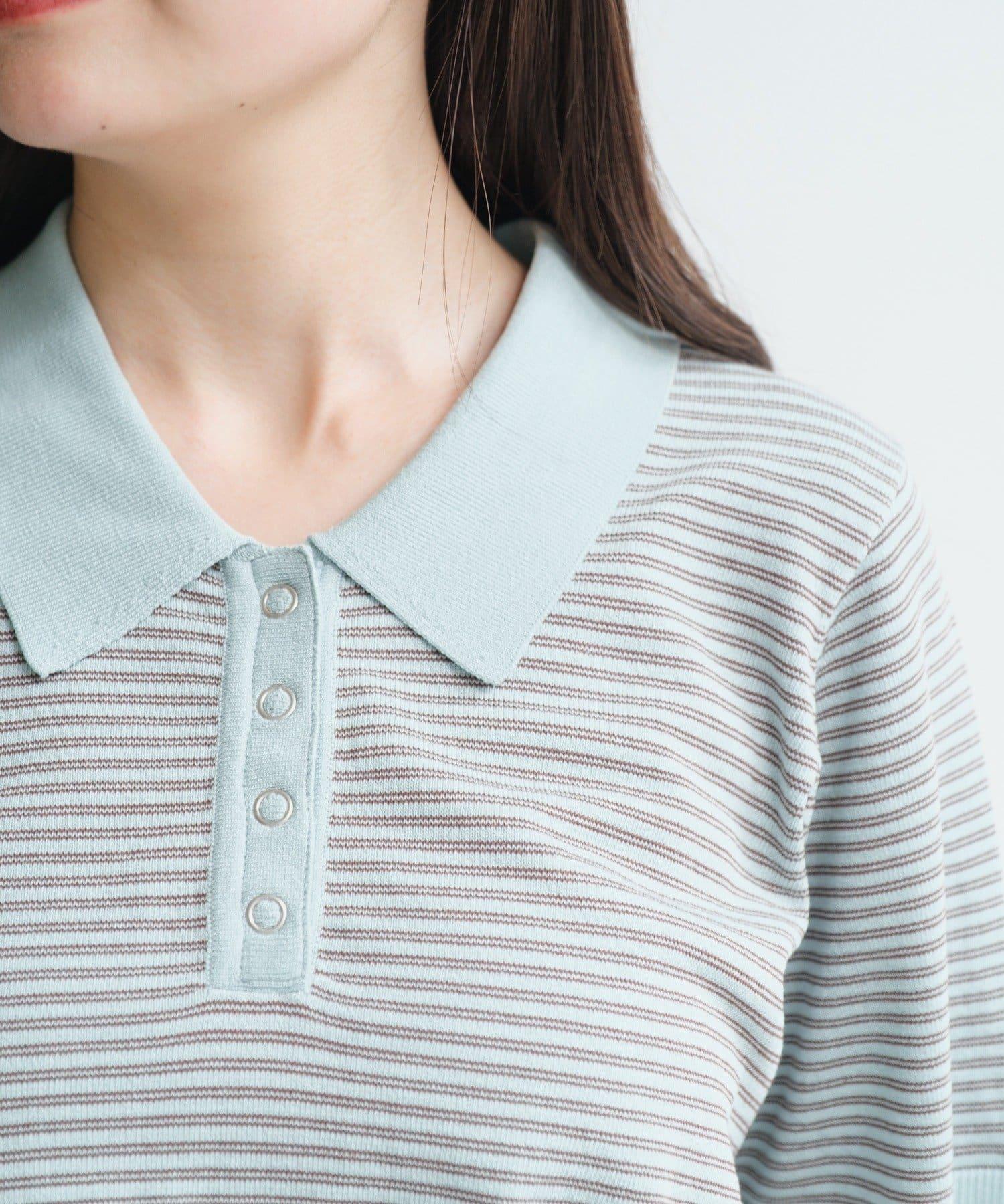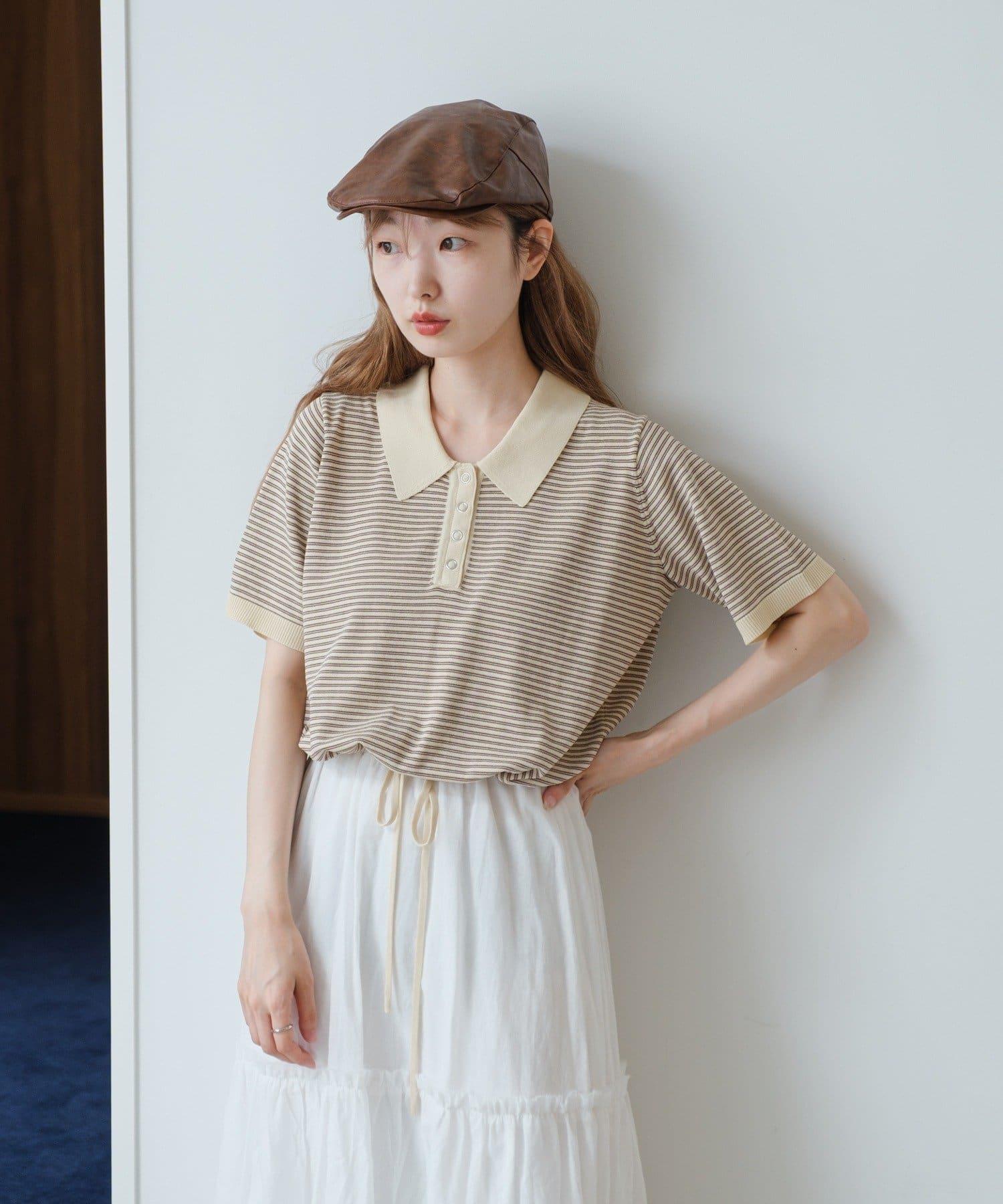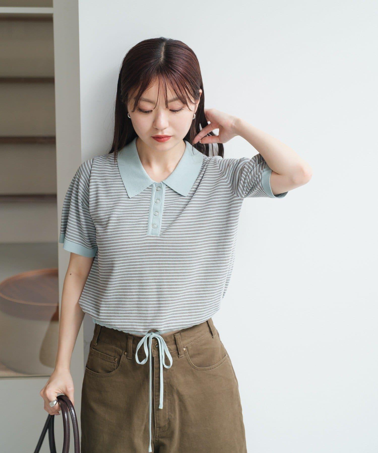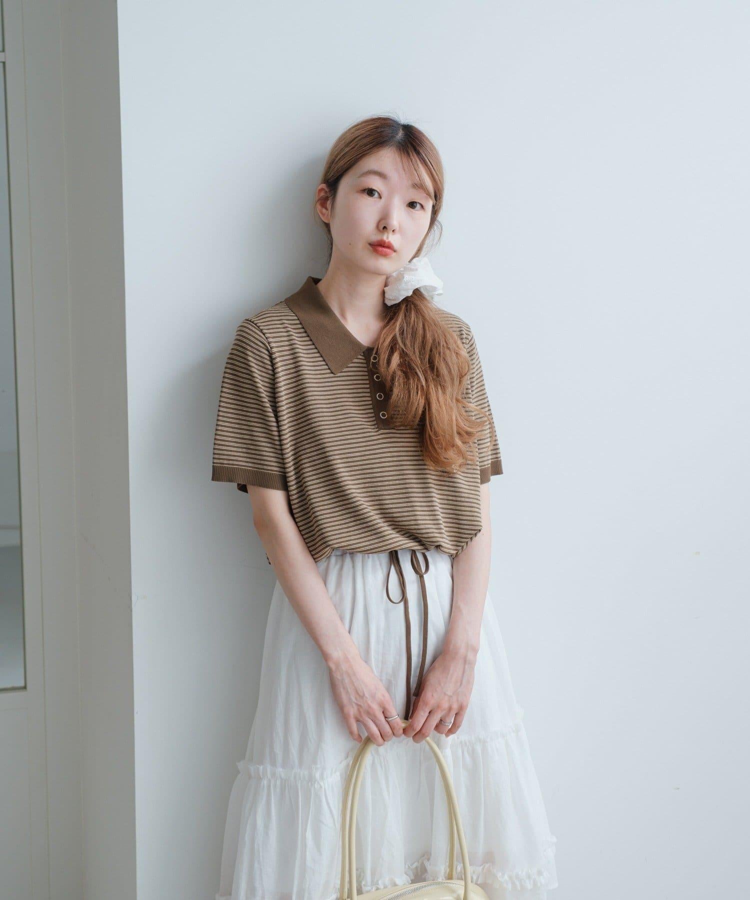 條紋 polo 針織衫,休閒而不失女性魅力。