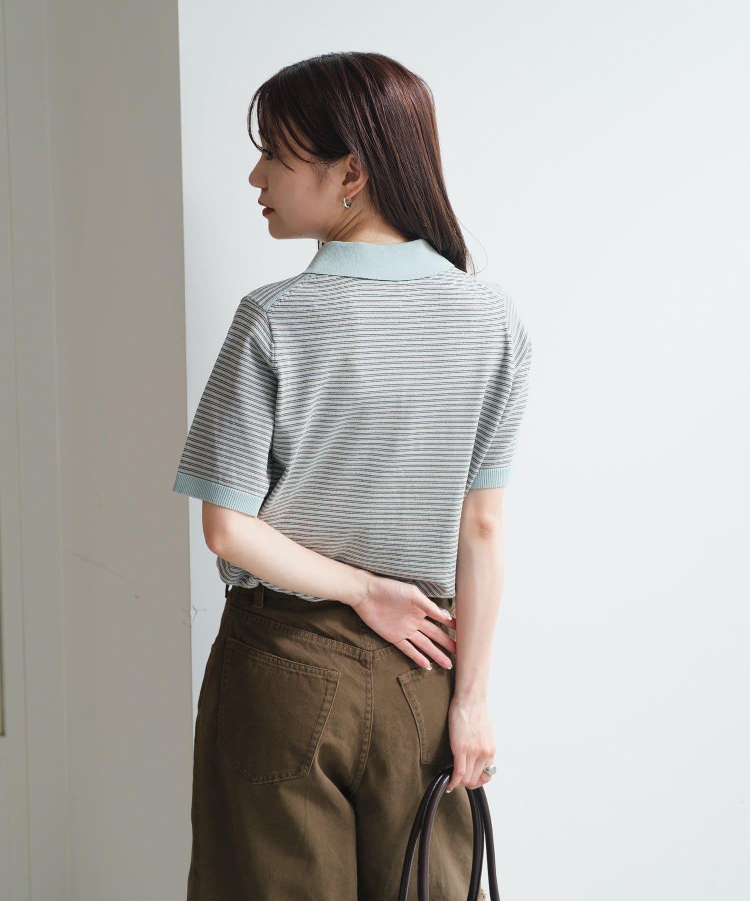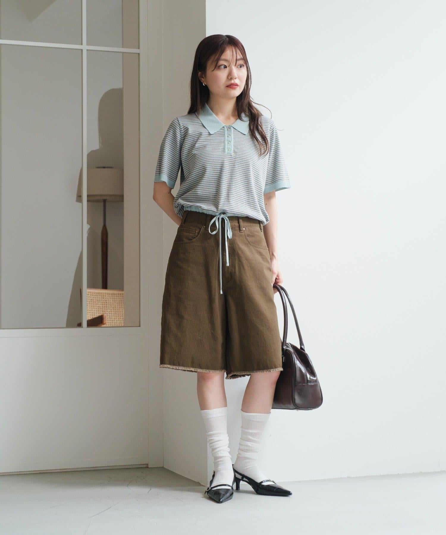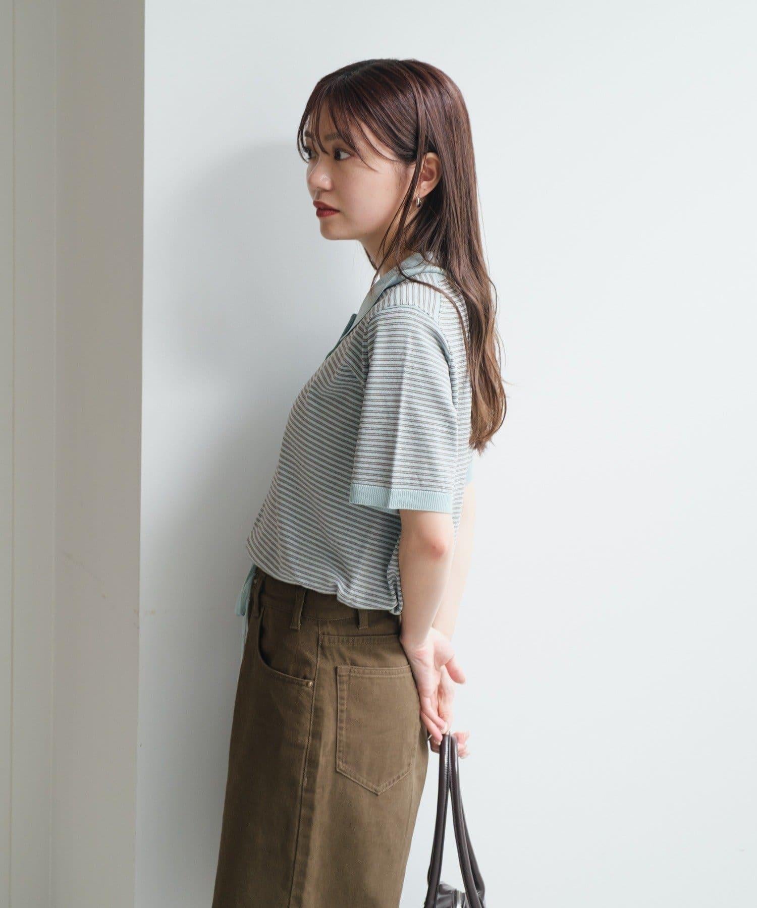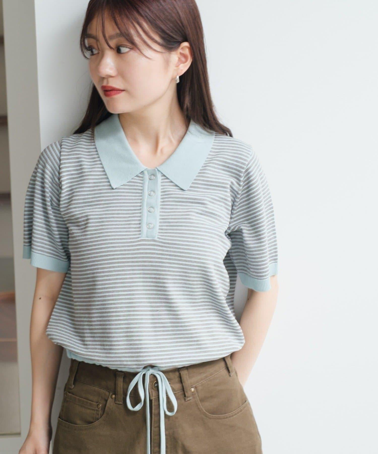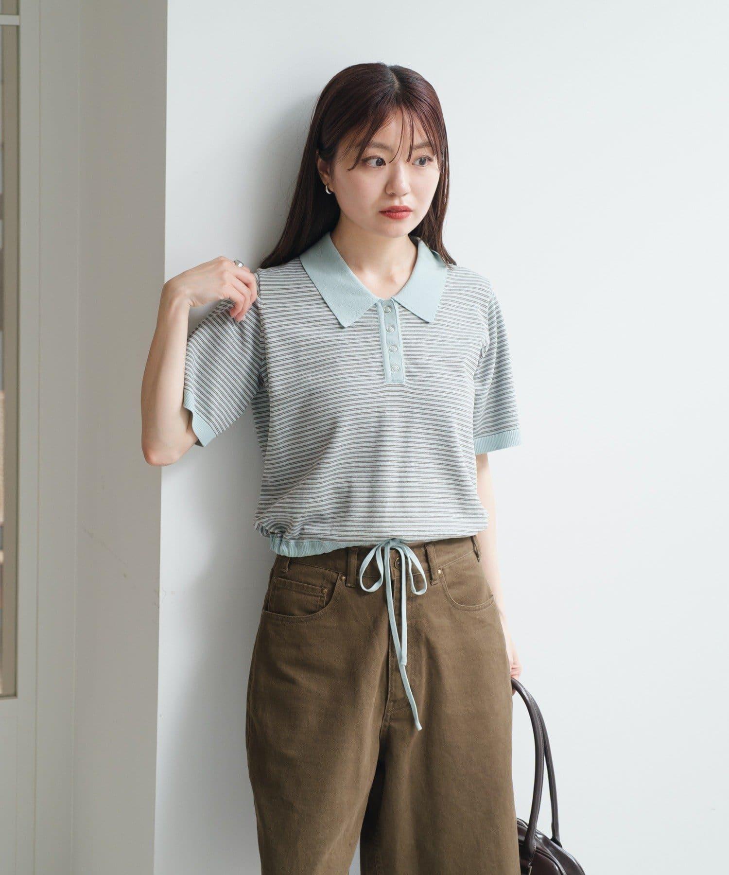 條紋 polo 針織衫,休閒而不失女性魅力。