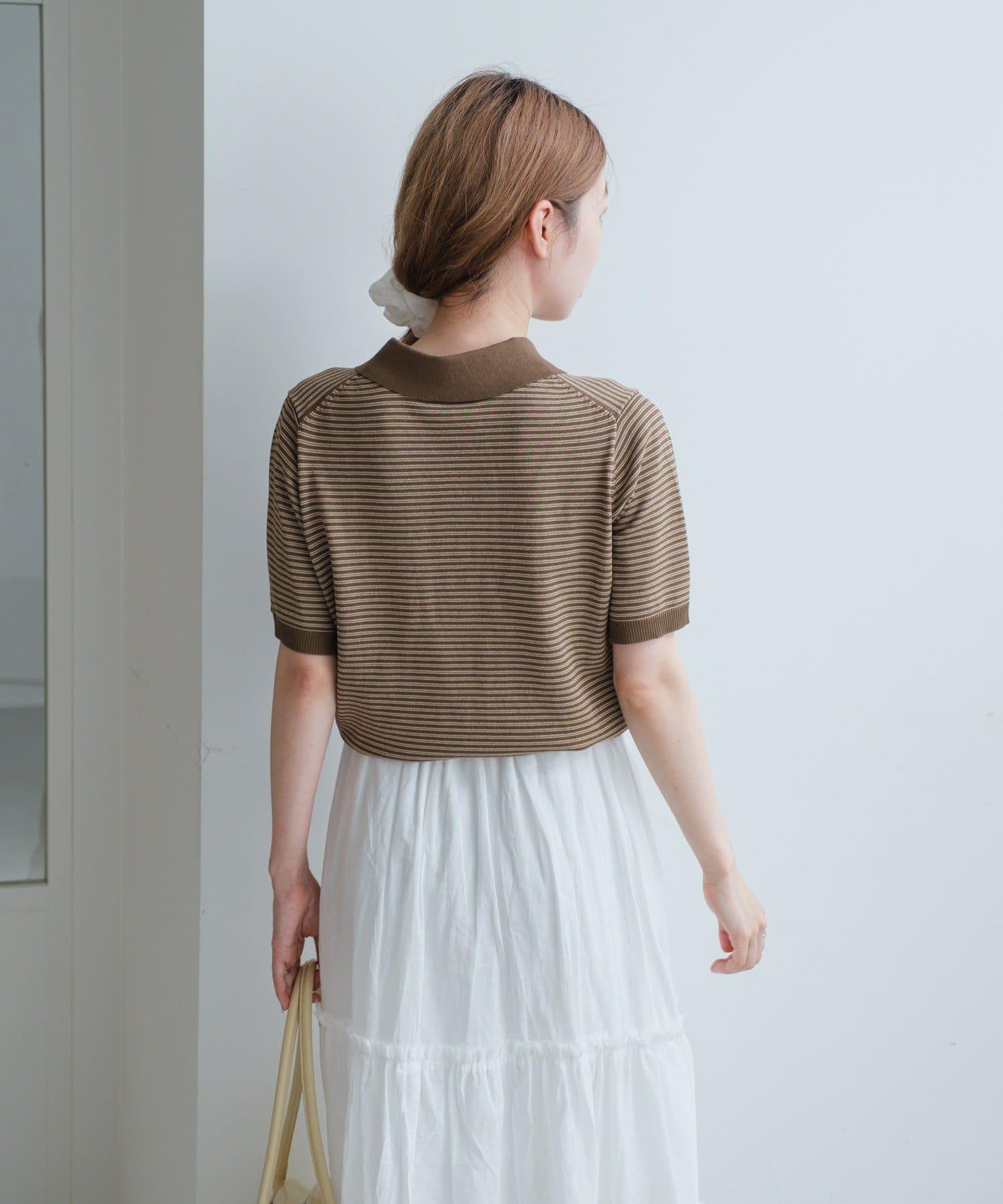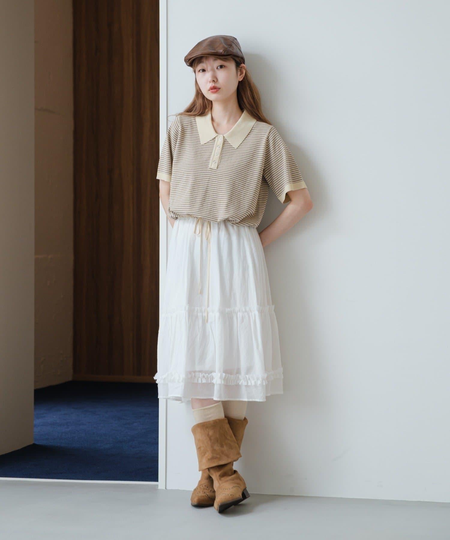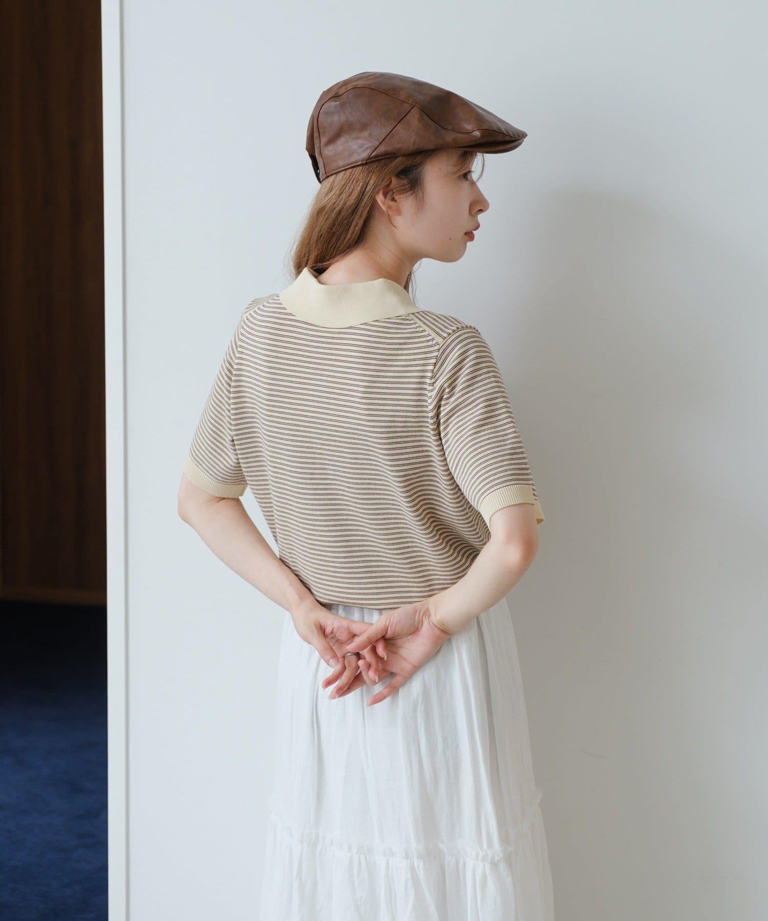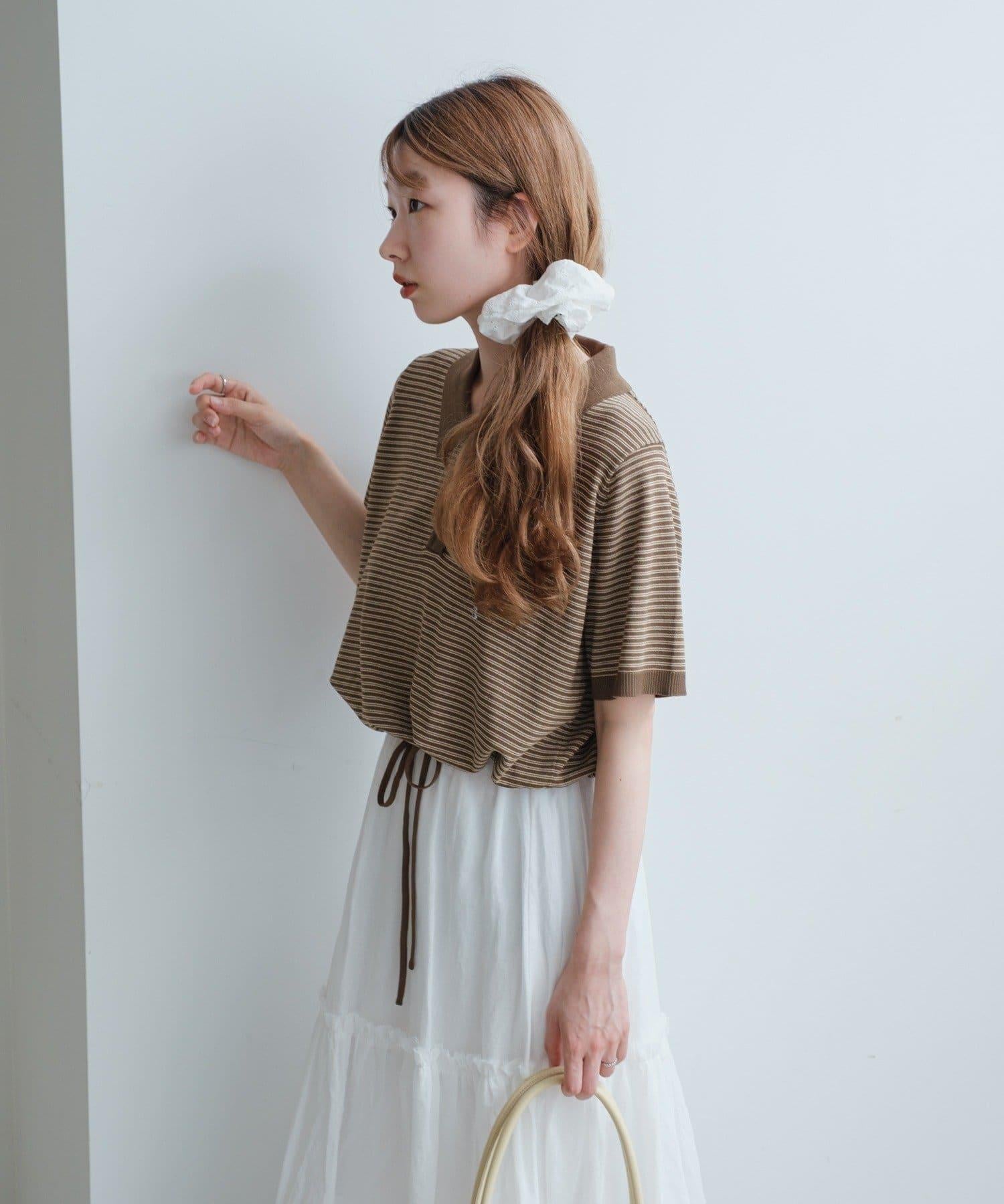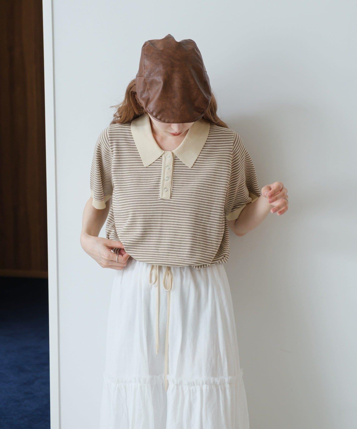 條紋 polo 針織衫,休閒而不失女性魅力。