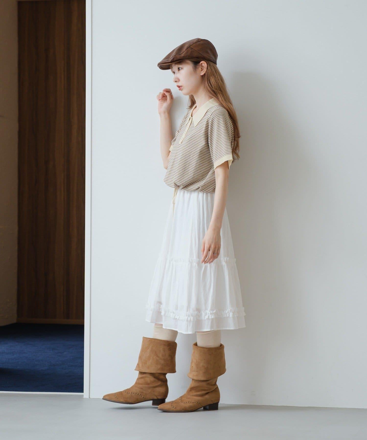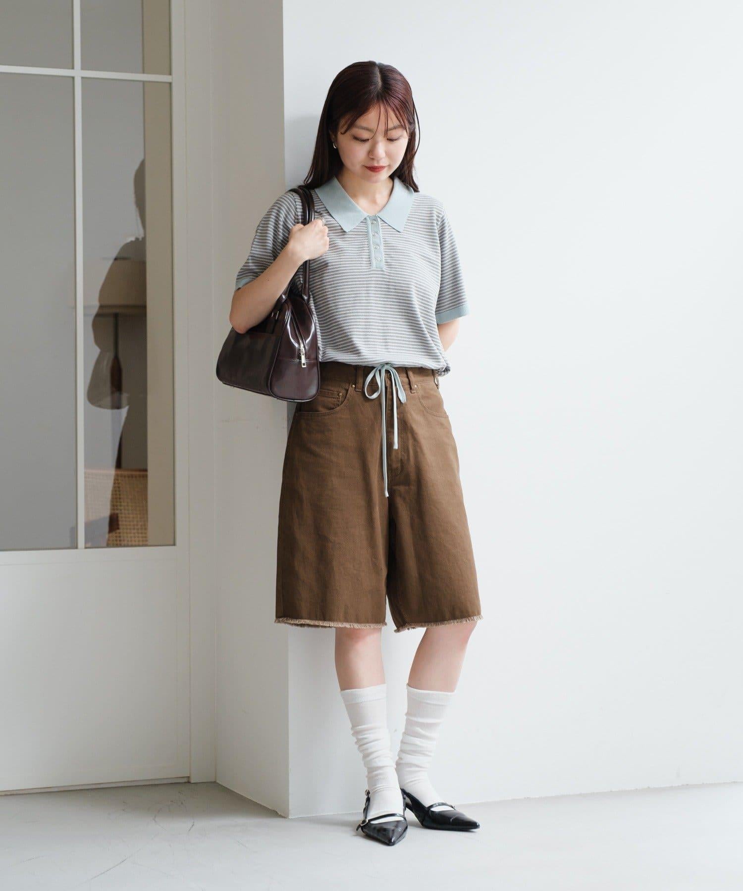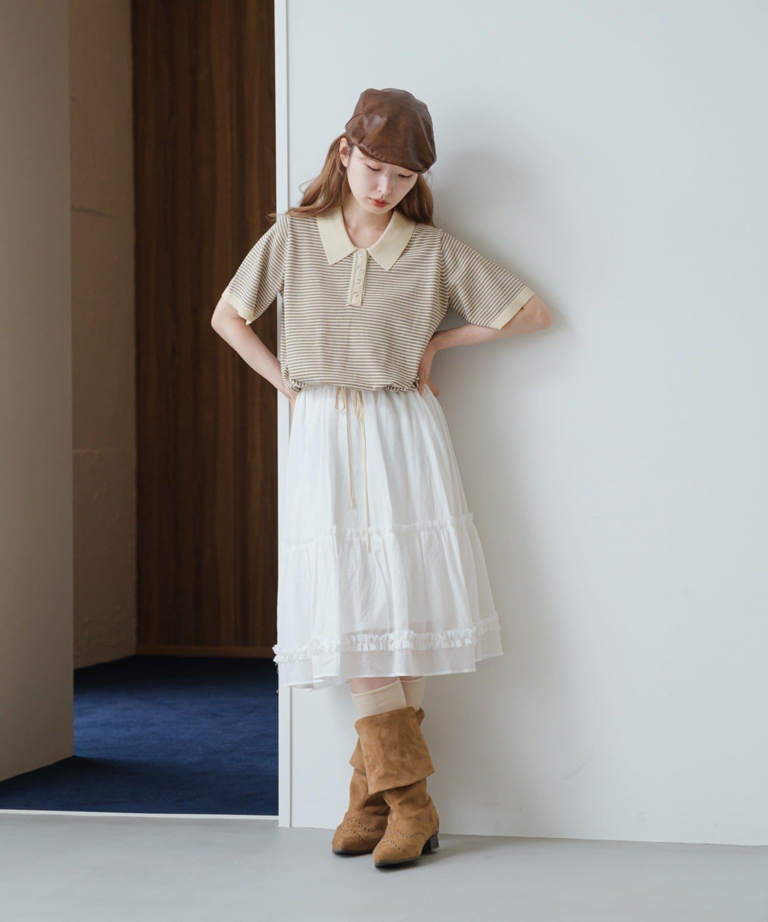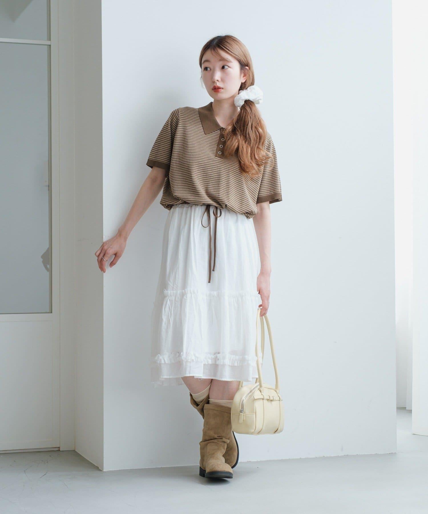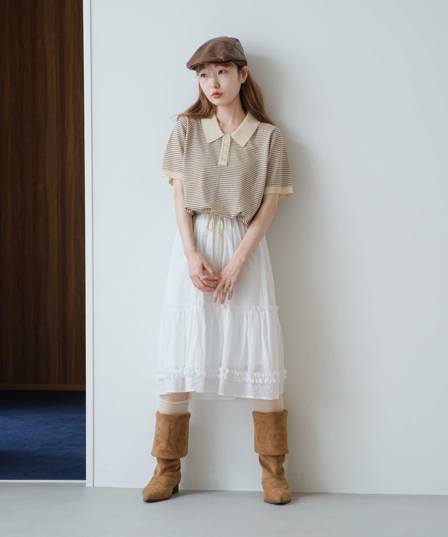 條紋 polo 針織衫,休閒而不失女性魅力。