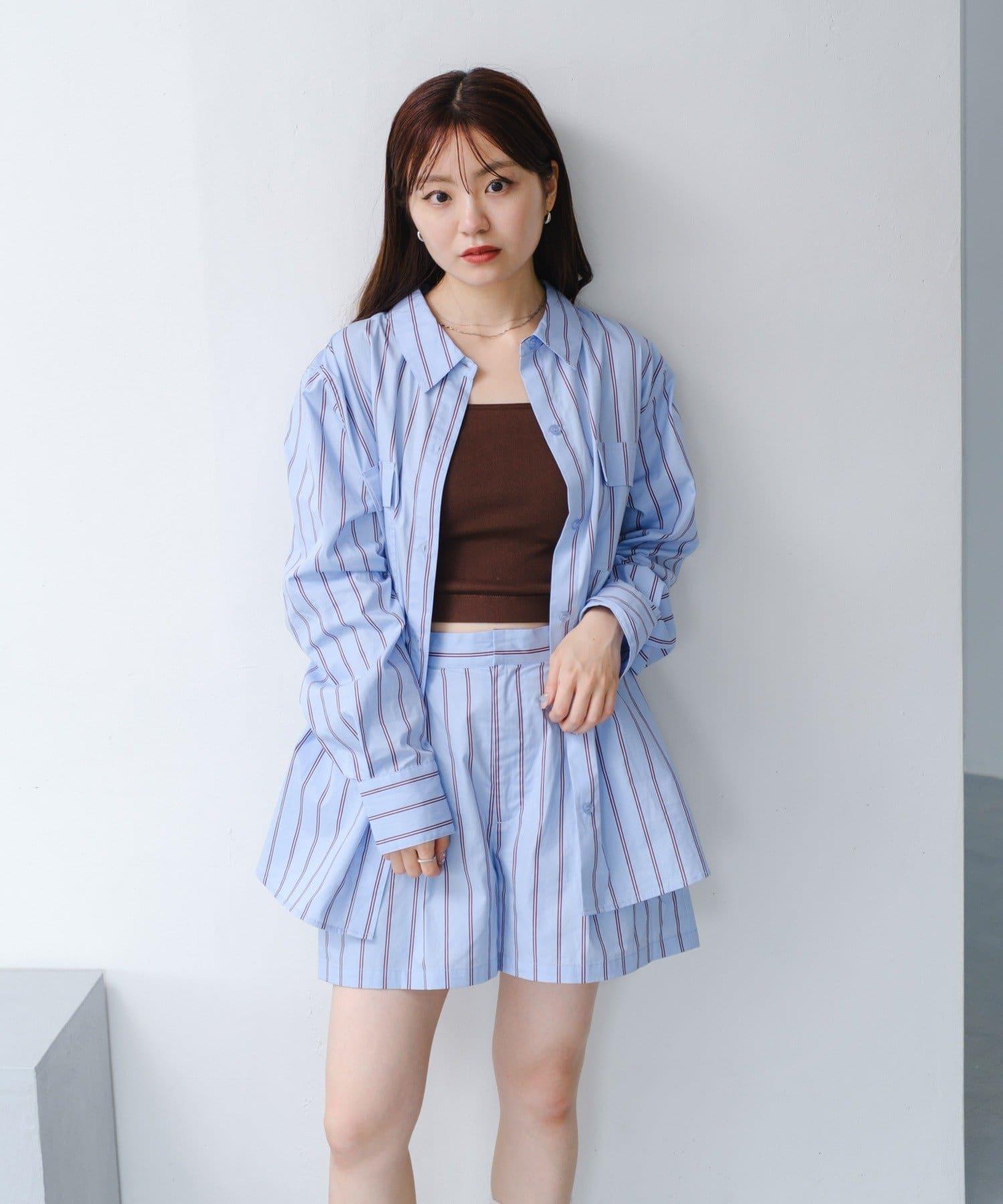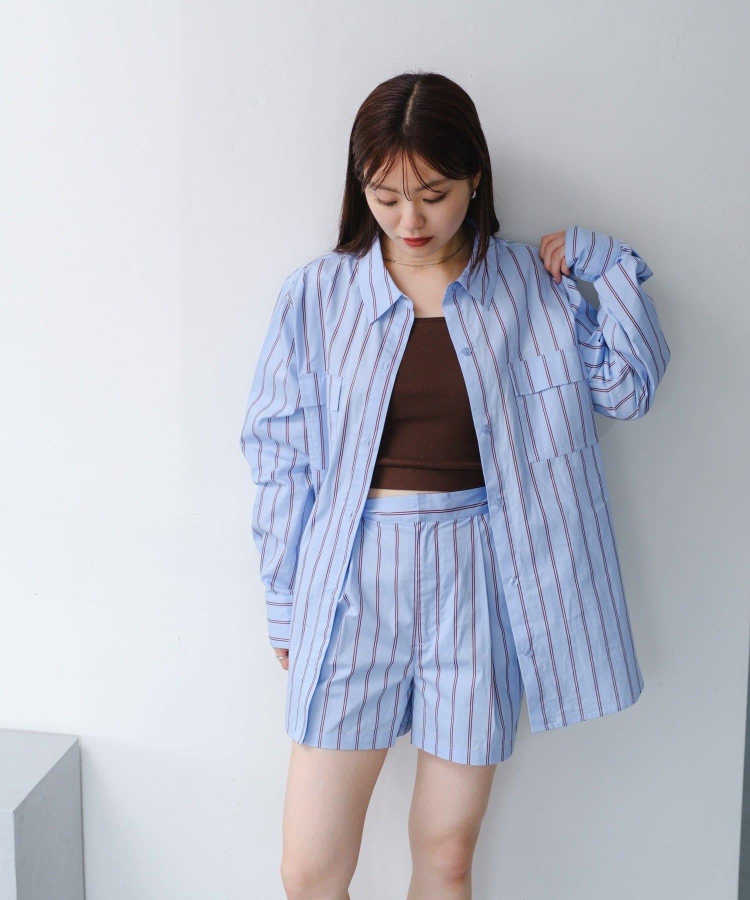 這款短褲採用條紋圖案,給人耳目一新的感覺。