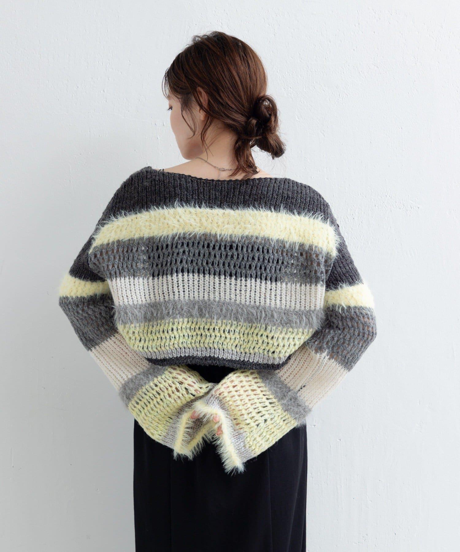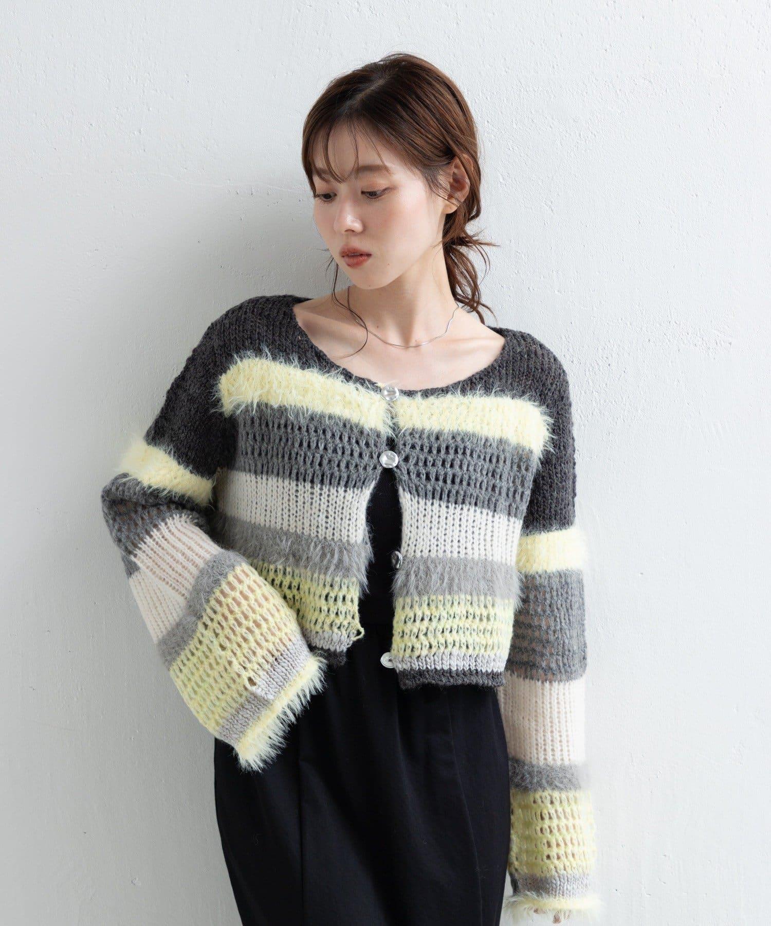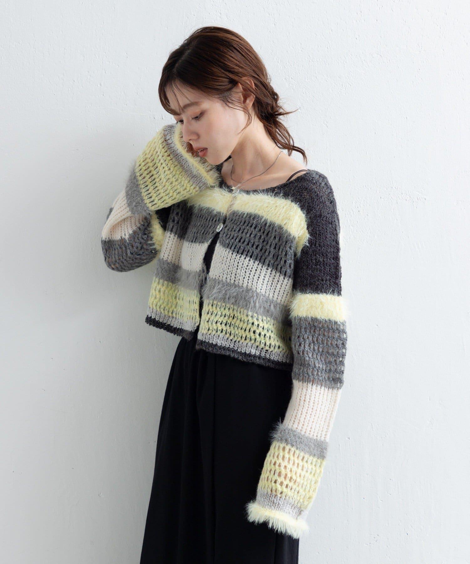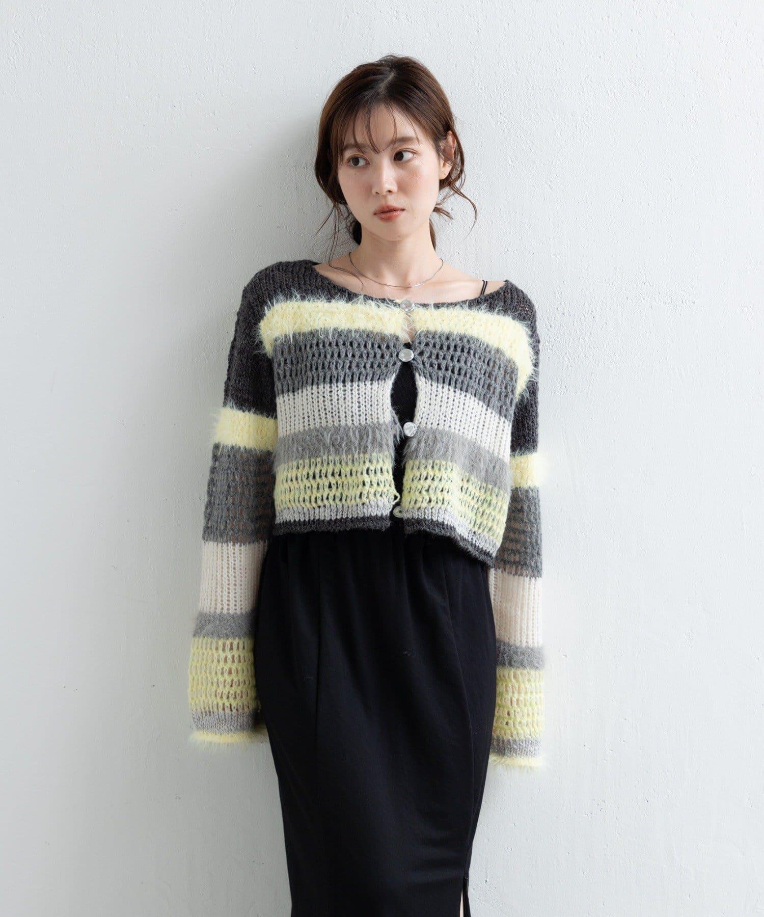 條紋鏤空針織開衫,廓形柔軟,輕盈通透。