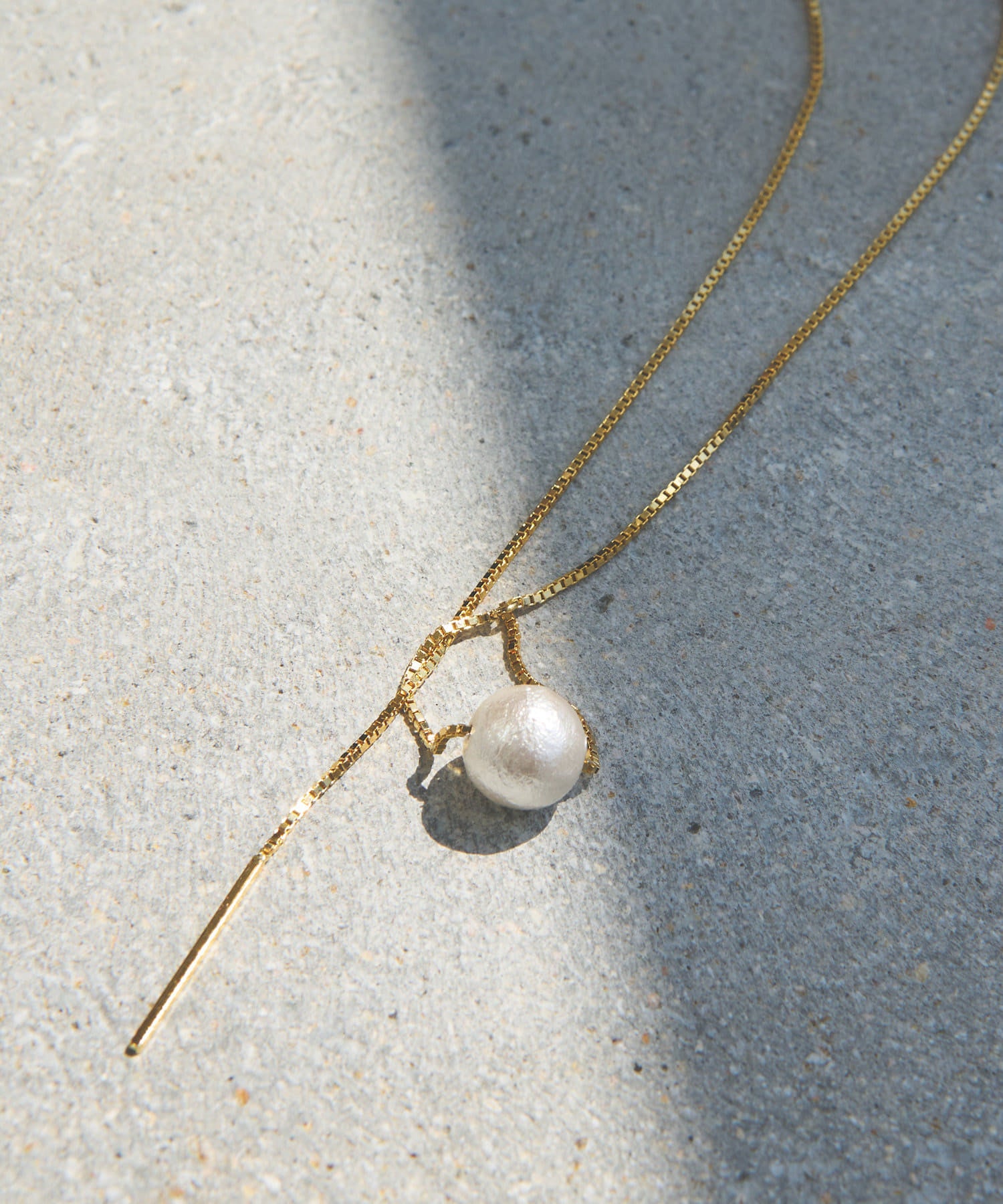 這條項鍊有一條精緻、閃亮的鏈條和棉質珍珠,使其具有優雅的吸引力。
