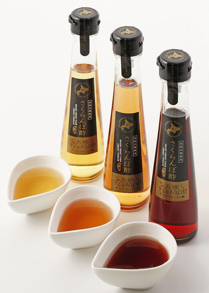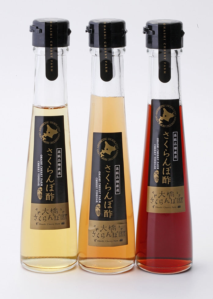 大橋櫻桃園是北海道👍個在全國果樹競賽中獲得農林水產大臣獎的農場,一套三款櫻桃醋。這套櫻桃醋由奢華的'南洋'、'加山西木'和'高峰'櫻桃製成,這些櫻桃甚至比被稱為高端櫻桃的佐藤西木更貴。
