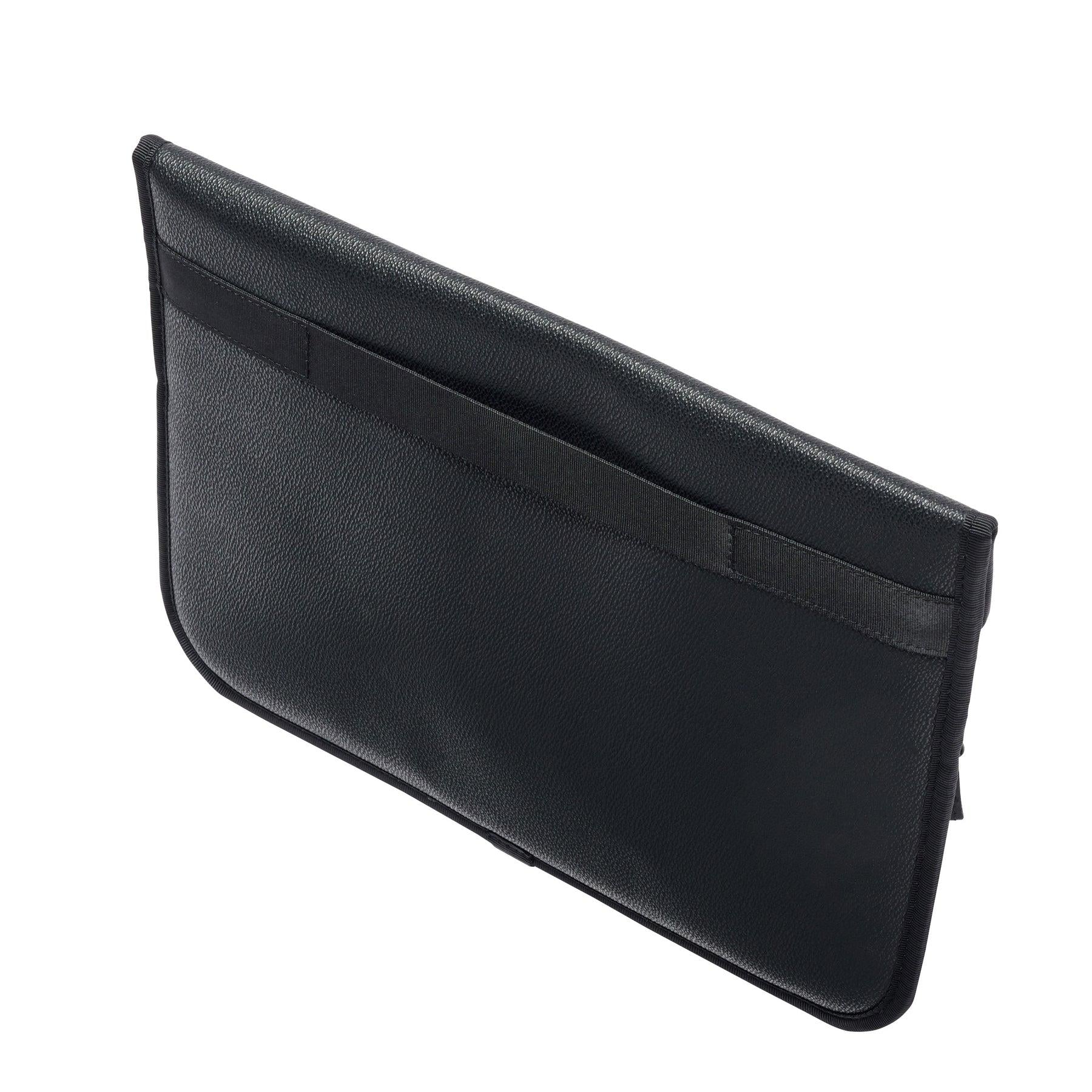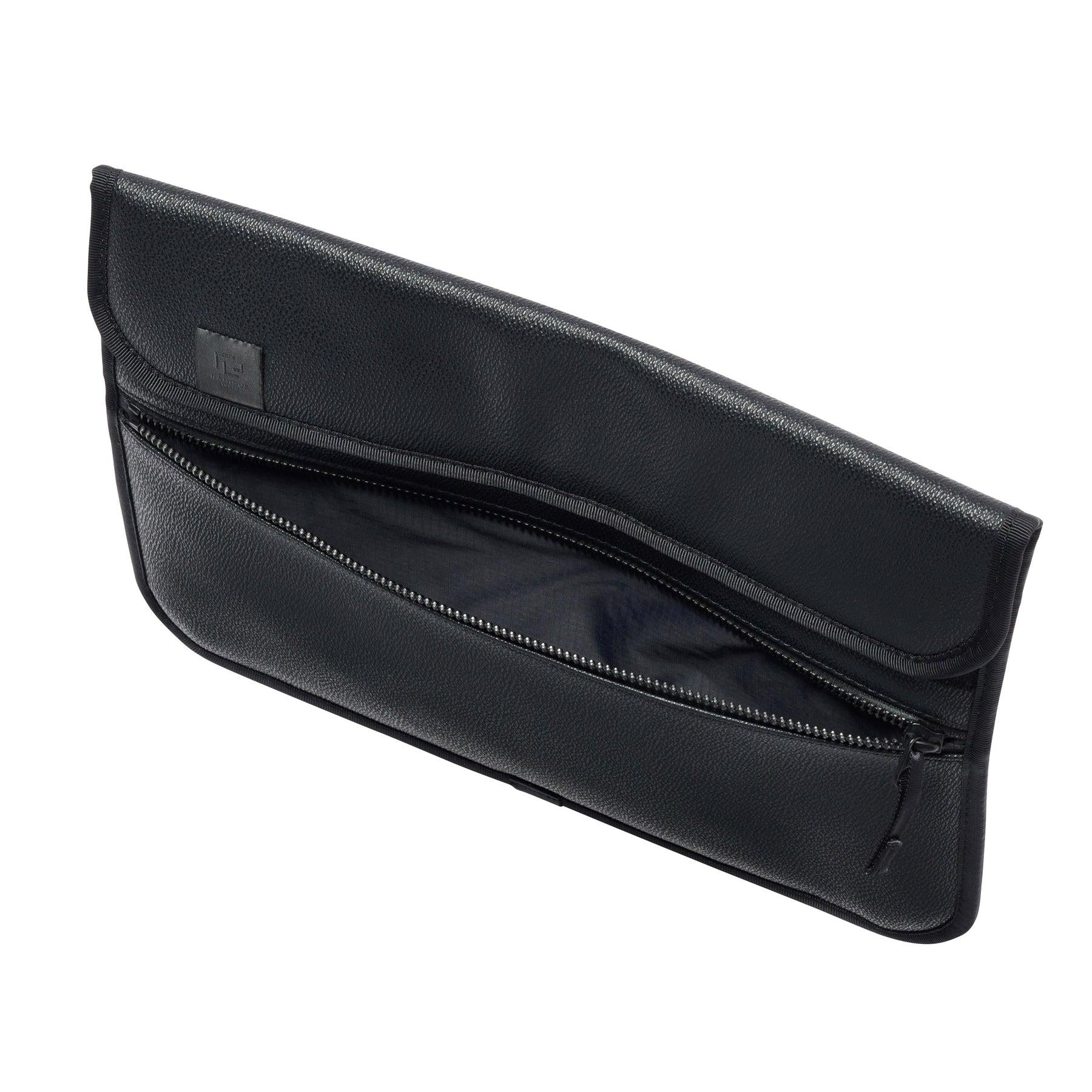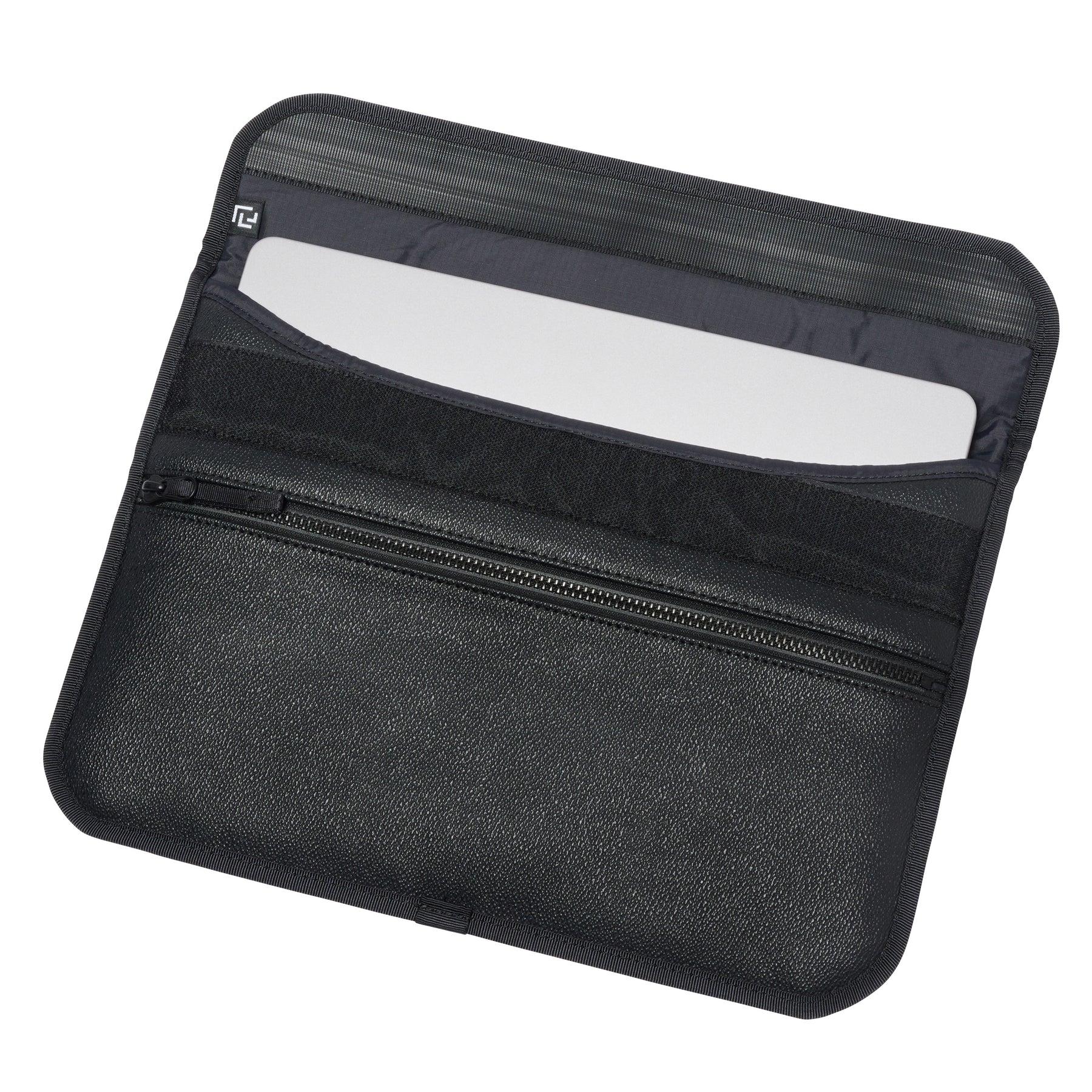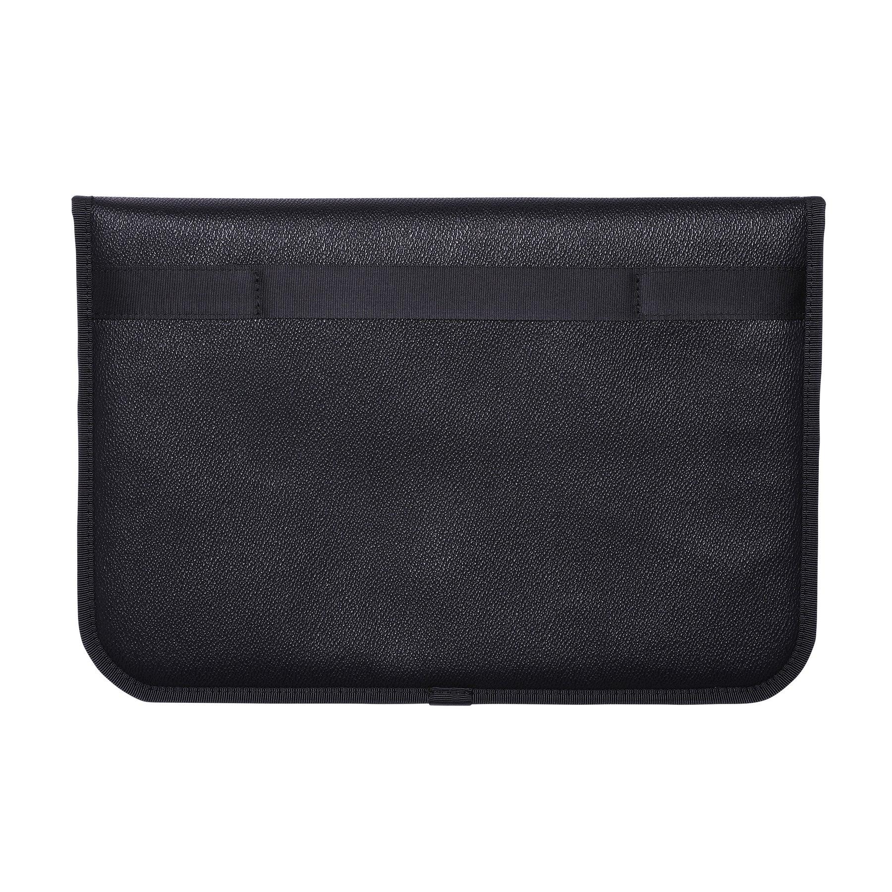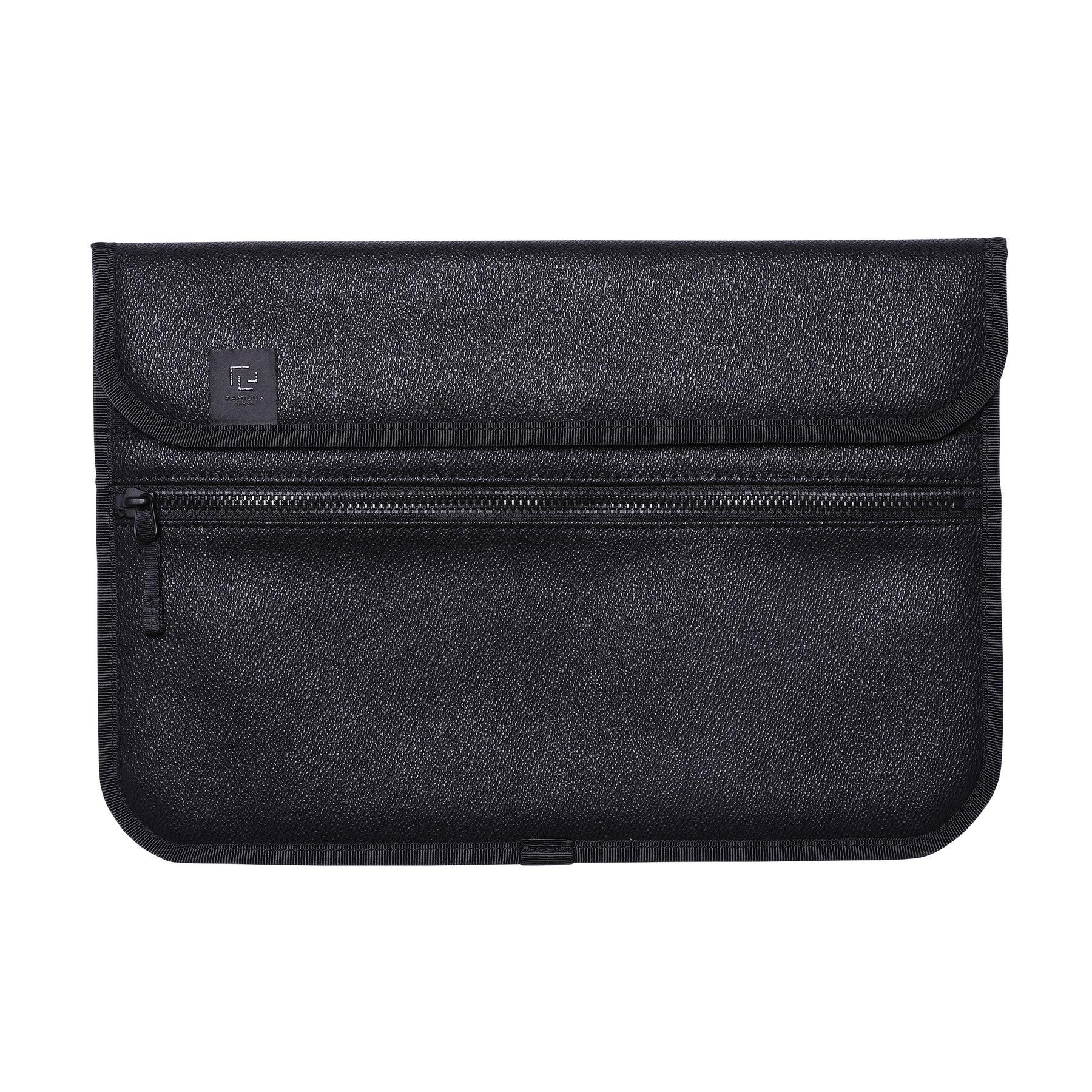 魔術貼封口的主口袋,可放置👍 13 英寸的筆記本電腦。前部配件口袋可放置電池適配器、電纜等。背面有提手環。包身由 PVC 面料製成,表面採用粒麵皮革壓花處理。該系列雖然外觀奢華,但重量輕,易於攜帶。