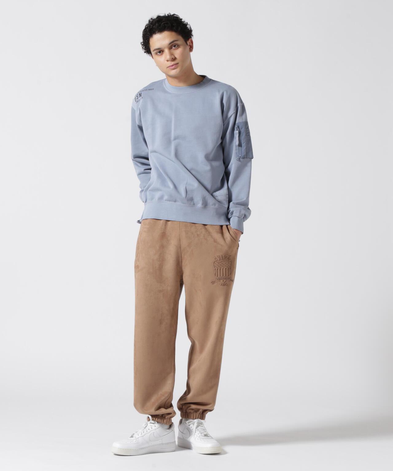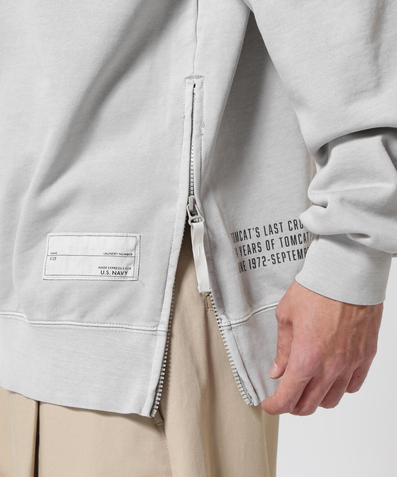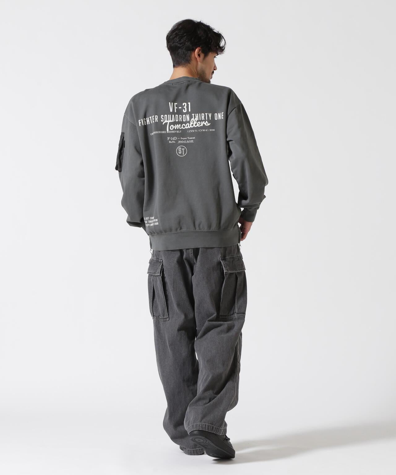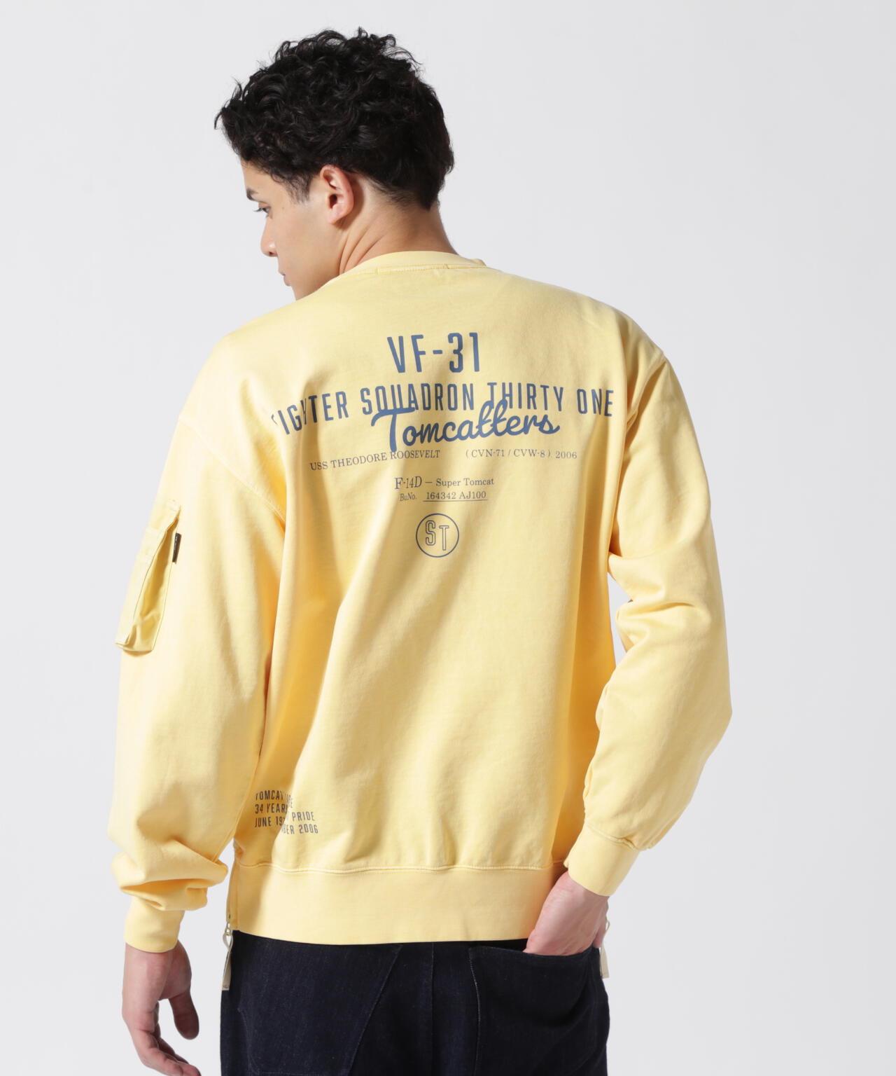 POCKET SWEAT(口袋運動衫) 產品詳情 - 採用獨特色素染色法處理的平領運動衫 - 左袖軍裝口袋和左右下襬側扣具特色 - 通過開合扣可改變輪廓 - 兼具透氣功能的設計 - VF-31 "TOMCATTERS "圖案印花 - 面料採用手感舒適的絲質襯裡。設計和 VF-31 "TOMCATTERS "印花圖案兼具透氣功能,面料採用質感良好的絲質襯裡毛髮,沉穩的軍旅風味飾面,勻稱的廓形 [AVIREX / AVIREX] 1975 年。它作為美國空軍的承包商而成立,並通過提供飛行夾克而大大提高了知名度。軍事淵源。