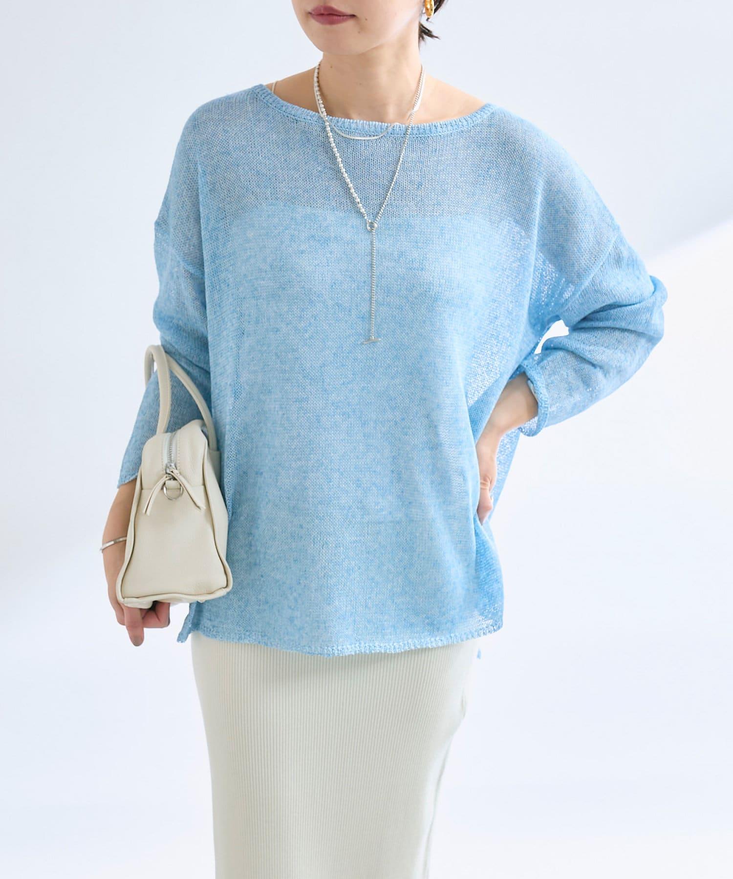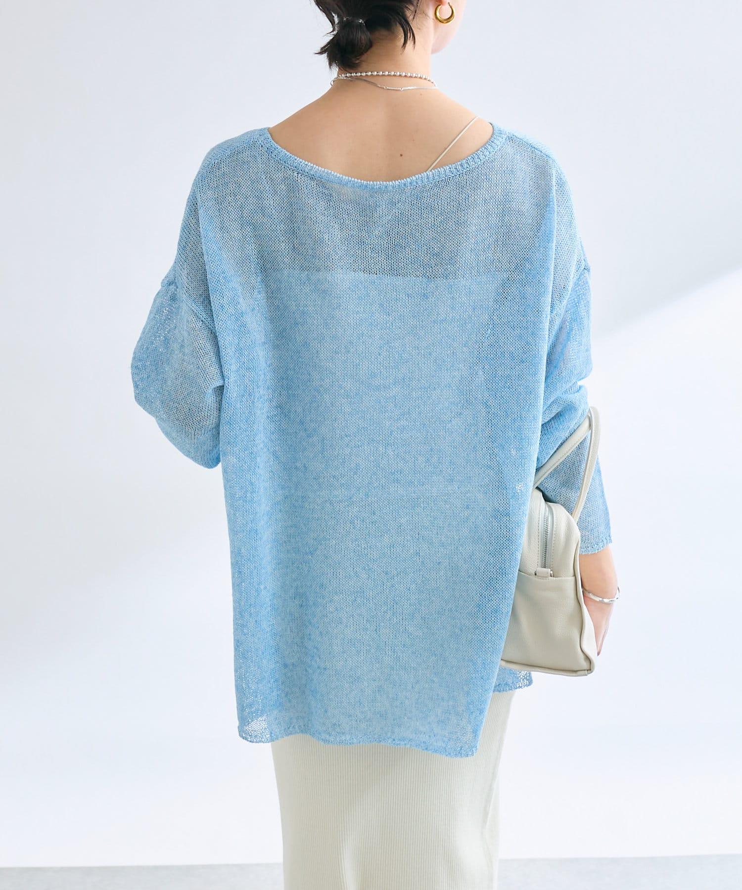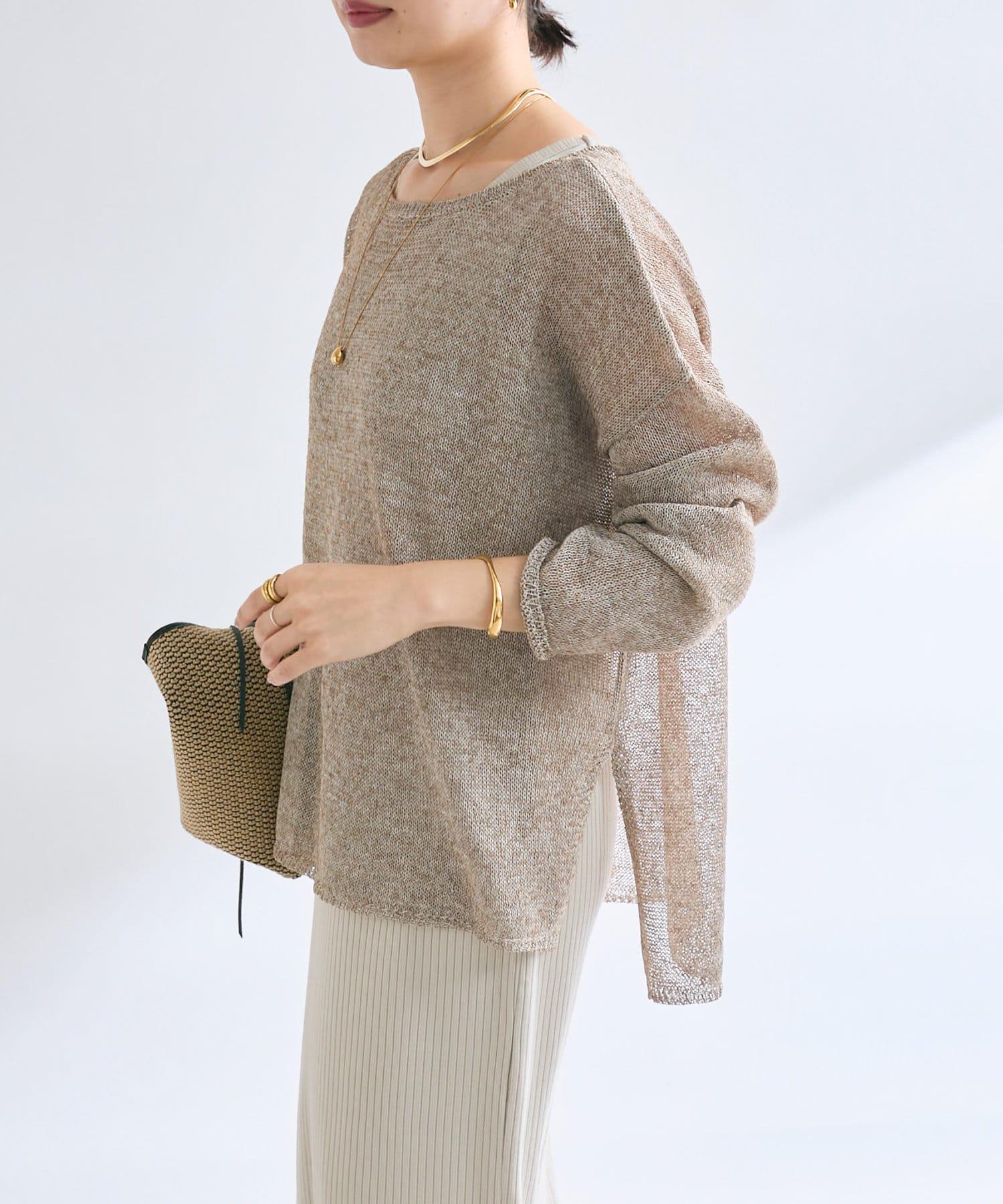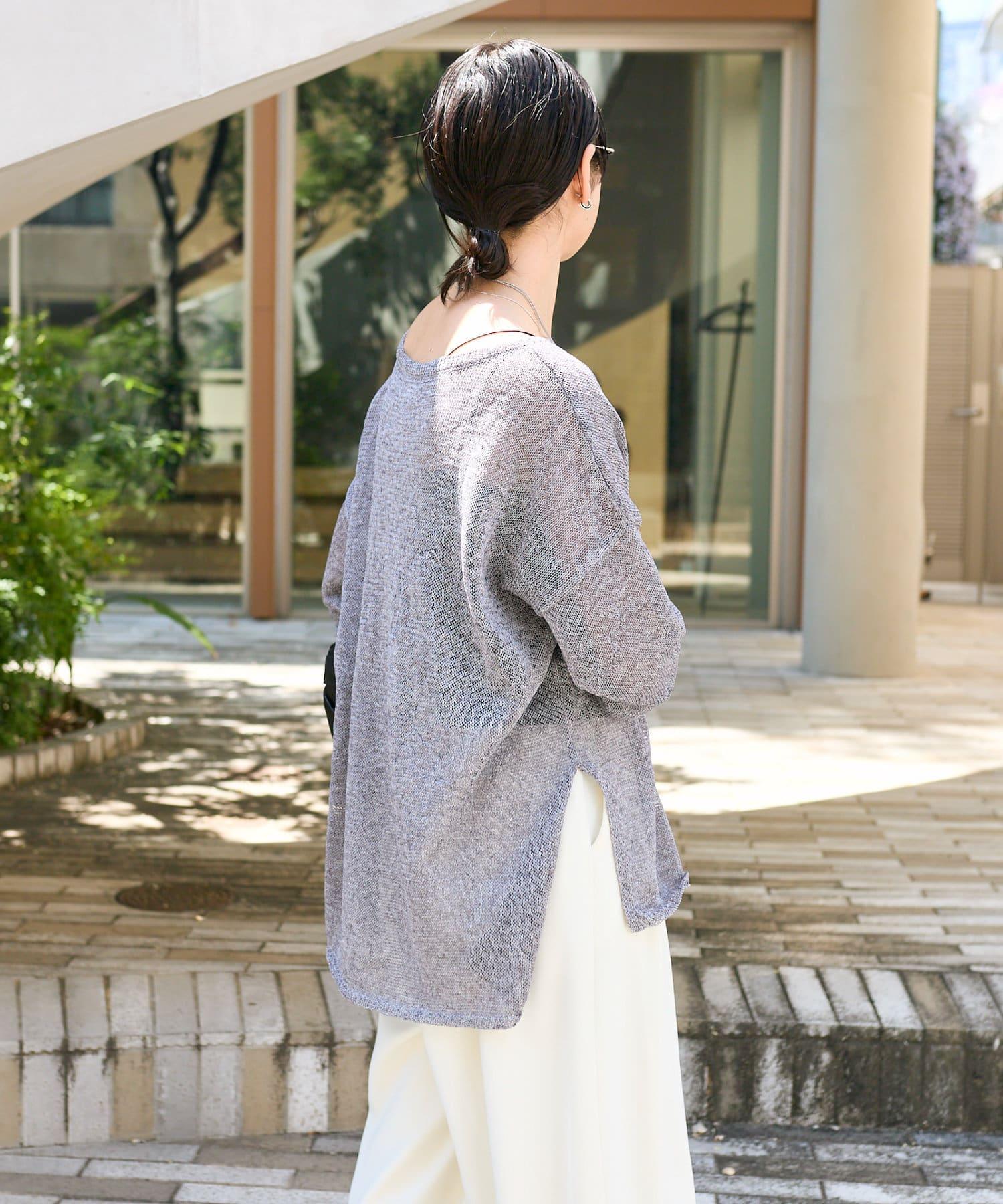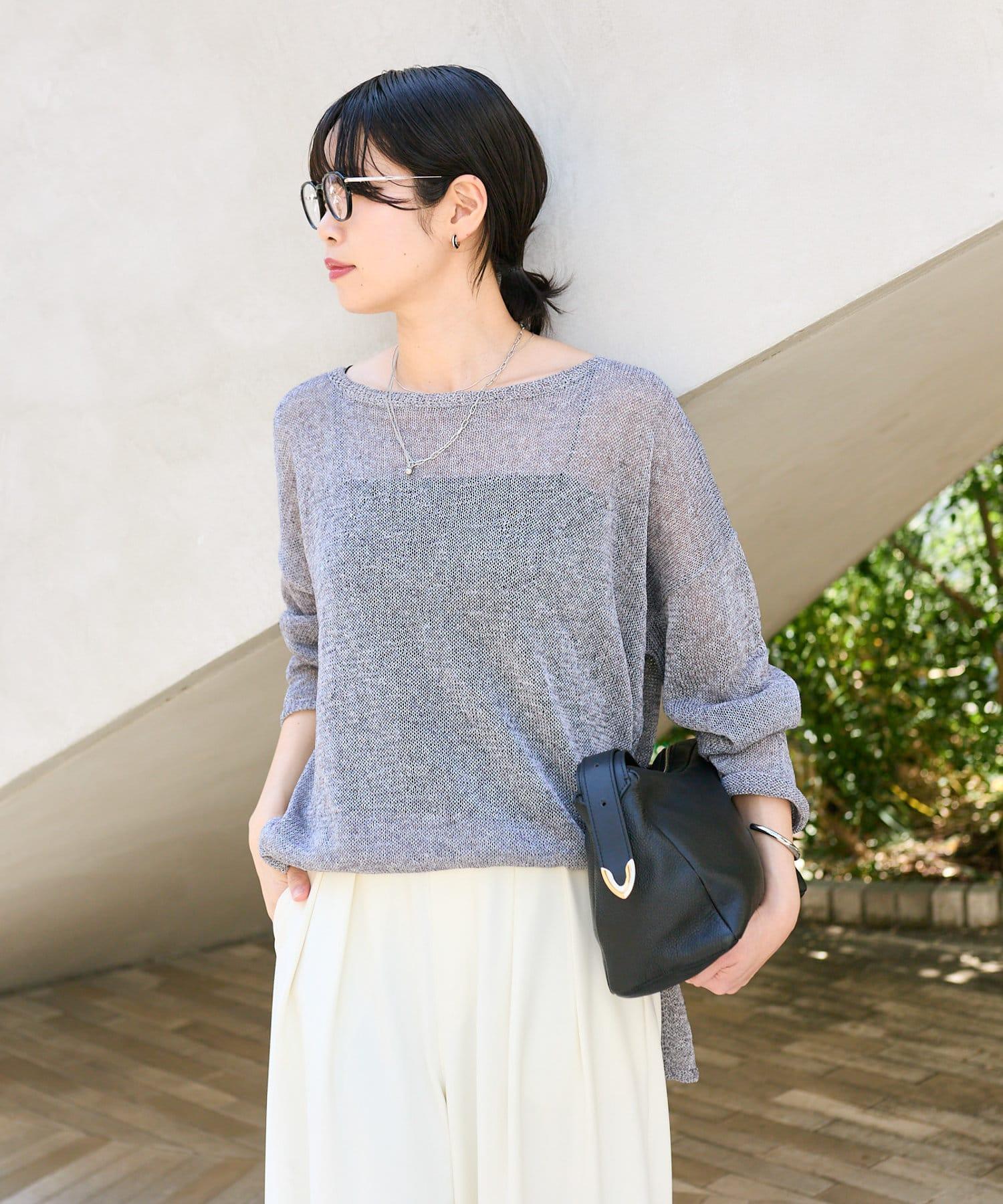 寬鬆的針織衫具有亞麻的天然質感,穿著清涼舒適。