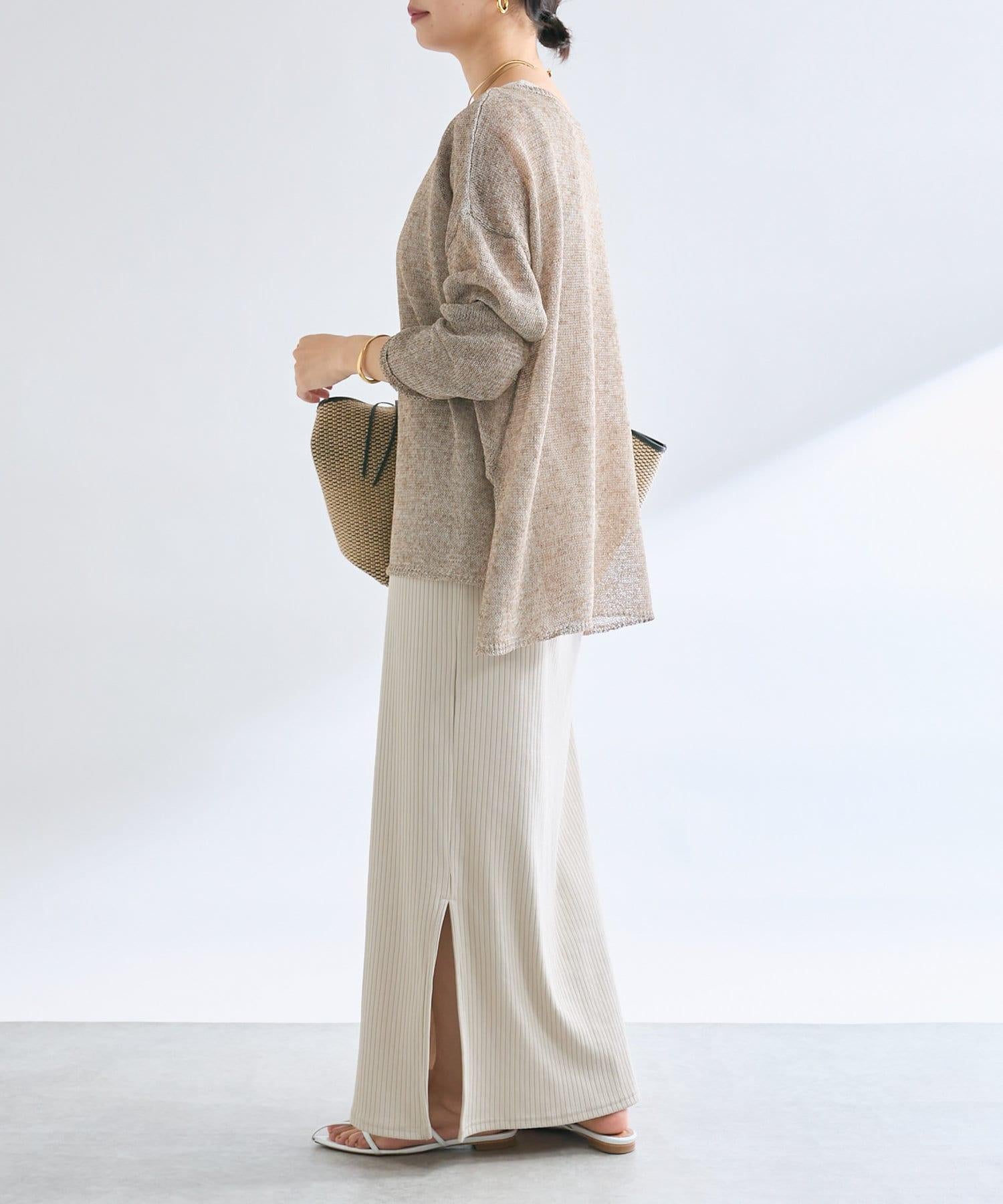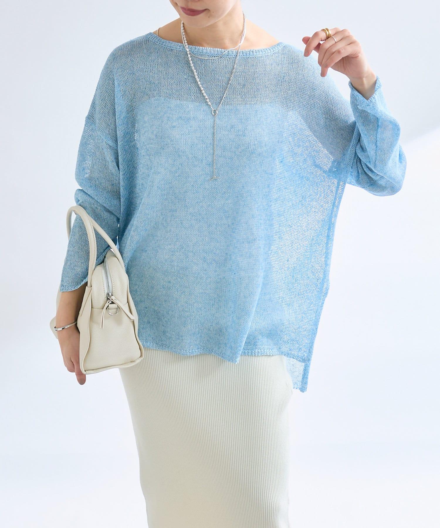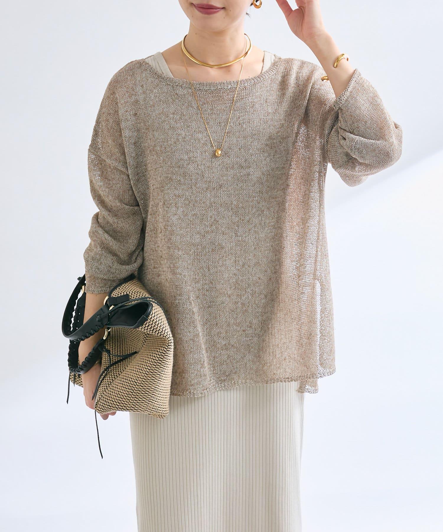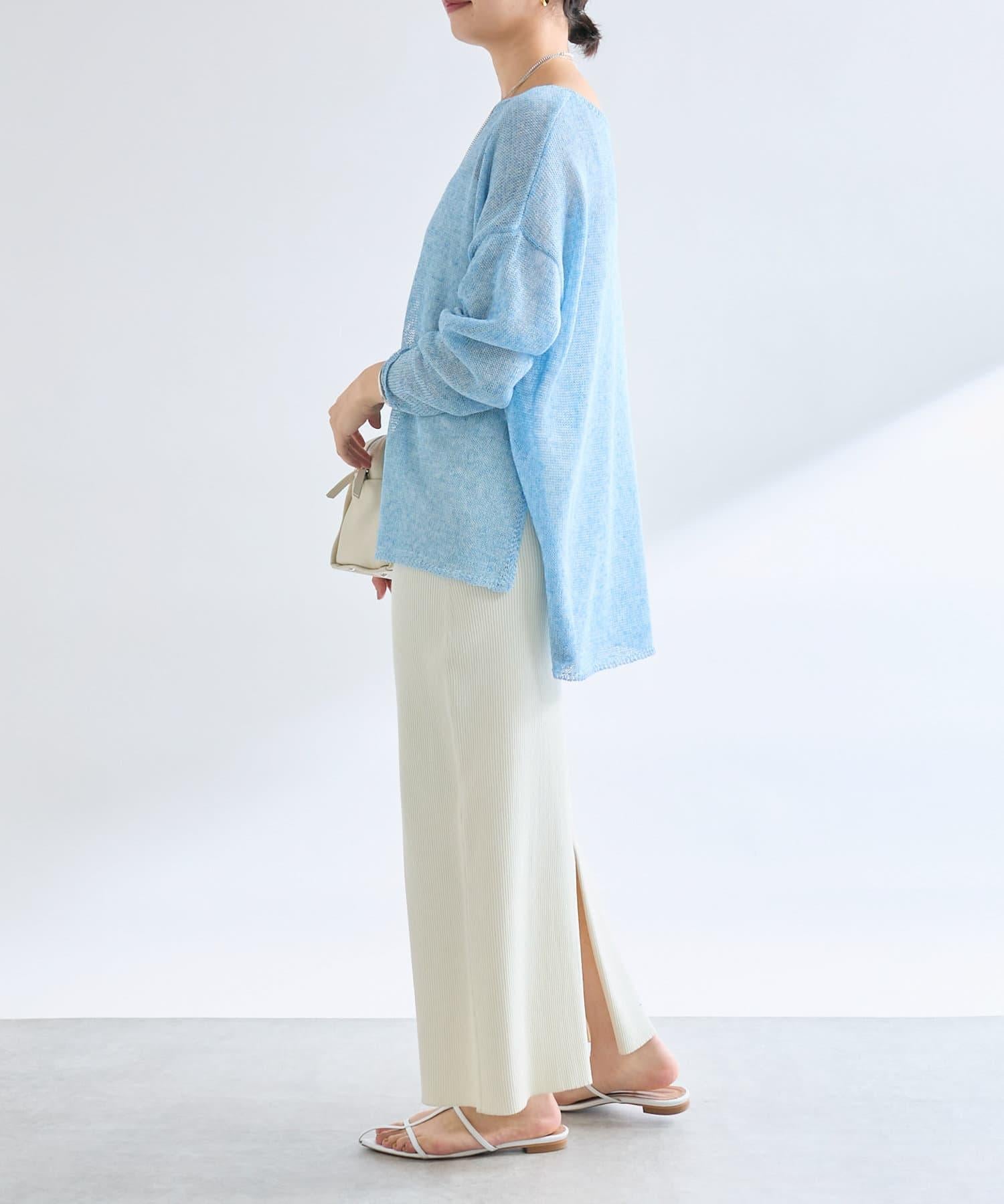 寬鬆的針織衫具有亞麻的天然質感,穿著清涼舒適。