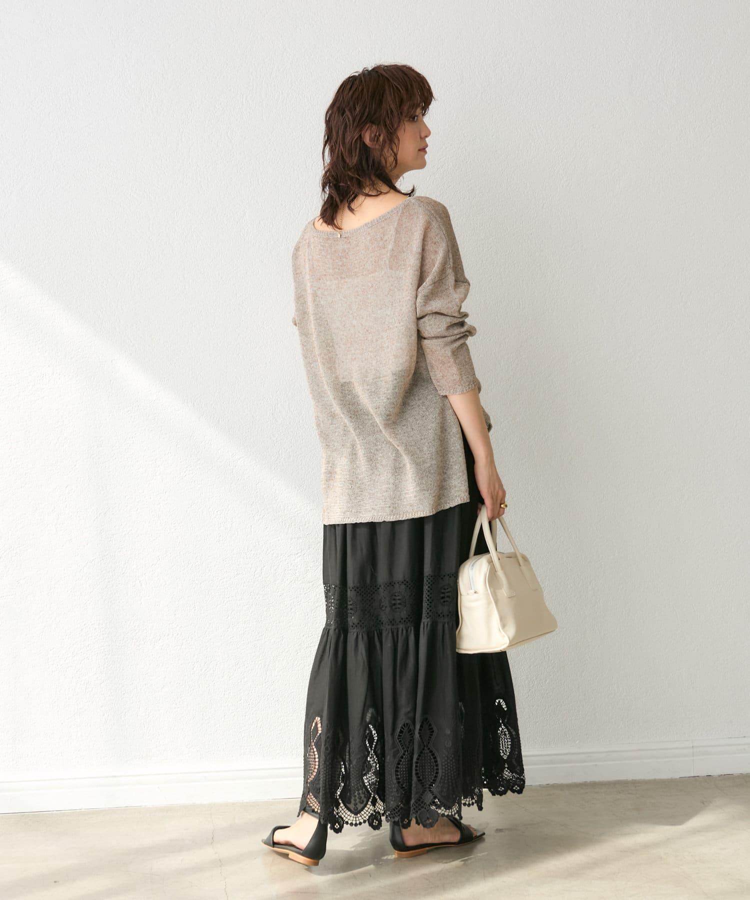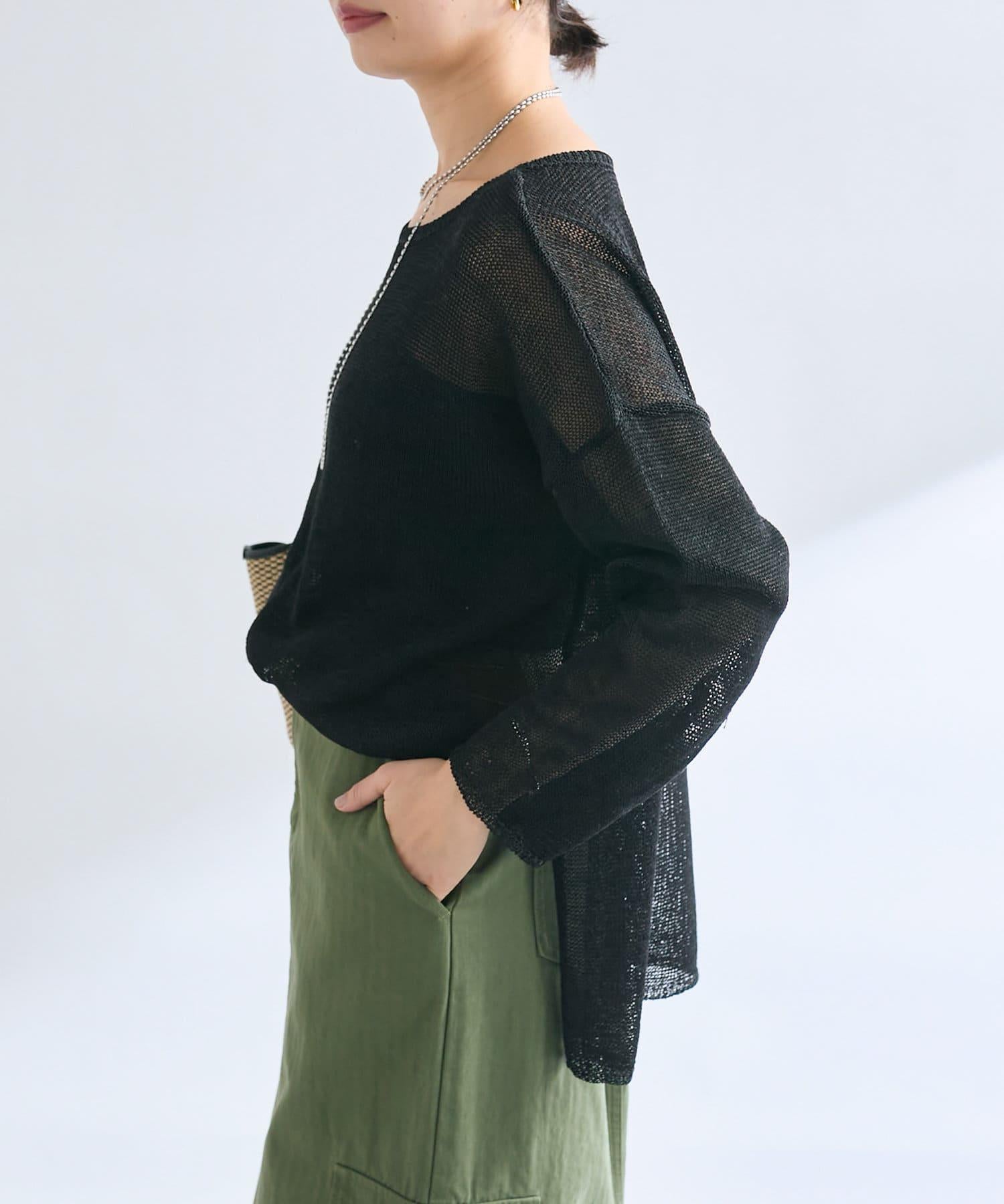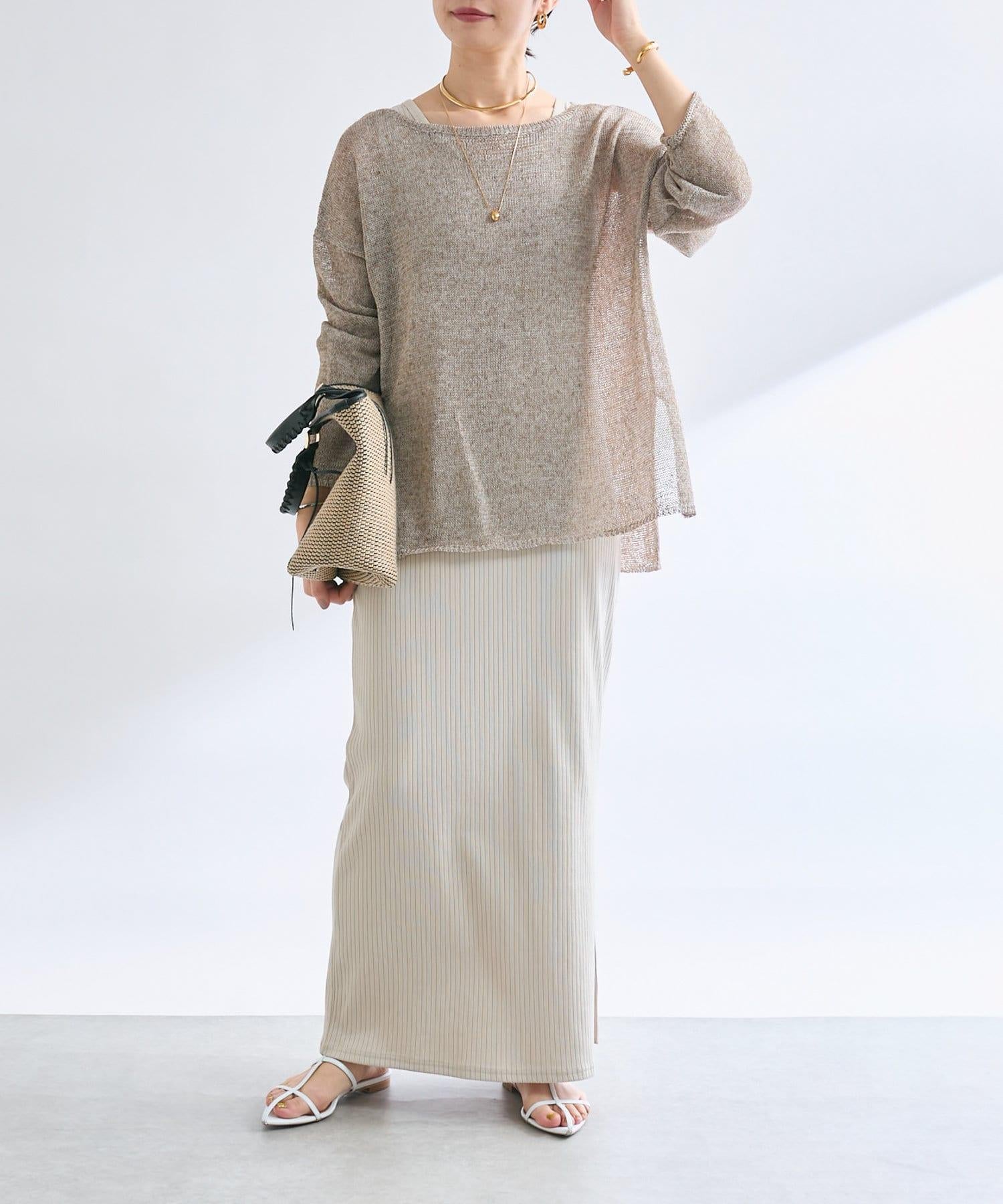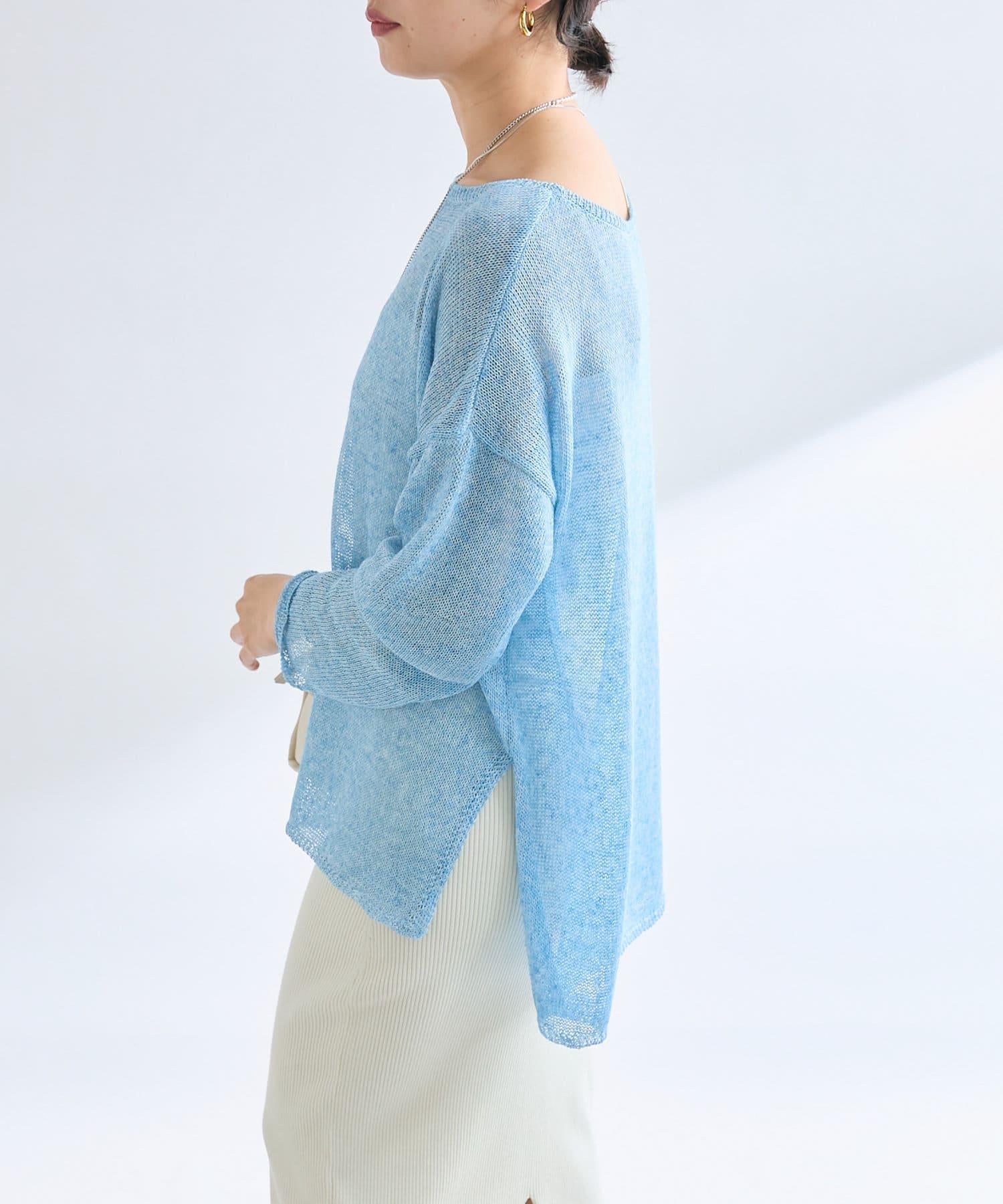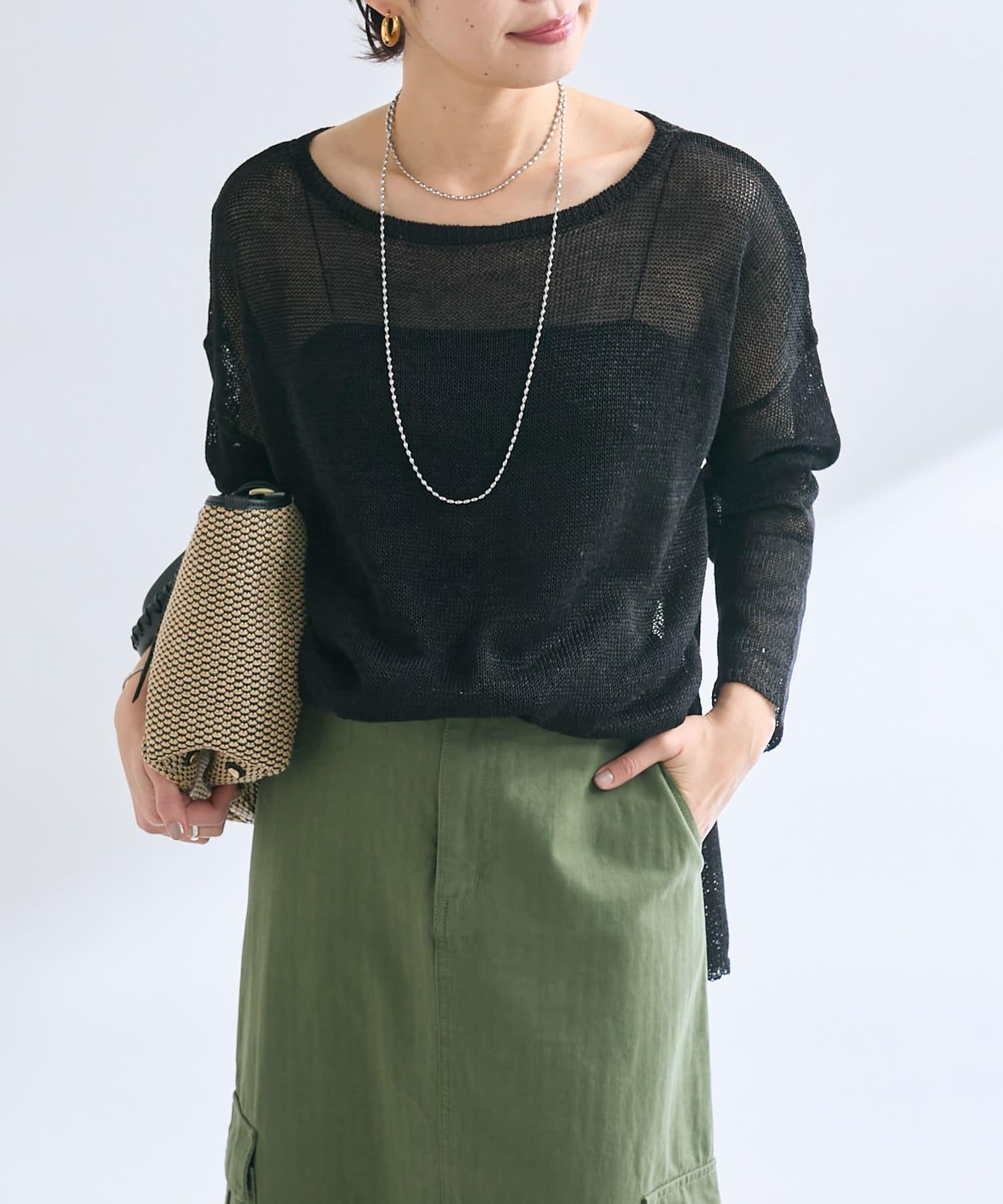 寬鬆的針織衫具有亞麻的天然質感,穿著清涼舒適。