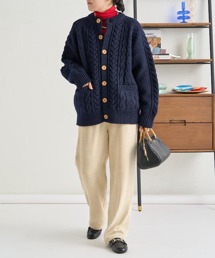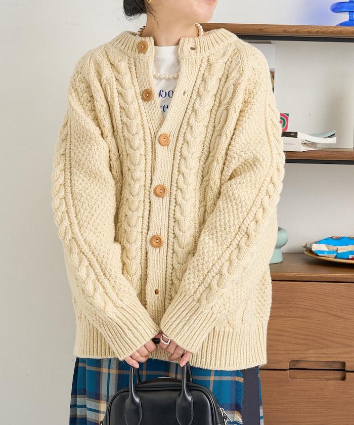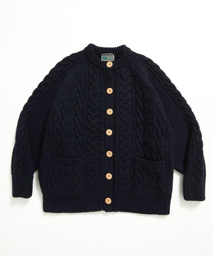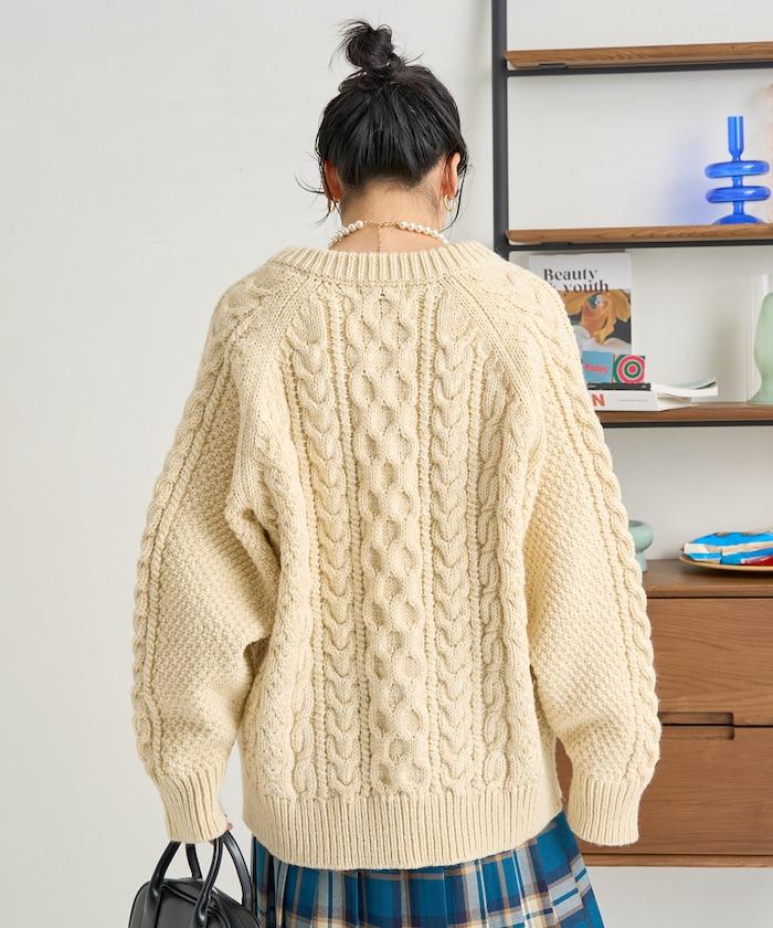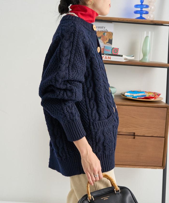 這款針織開衫再現了傳統的針織工藝,又稱阿蘭針織。
