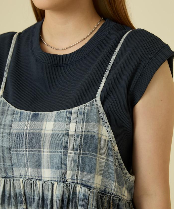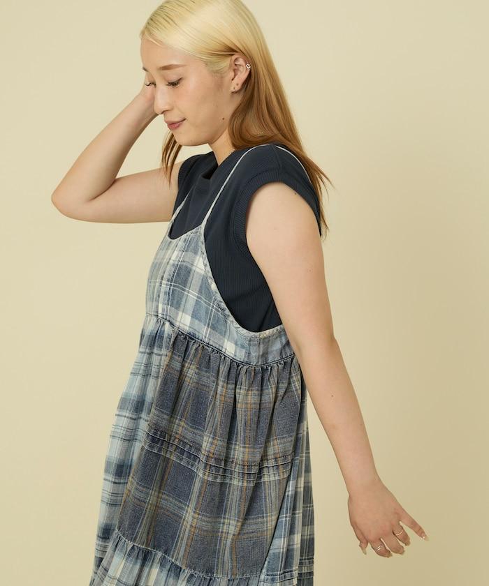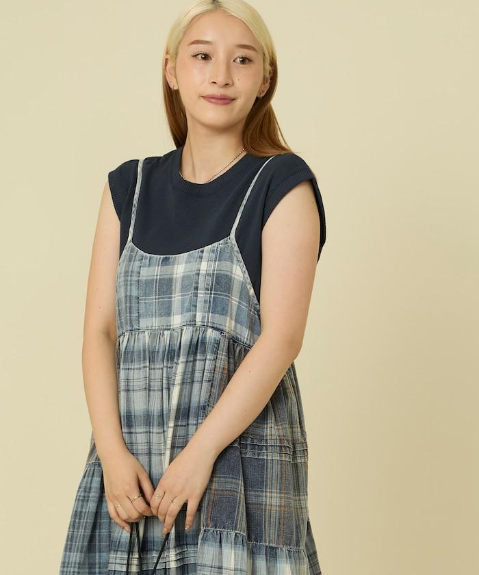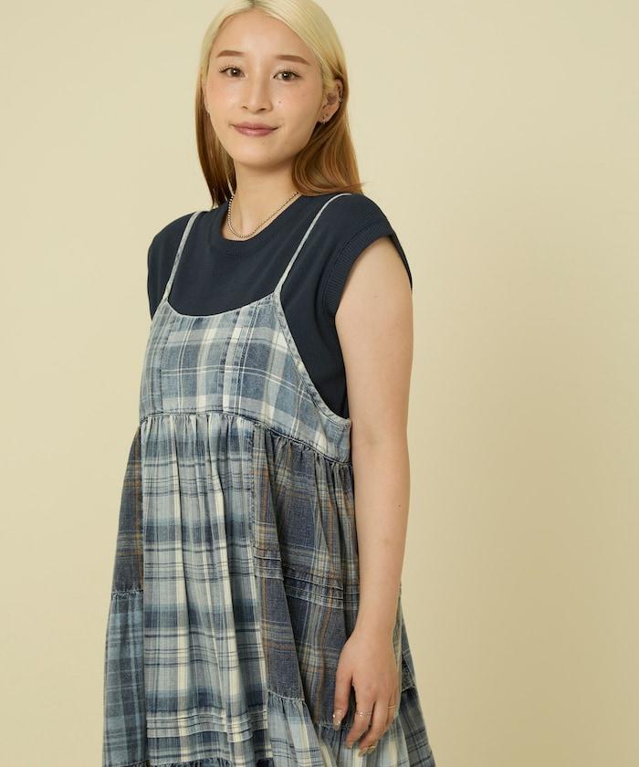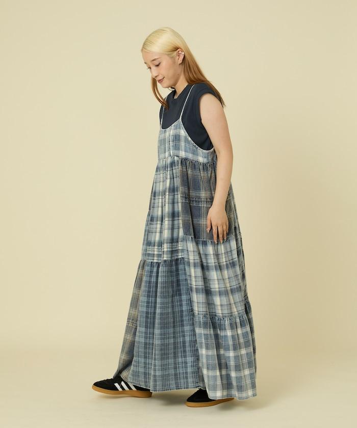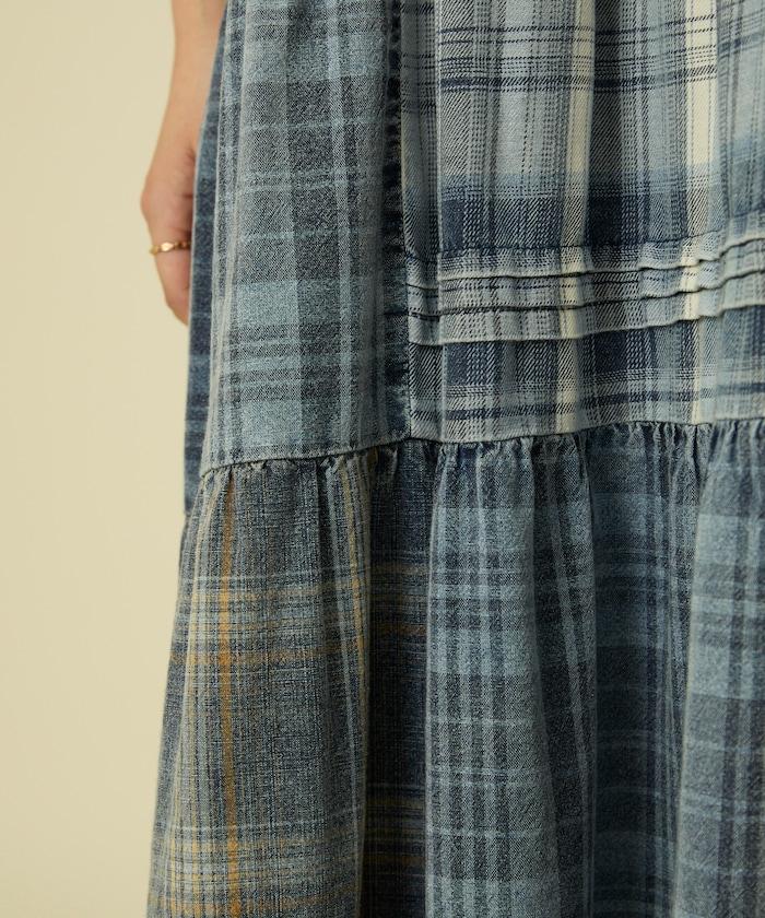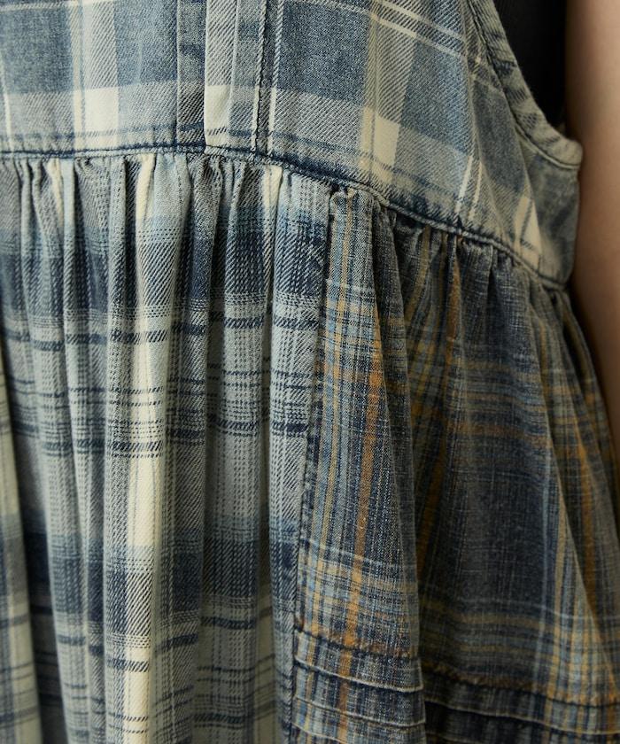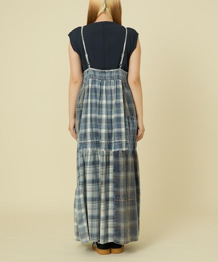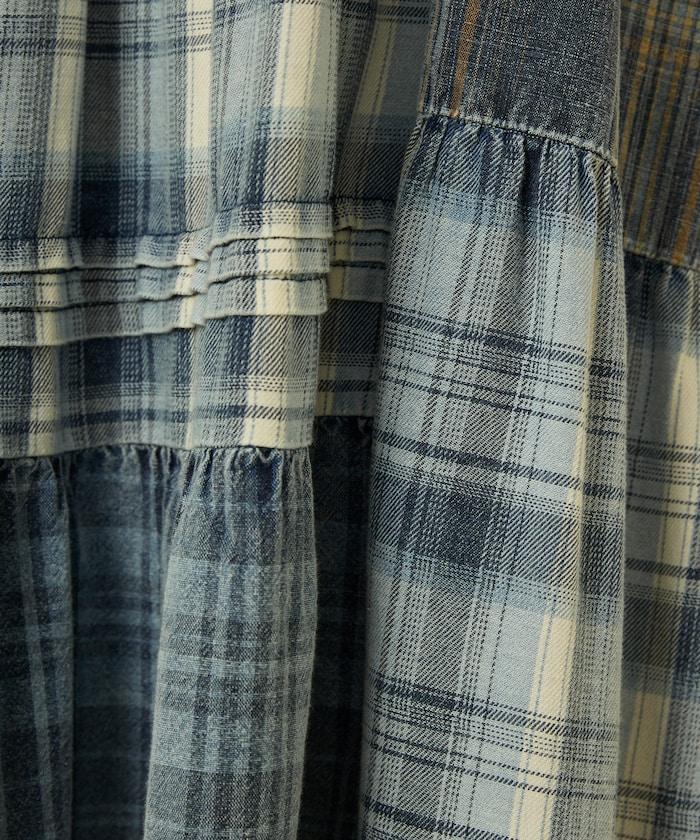 在拼接圖案中融合了不同的格紋,是一款表現力豐富的連衣裙。