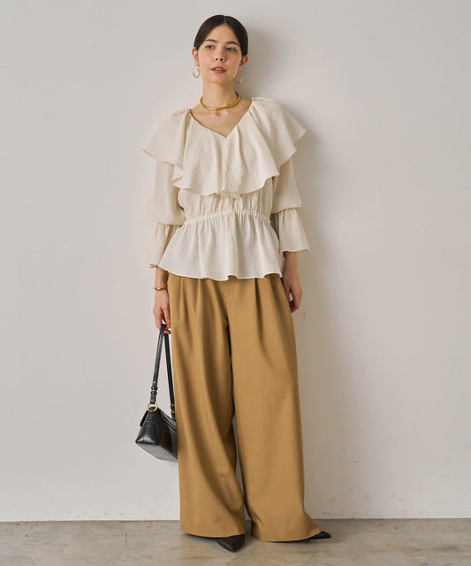 V 領設計能很好地展示肩部曲線,增添女性魅力。搭配項鍊更顯氣質。