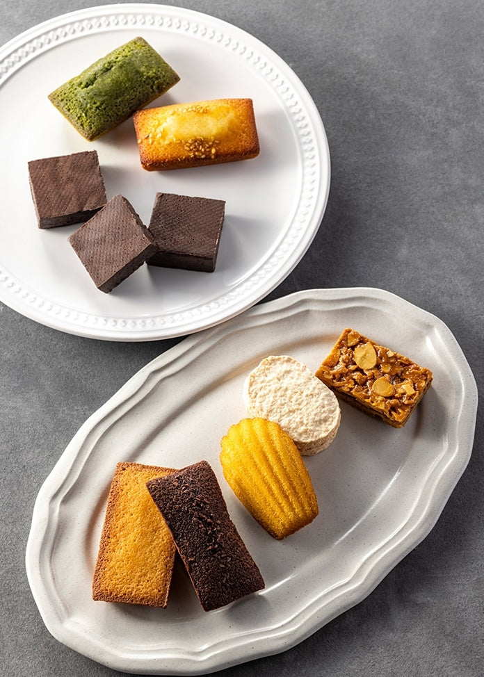 添加劑 [Madeleine Citron] 膨脹劑,調味劑, [Dacquoise] 增稠劑(加工澱粉,黃原膠),乳化劑,調味劑, [Florentine] 膠凝劑(果膠),酸化劑,調味劑,乳化劑,著色劑(紅酵母,梔子),六偏磷酸鈉,穩定劑(多糖增稠劑) 。(有些含有雞蛋,牛奶成分,小麥,大豆和杏仁。) [Financier] 膨脹劑, [Chocolat financier] 膨脹劑, [White miso friand] 膨脹劑, [Matcha friand] 膨脹劑, [Hayama chocolat caro] 乳化劑,調味劑,酸味劑,著色劑(焦糖,胡蘿蔔素),多糖增稠劑、