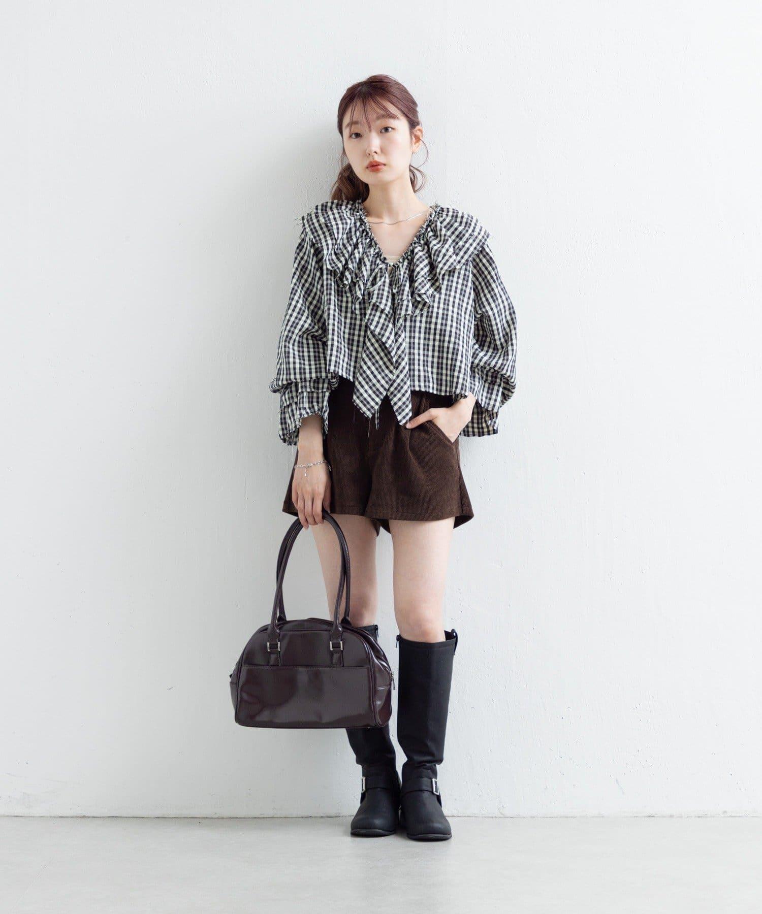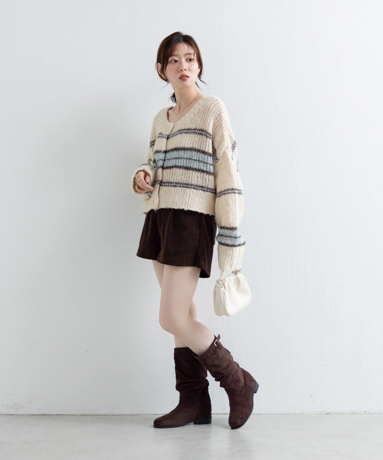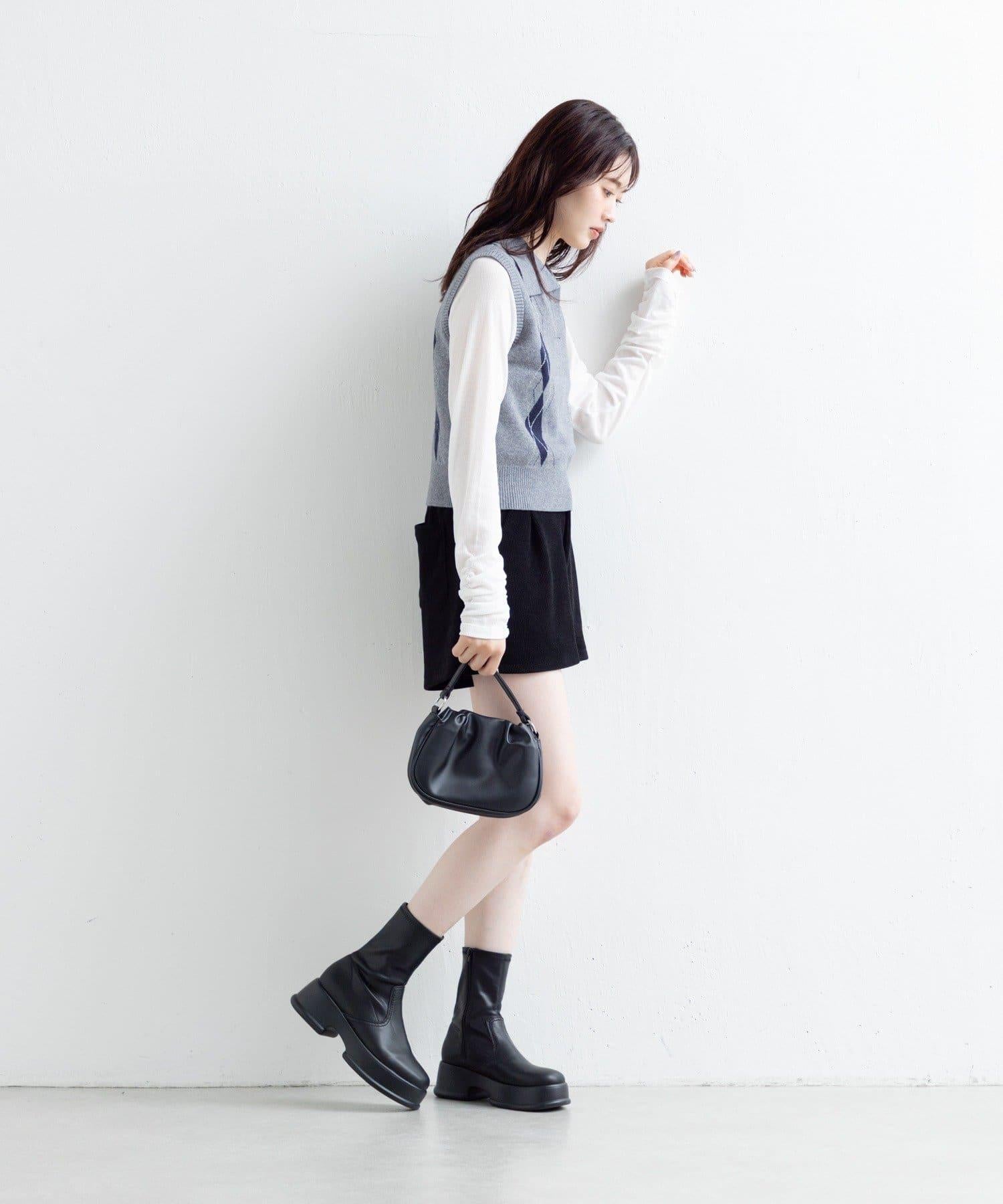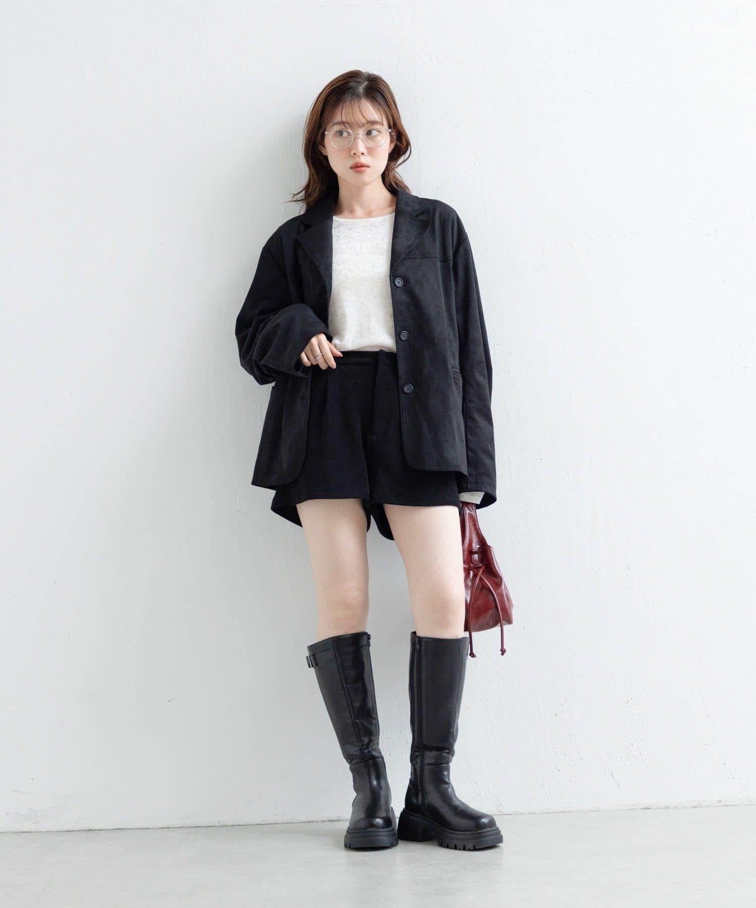 搭配長筒靴,起到拉長腿部線條的效果,盡顯季節感。
