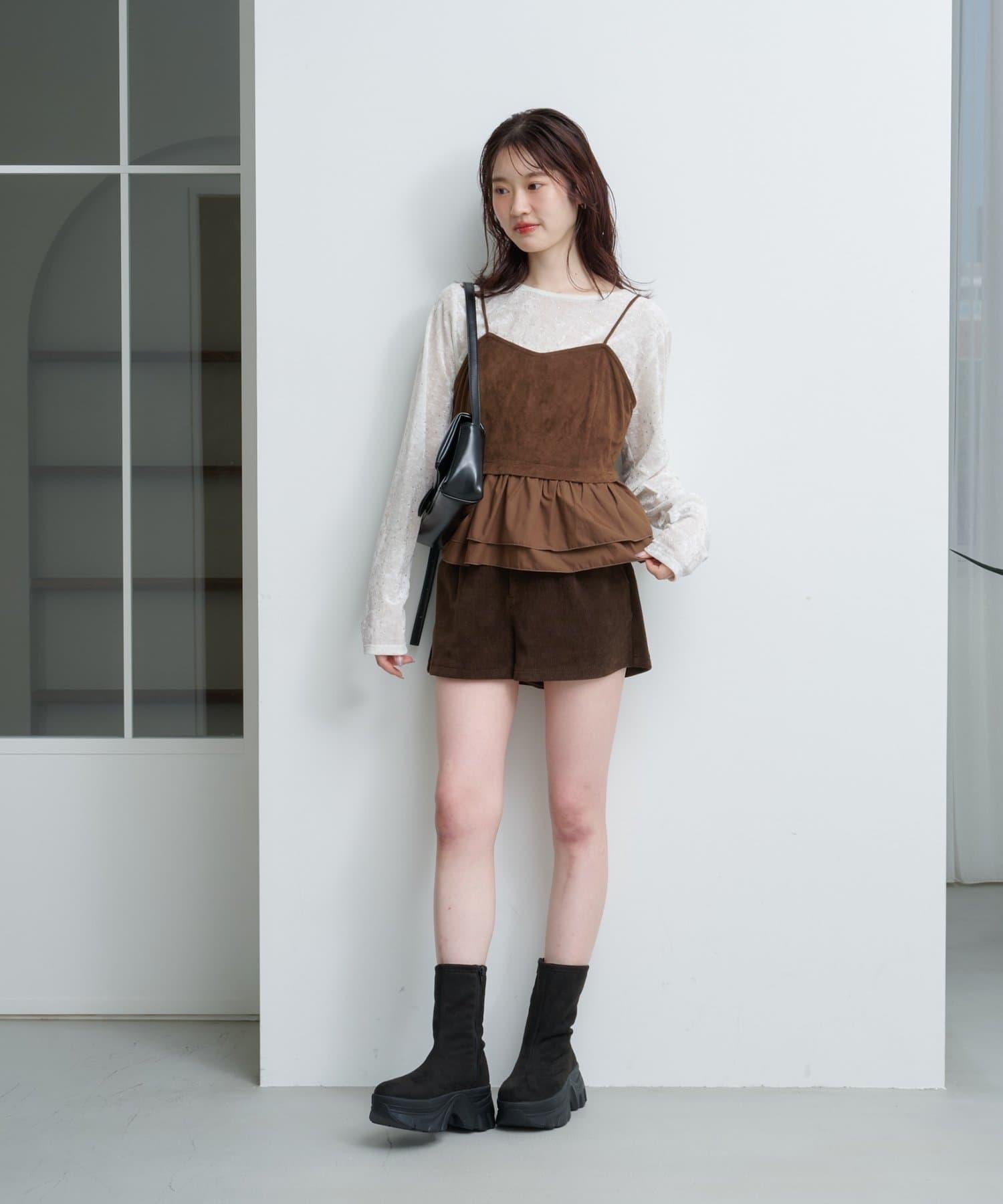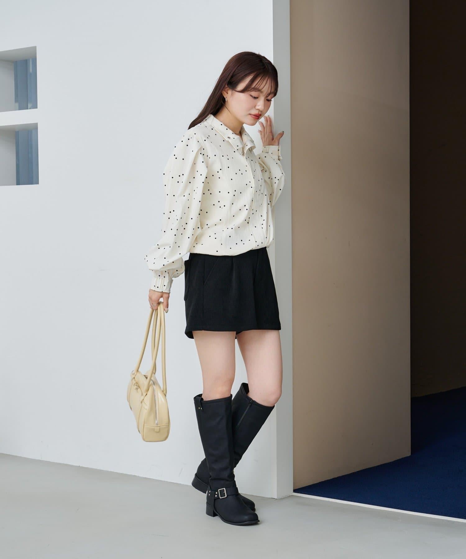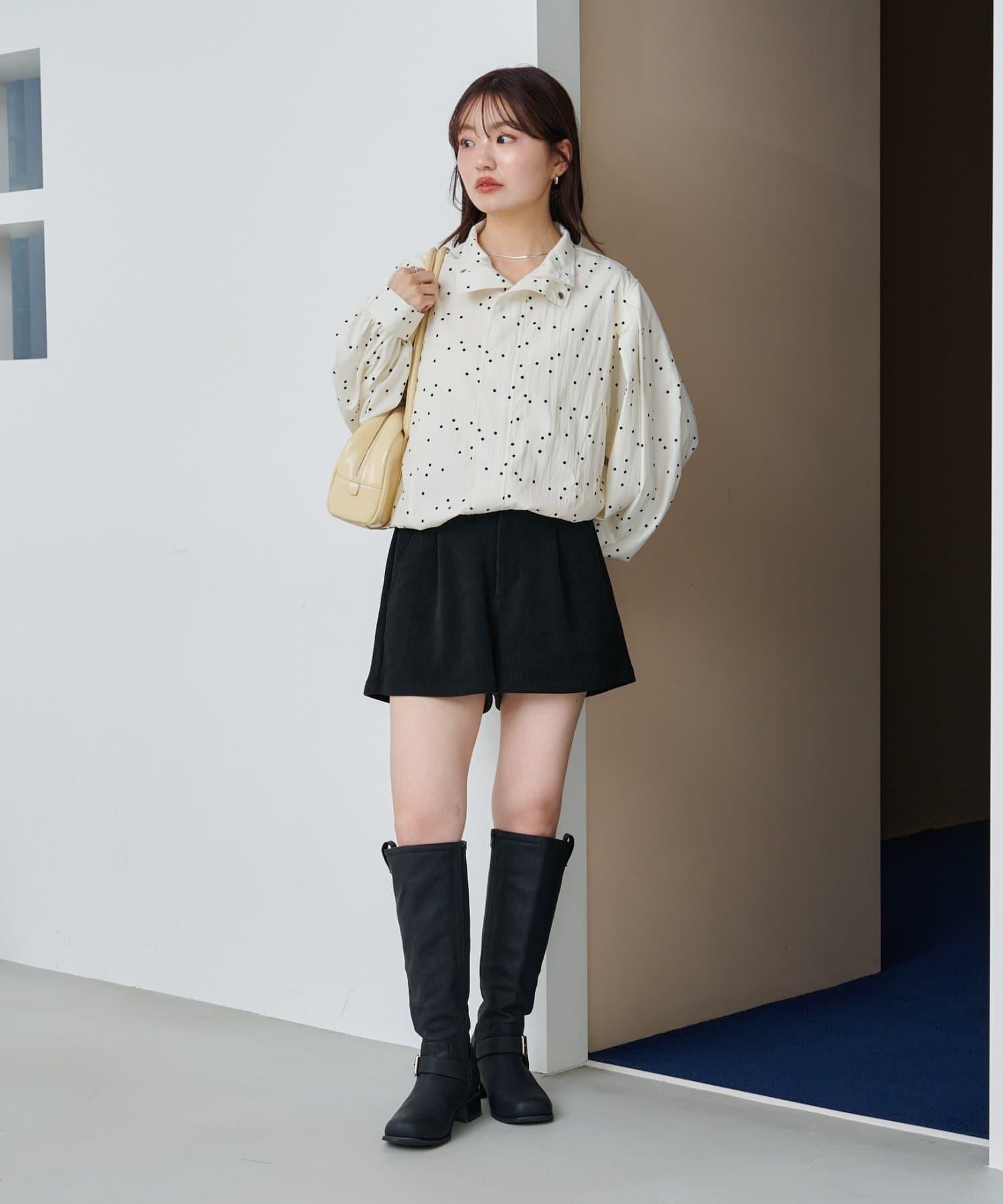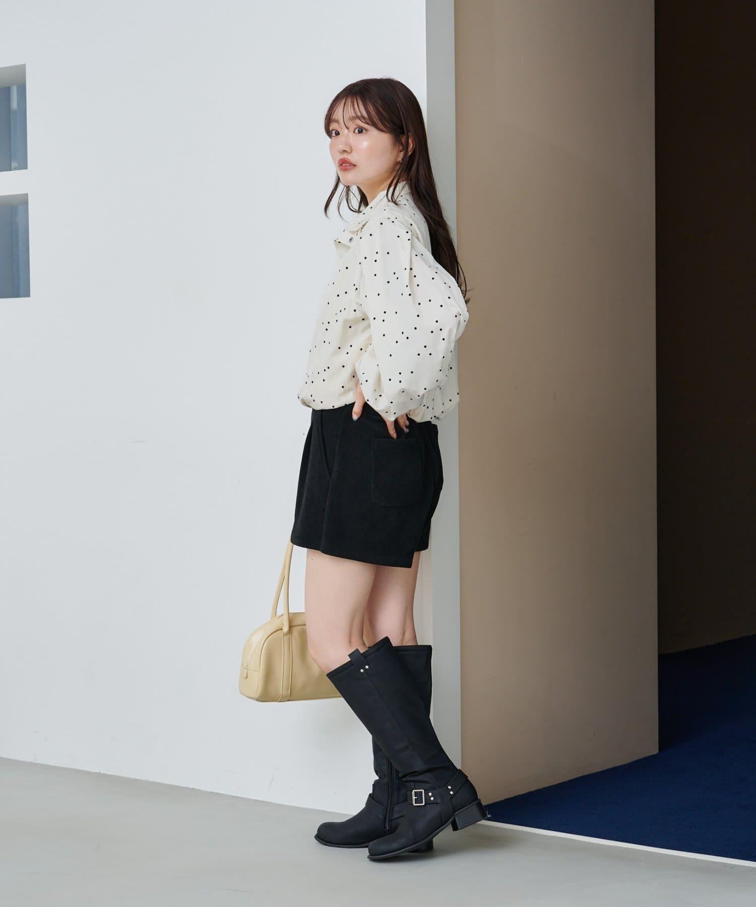 搭配長筒靴,起到拉長腿部線條的效果,盡顯季節感。