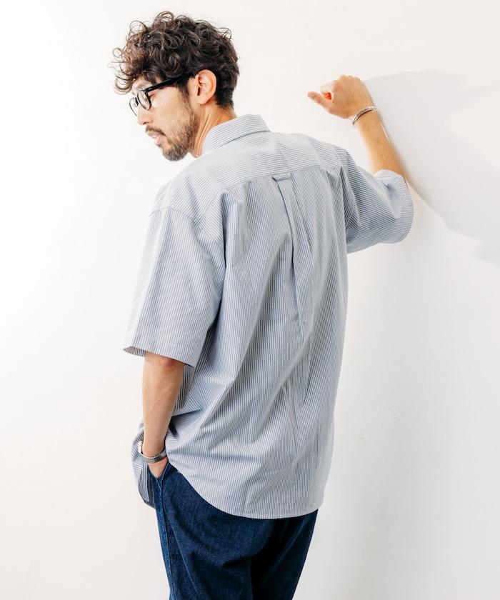 短袖紐扣襯衫,衣身寬窄適中,輪廓相當規整。