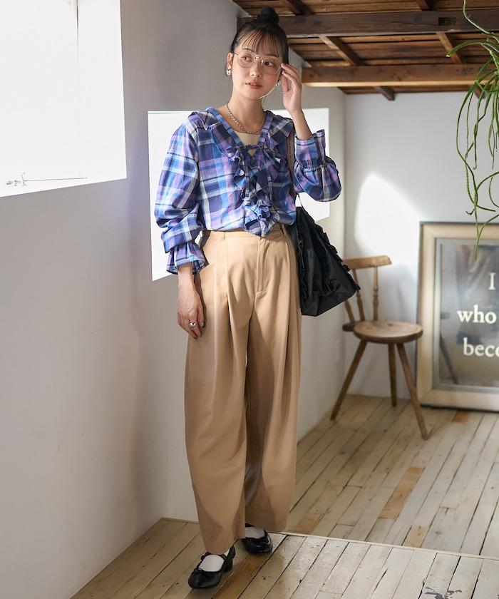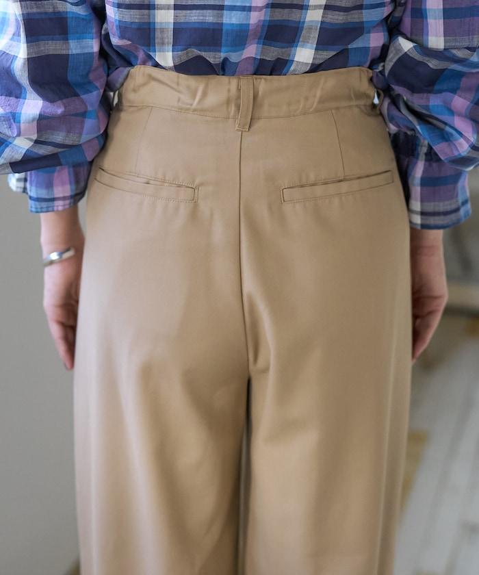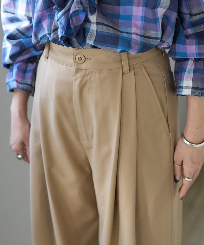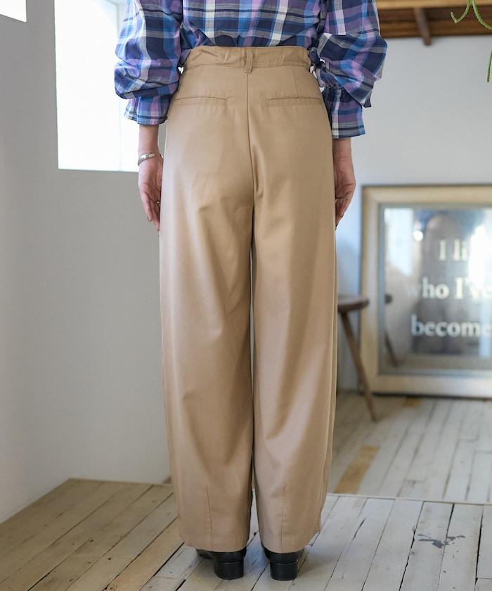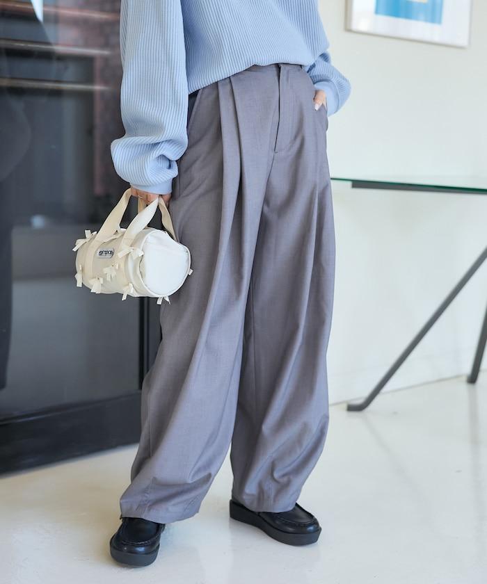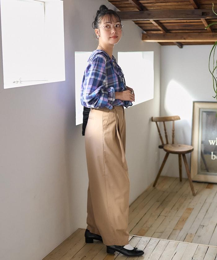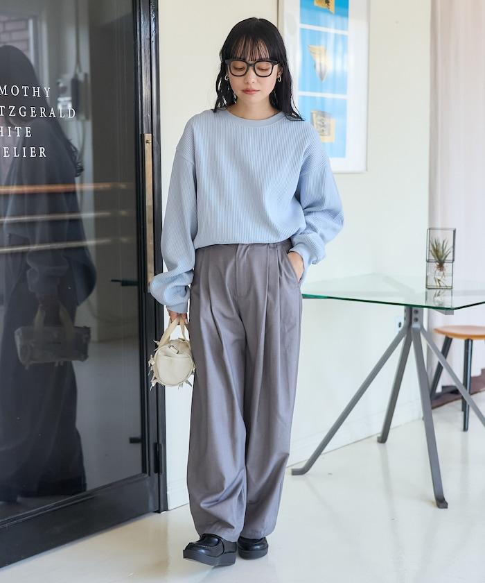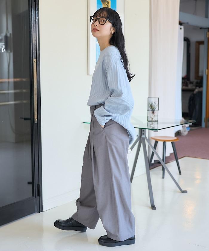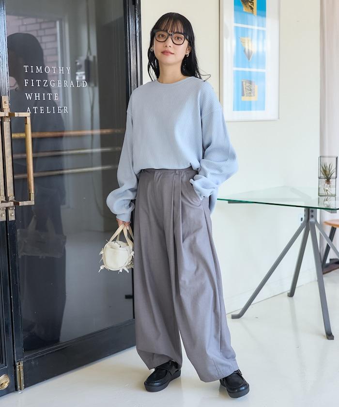 高腰設計雖然廓形寬大,但卻有拉長腿部線條的效果,因此可以將其造型起來。