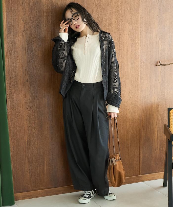 長褲寬鬆,因此只要注意上衣的長度,既可以搭配小巧的上衣,也可以搭配過於修身的上衣和外衣。