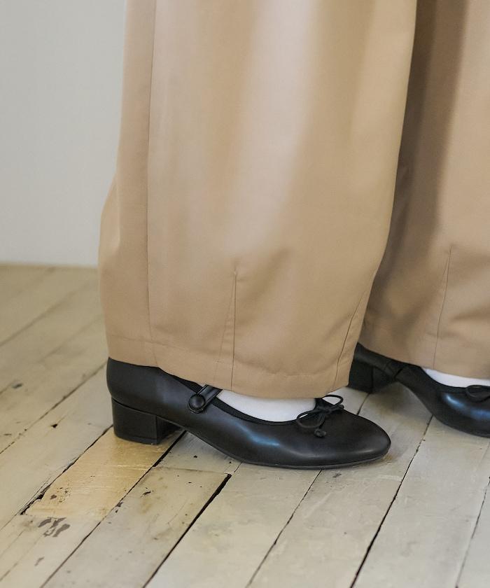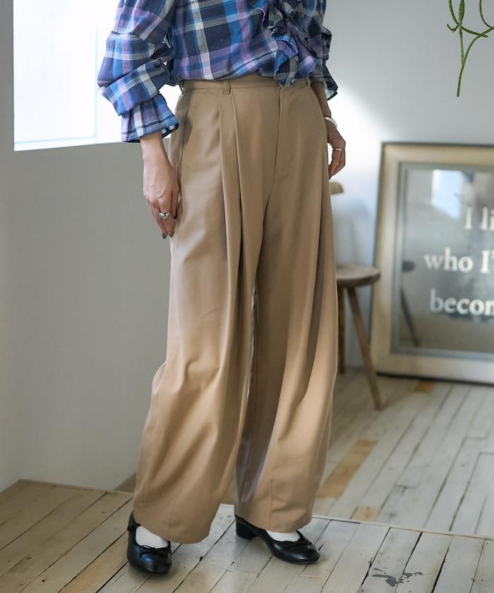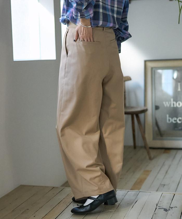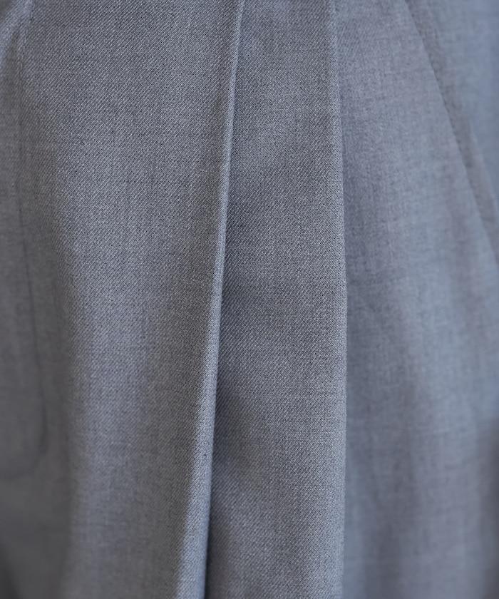 腰部的兩個收褶和下襬處的褶襉使大腿至膝蓋處的體積感更加豐滿,寬大圓潤的輪廓呈現出立體感。
