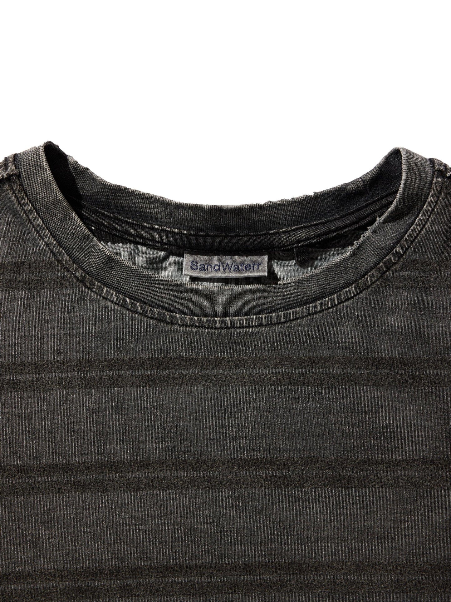由棉纖維和合成纖維混合製成。破損處理。立體圖案,寬鬆剪裁。
