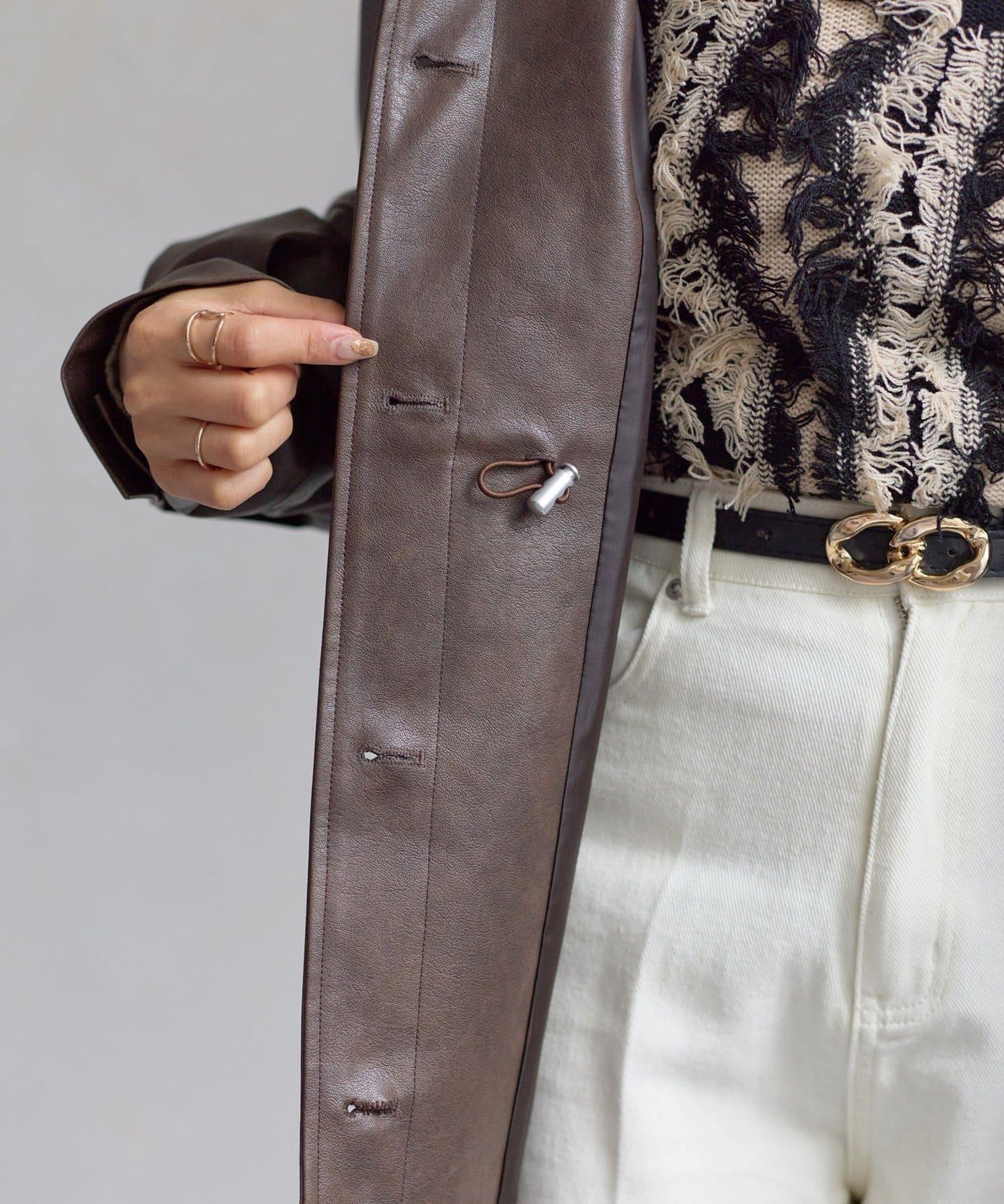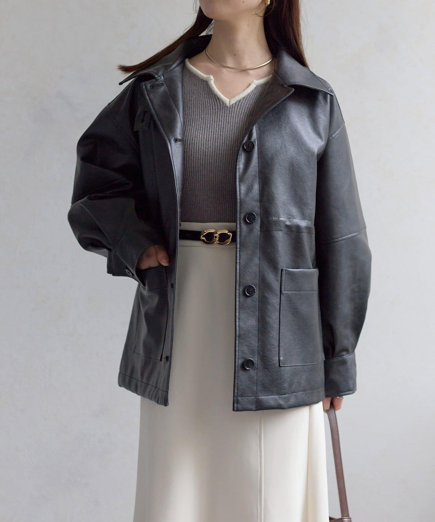 立領和合成革材質提升了一貫的協調性。